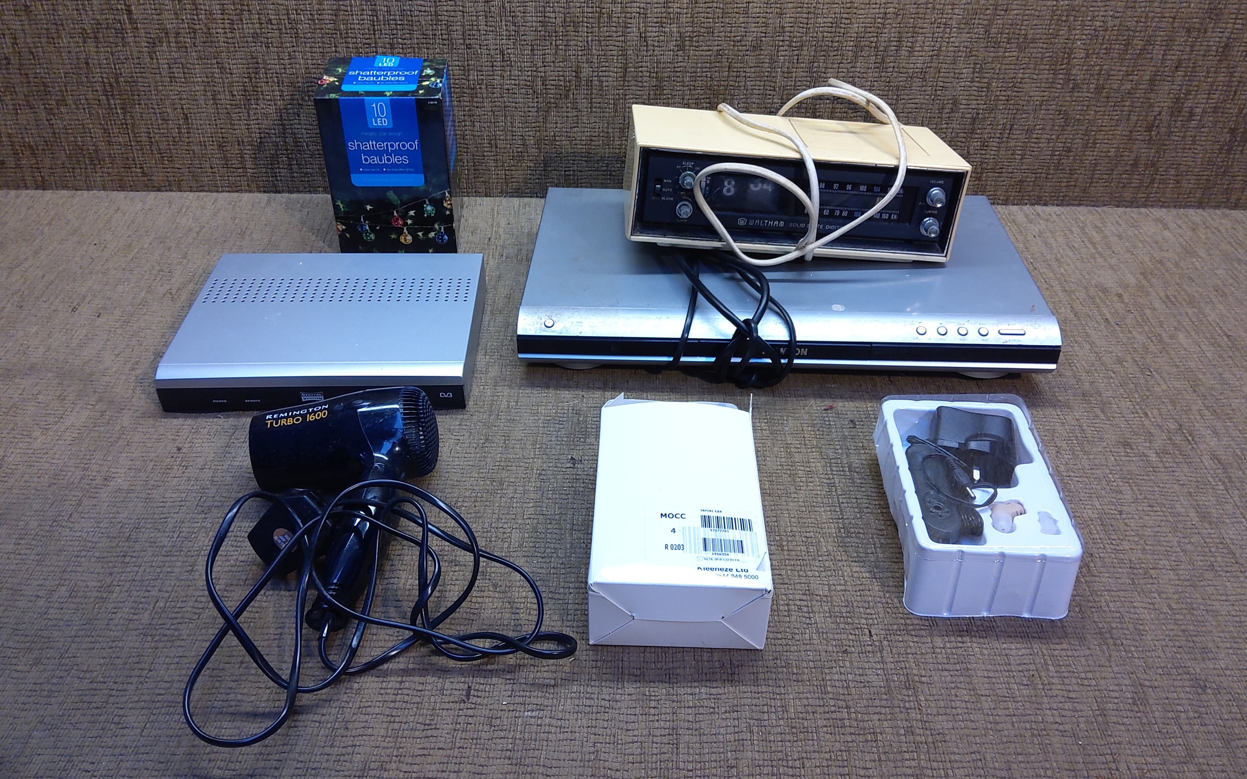 Electrical items including vintage Waltham alarm clock and radio