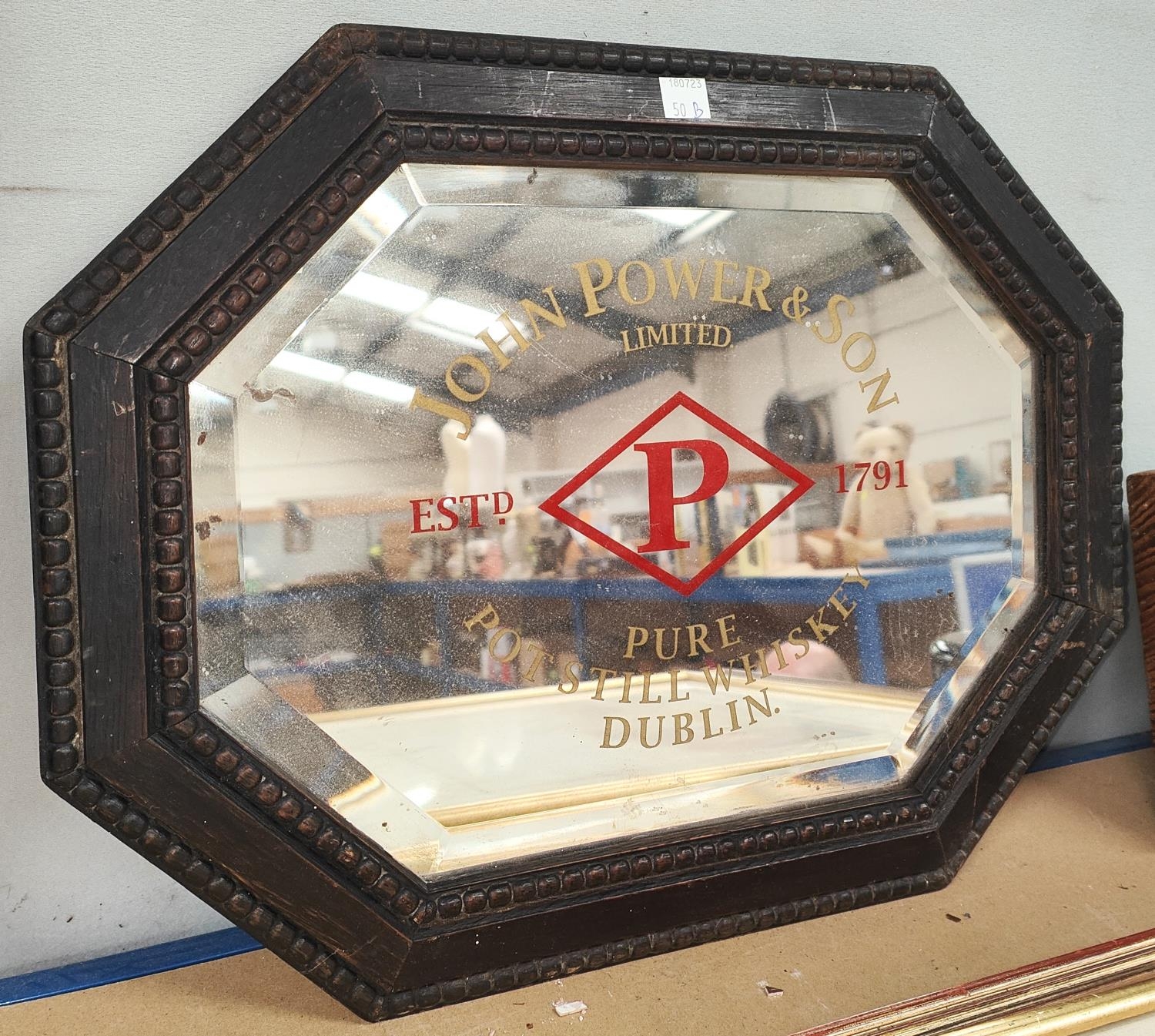 A John Power and sons oak framed advertising mirror