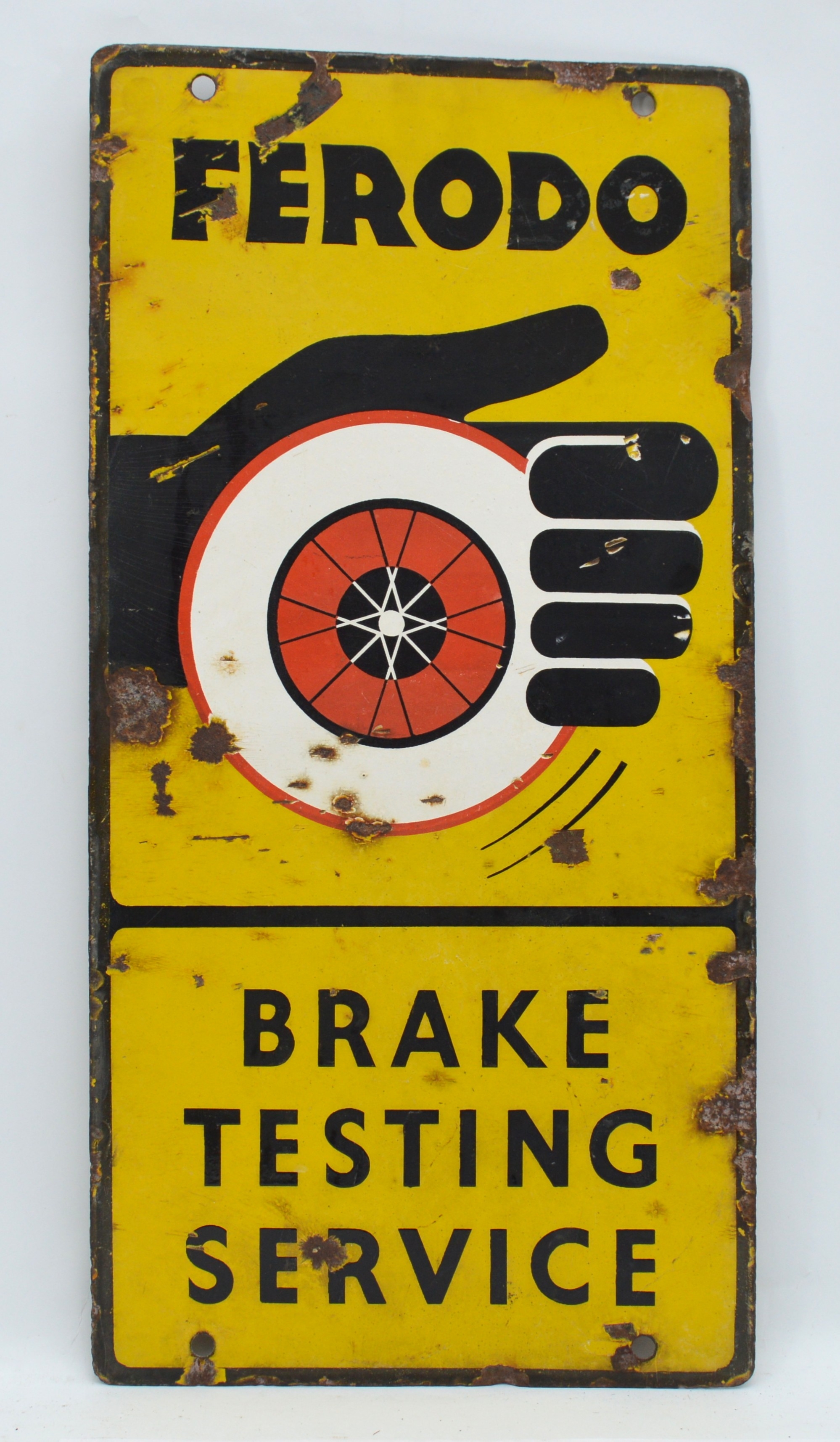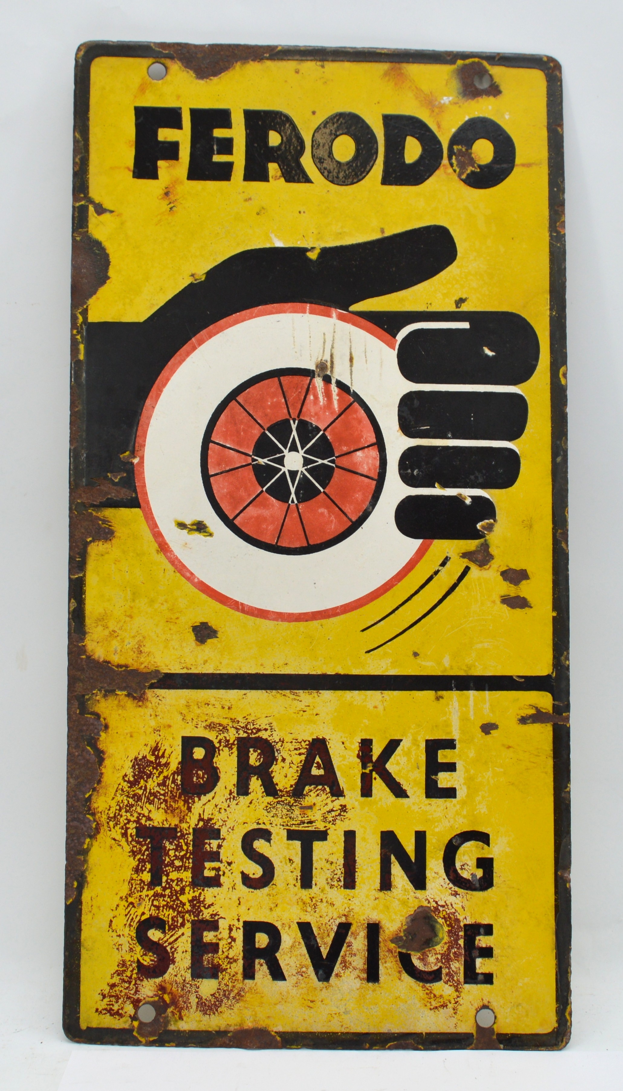 Ferodo Brake Testing Service, a double sided vitreous enamel advertising sign, 61 x 30cm.