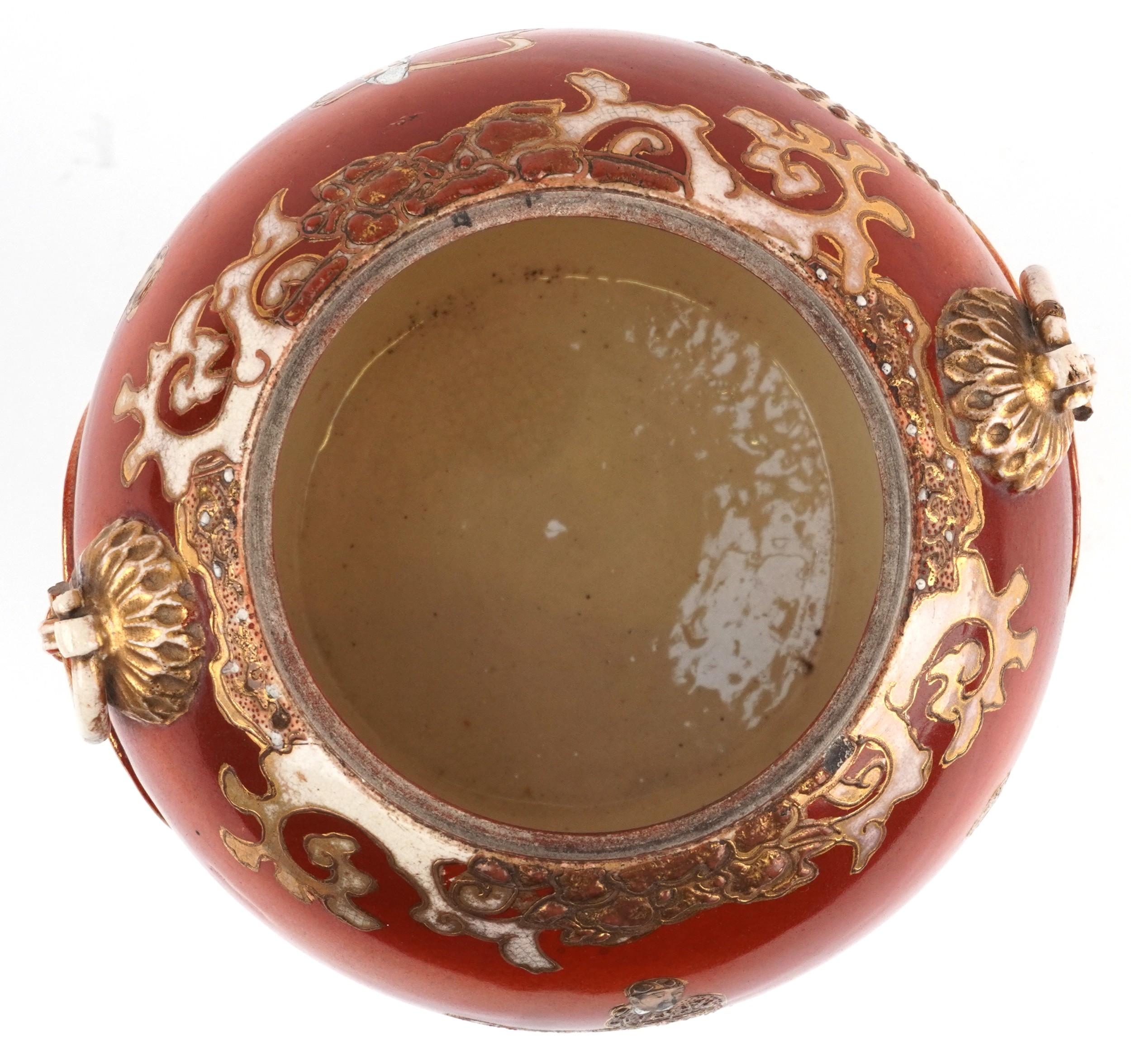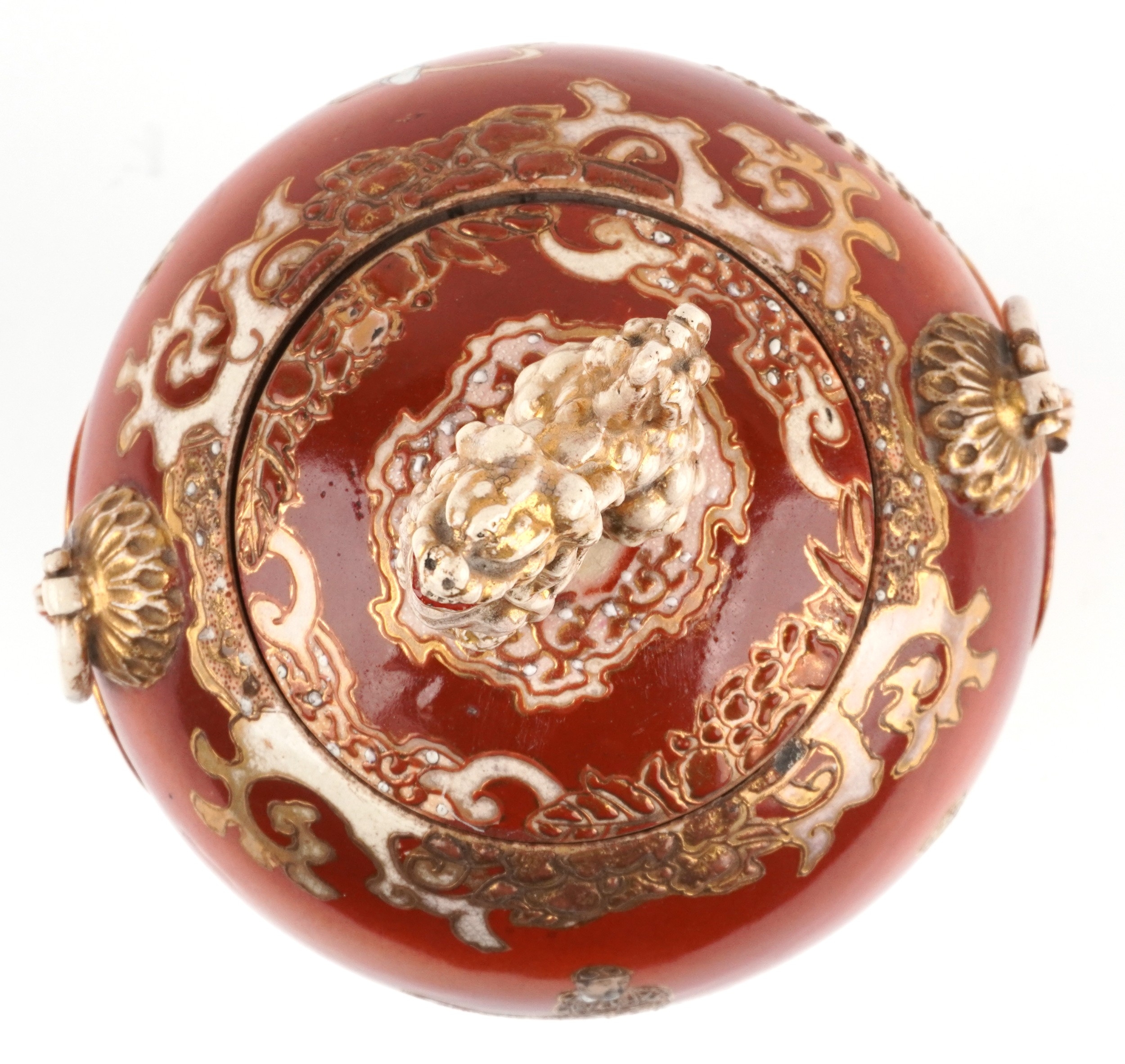 A Japanese Satsuma tripod censer and cover having a dog of F...
