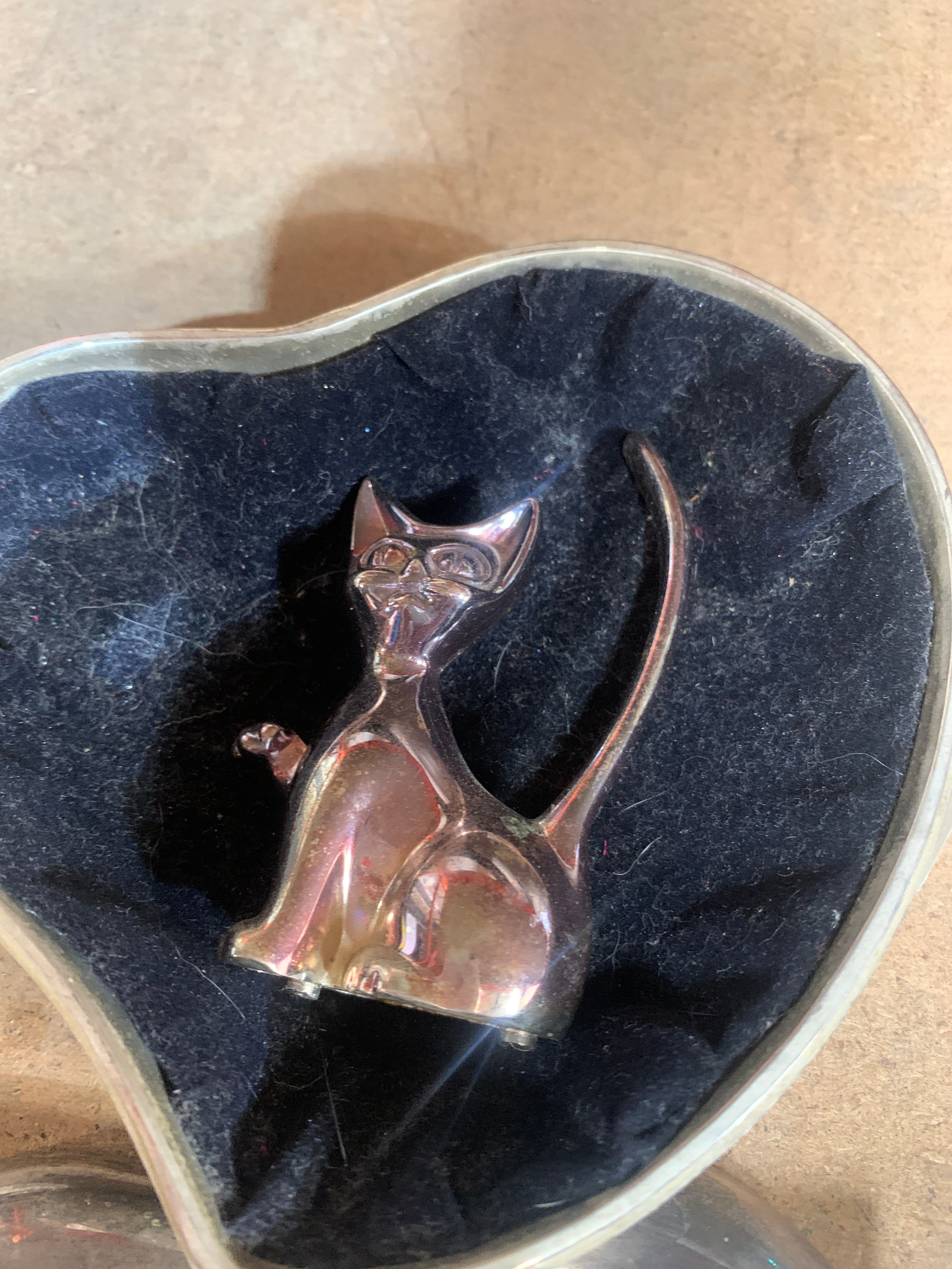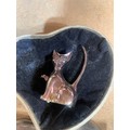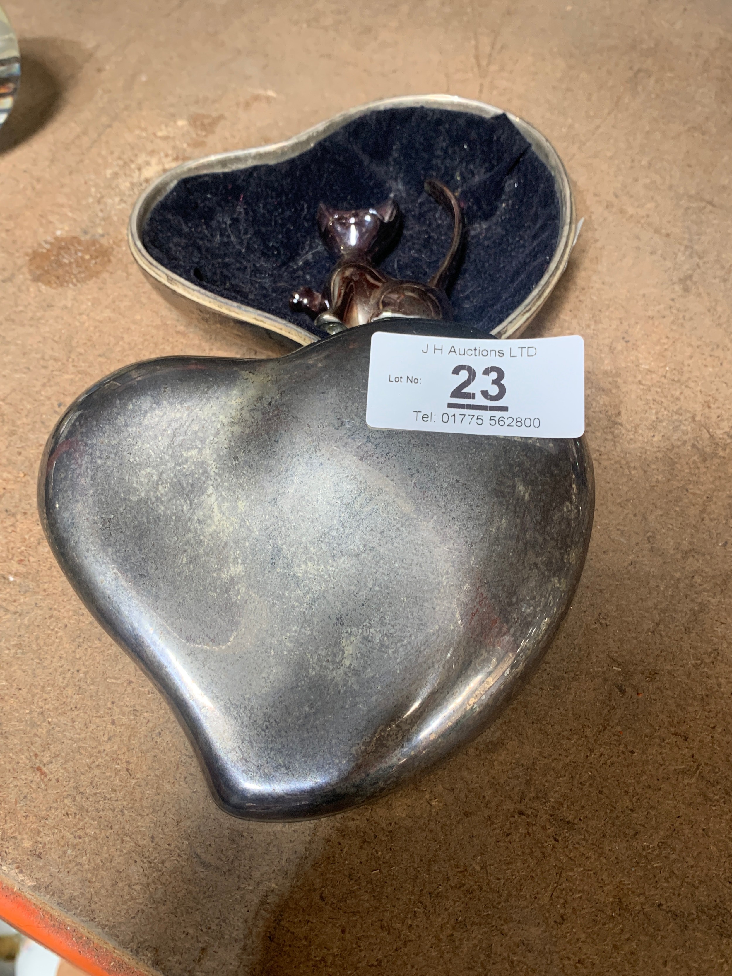 White metal heart trinket box & a cat ring holder