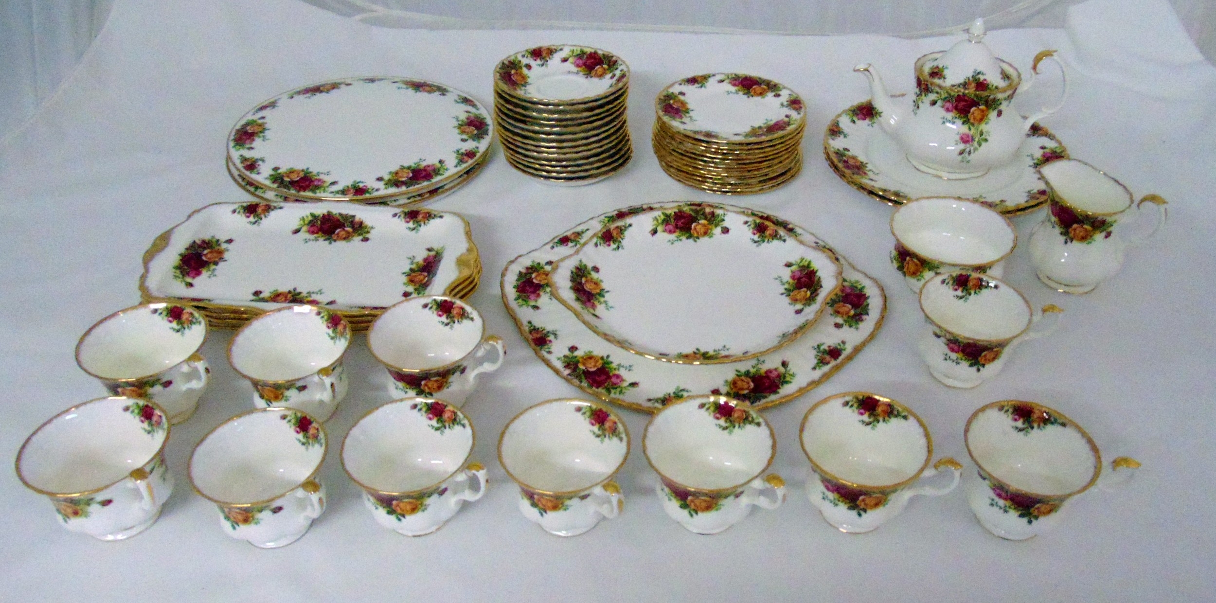 Royal Albert Old Country Roses teaset for twelve place settings to include a teapot, milk jug, sugar bowl, cups, saucers and biscuit plates (50)