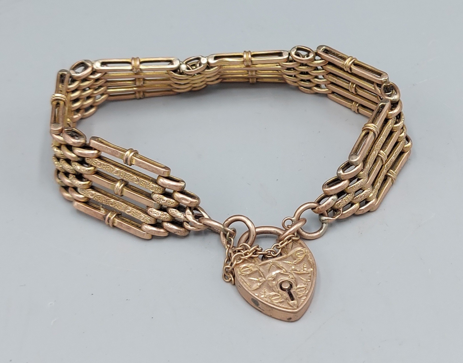 A 9ct gold gate link bracelet with padlock clasp, 19.1gms