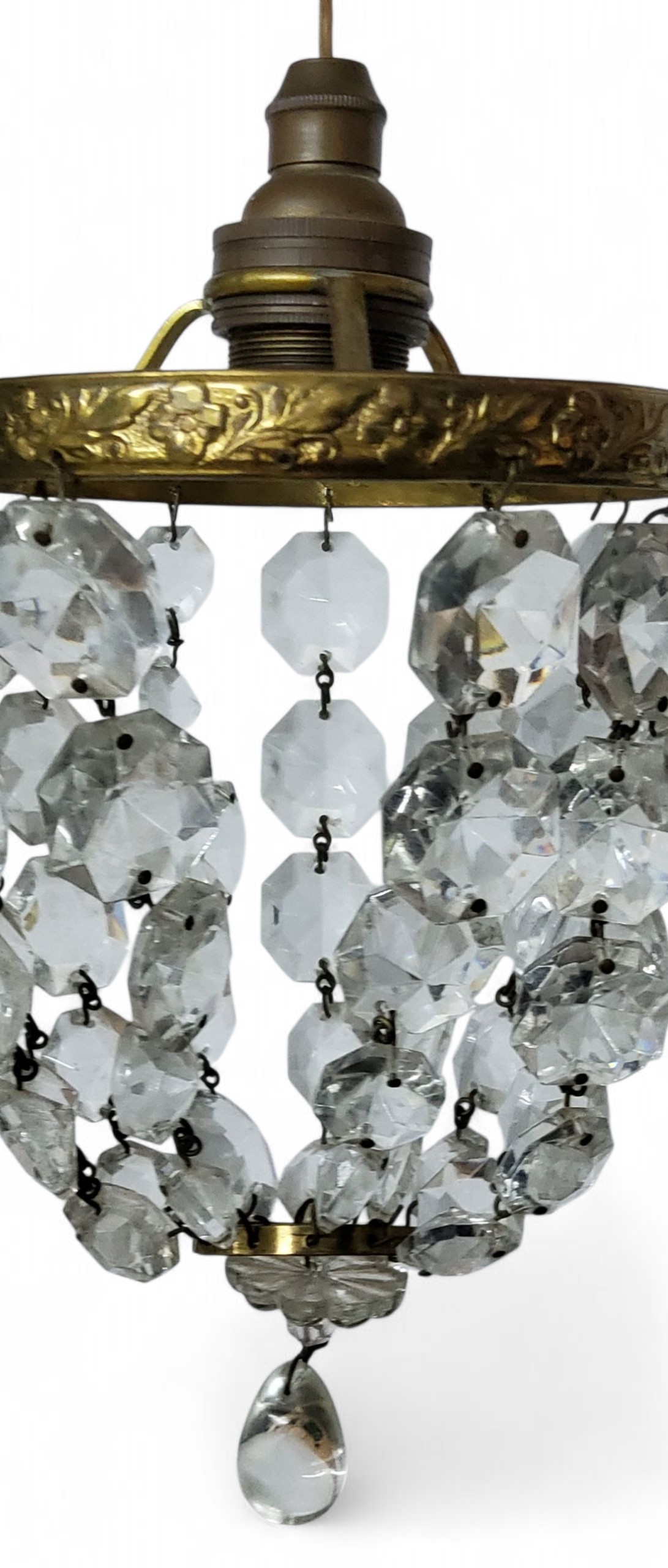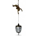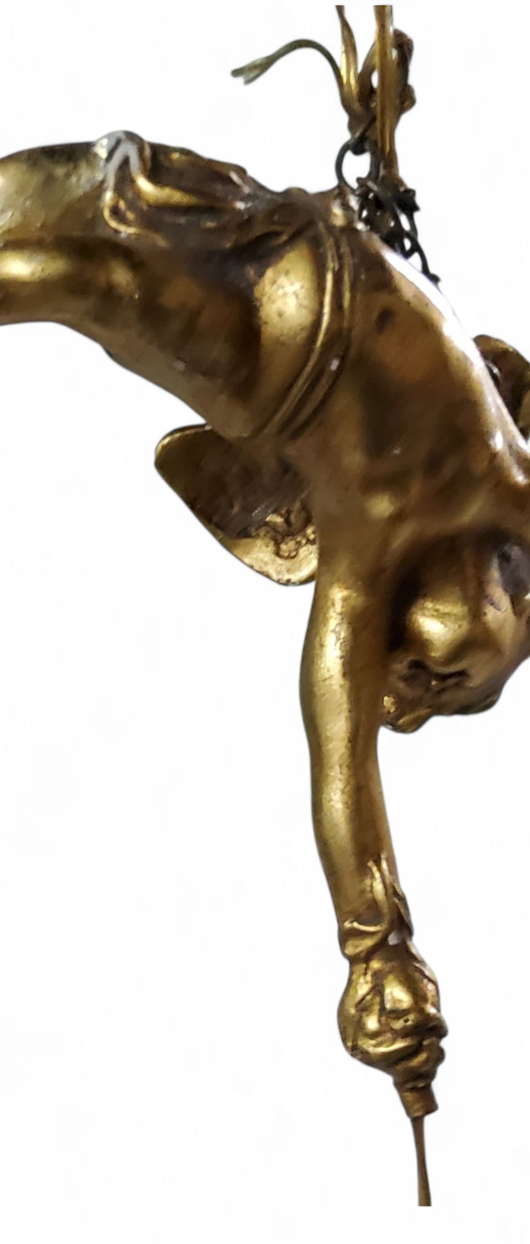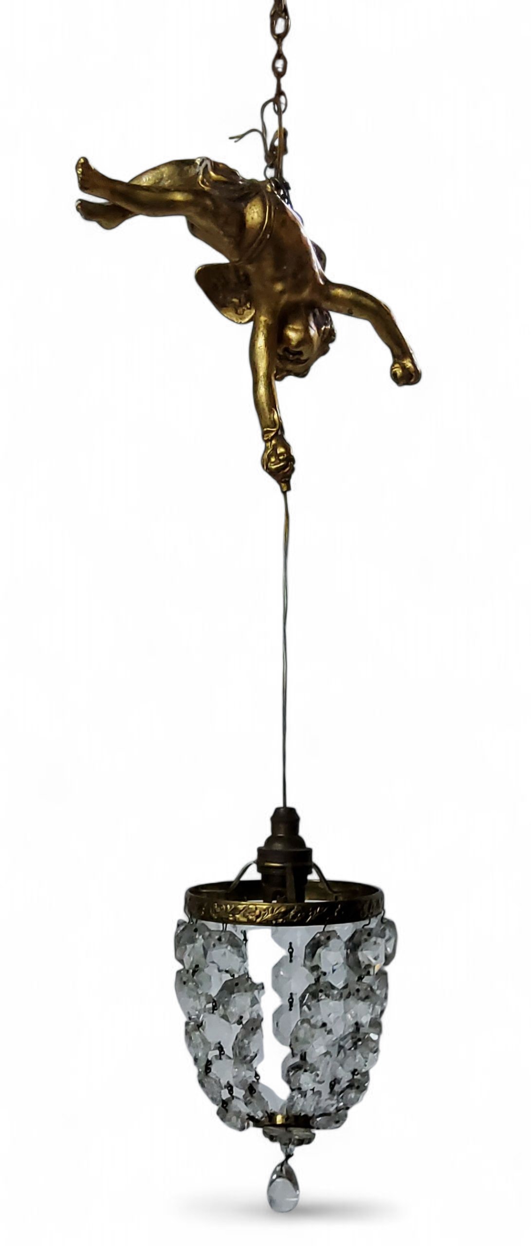 An early 20th century gilt cherub wall light, with prismatic lustres, 20cm high