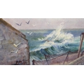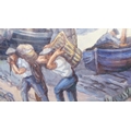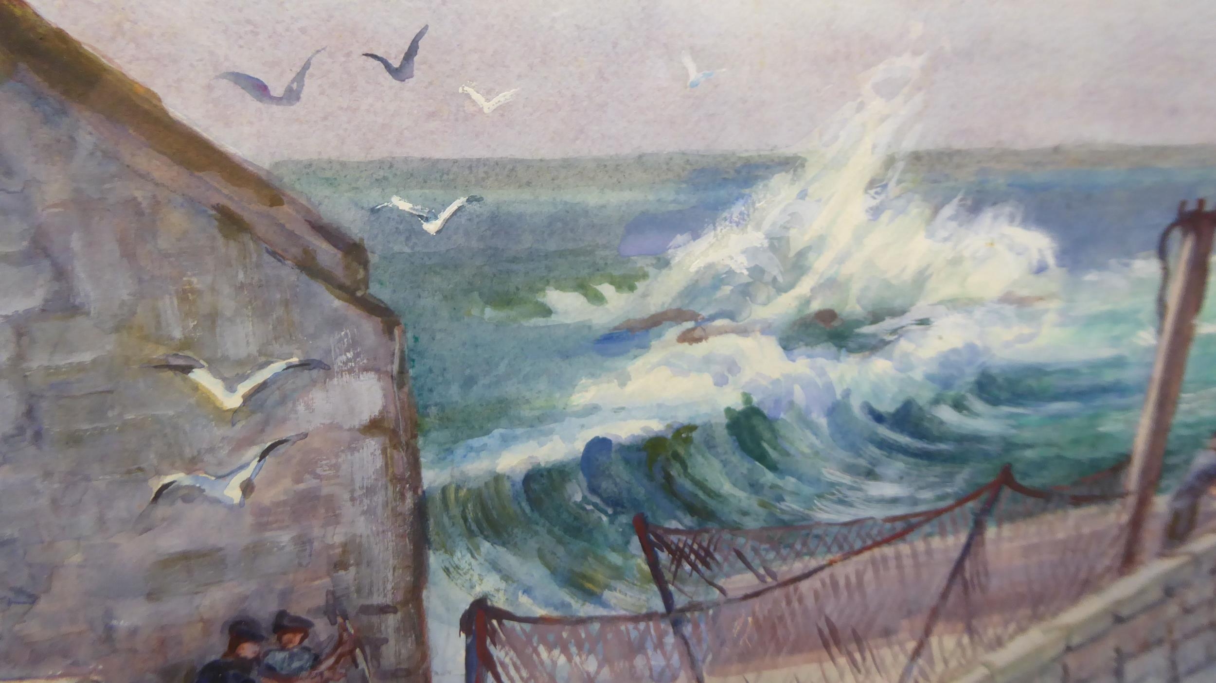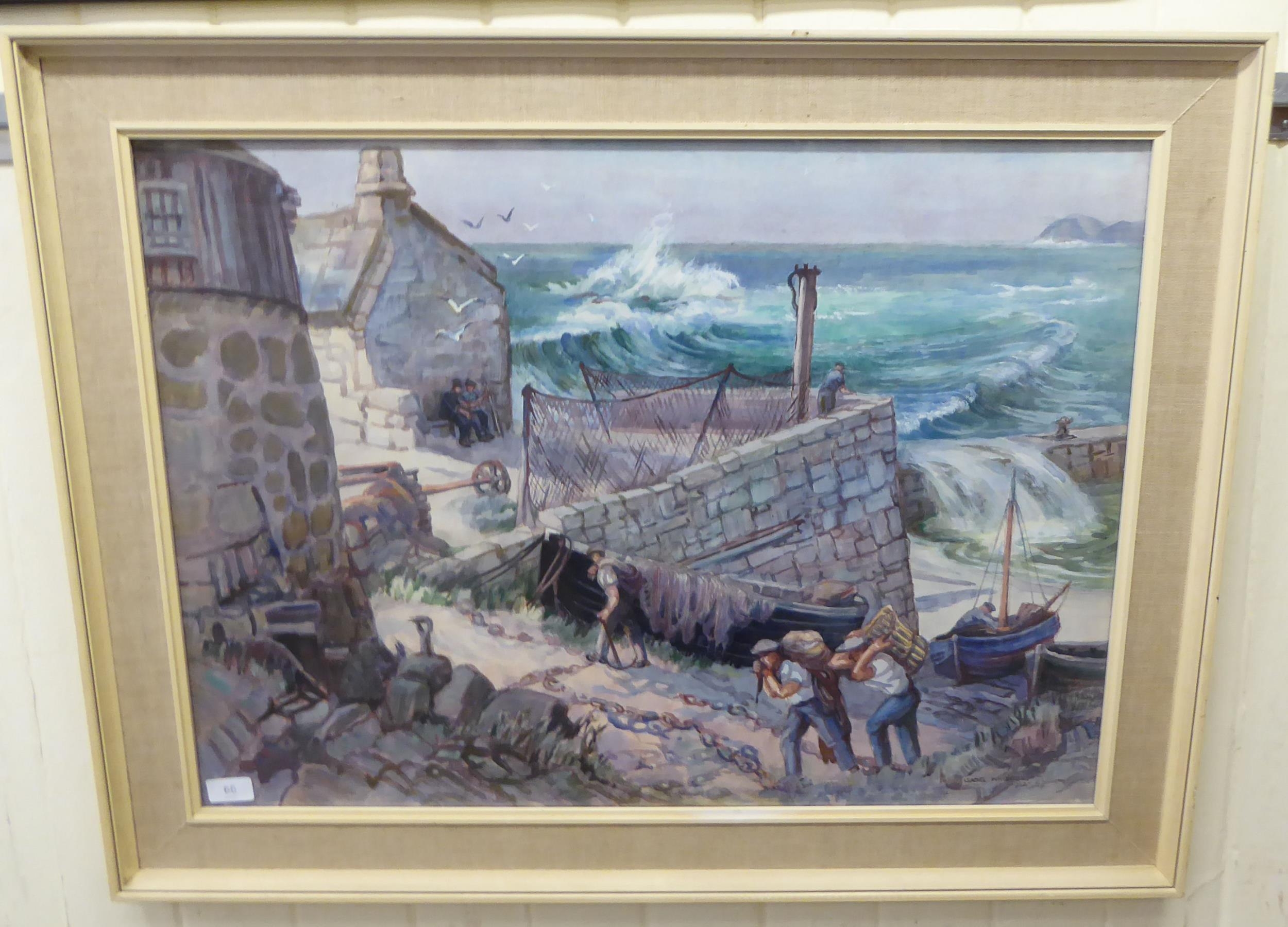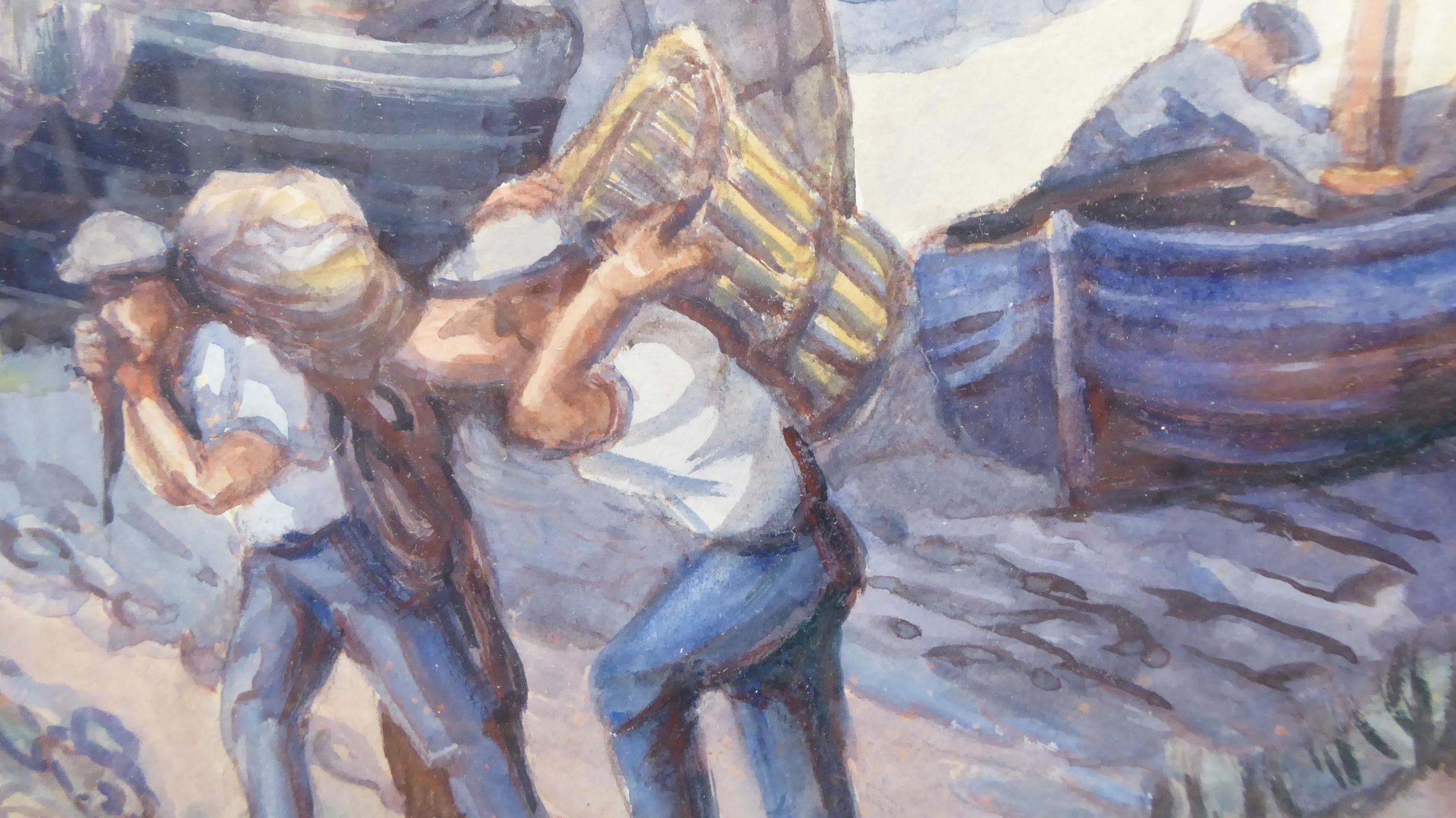 Isabel Wrightson - a fishing village shoreline scene watercolour bears a signature & dated 1962 21" x 29" framed