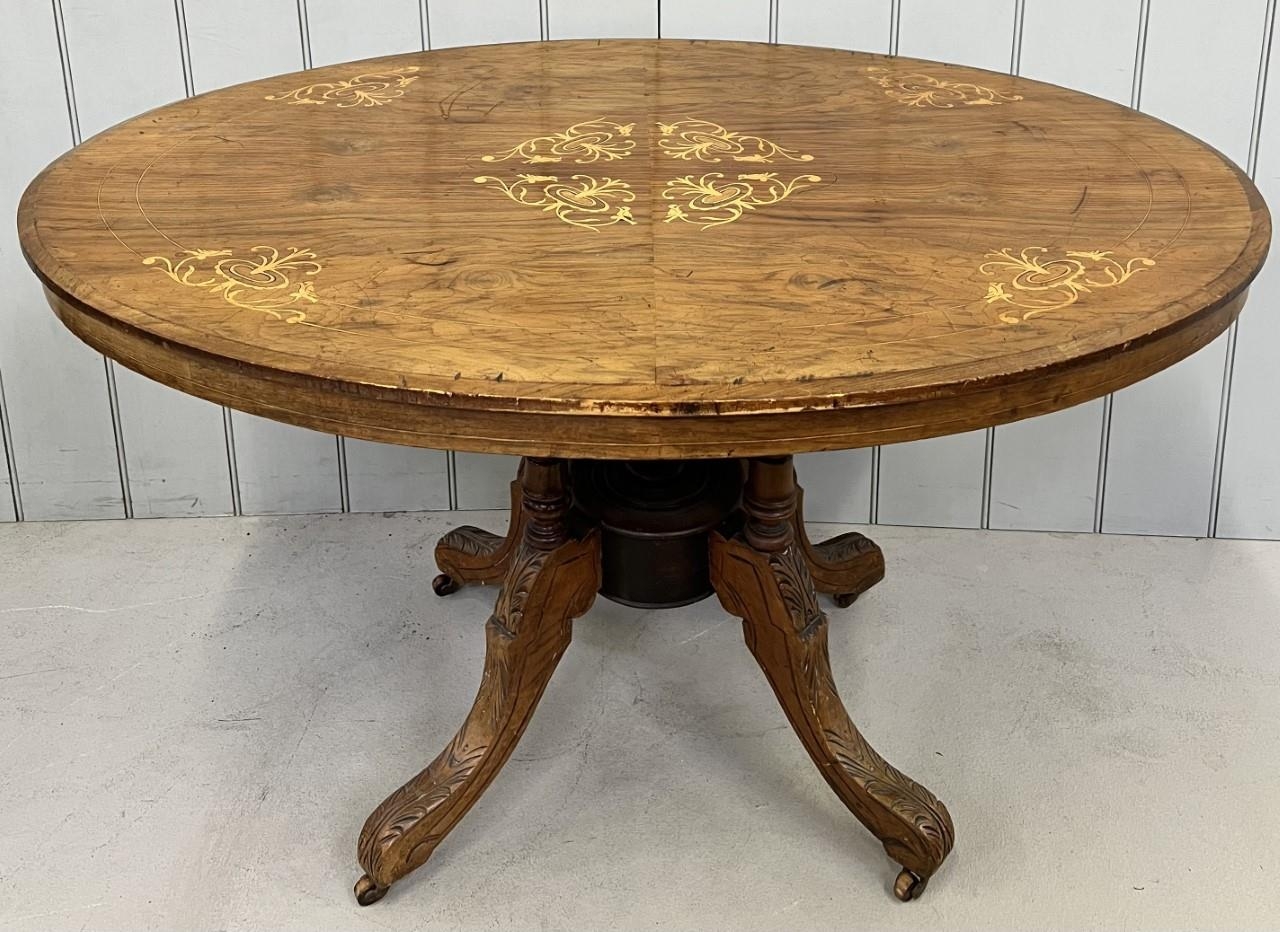 A charming, inlaid walnut, Victorian breakfast table.Dimensions(cm) H72, W116, D84.