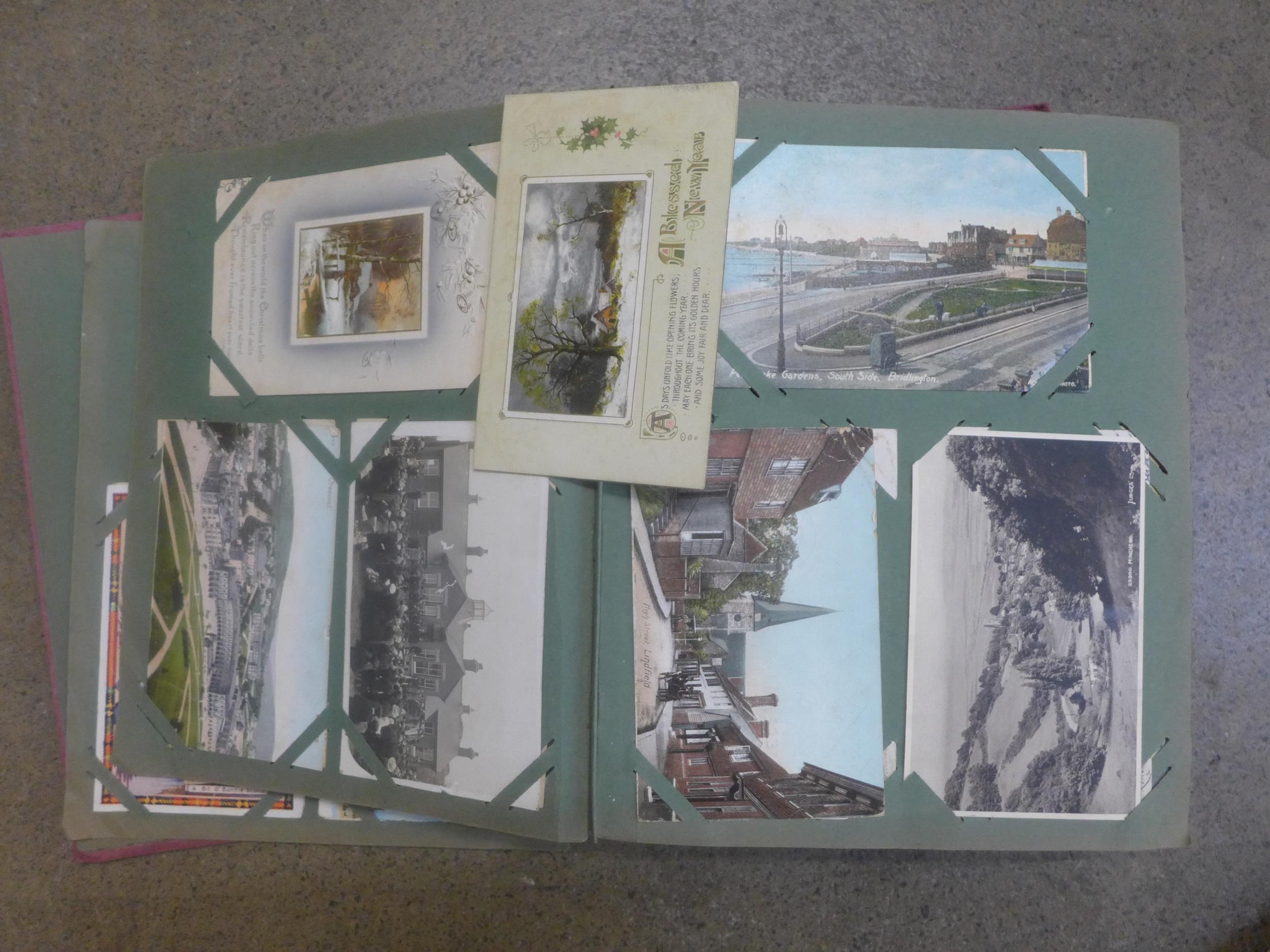 An album of 330 Edwardian and later postcards, about half of which are saucy seaside humour