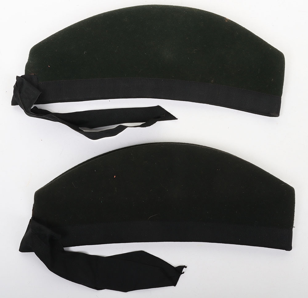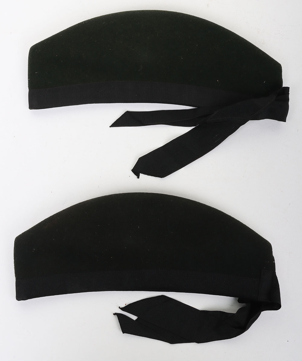 2 Highland Light Infantry glengarry caps made from black cloth with black band & tails and scarlet pompoms. Black satin lining. Both unissued but with storage wear.
