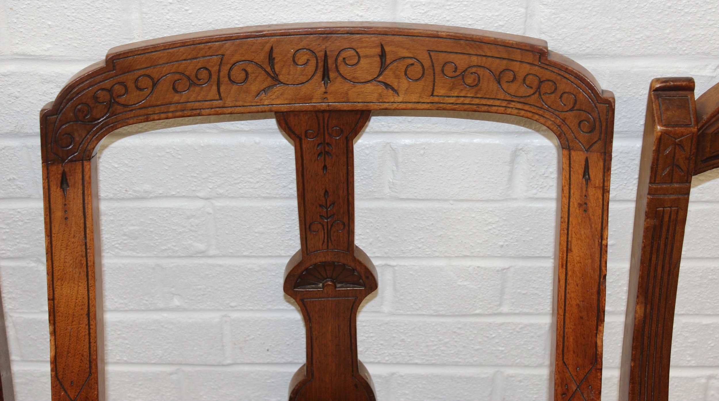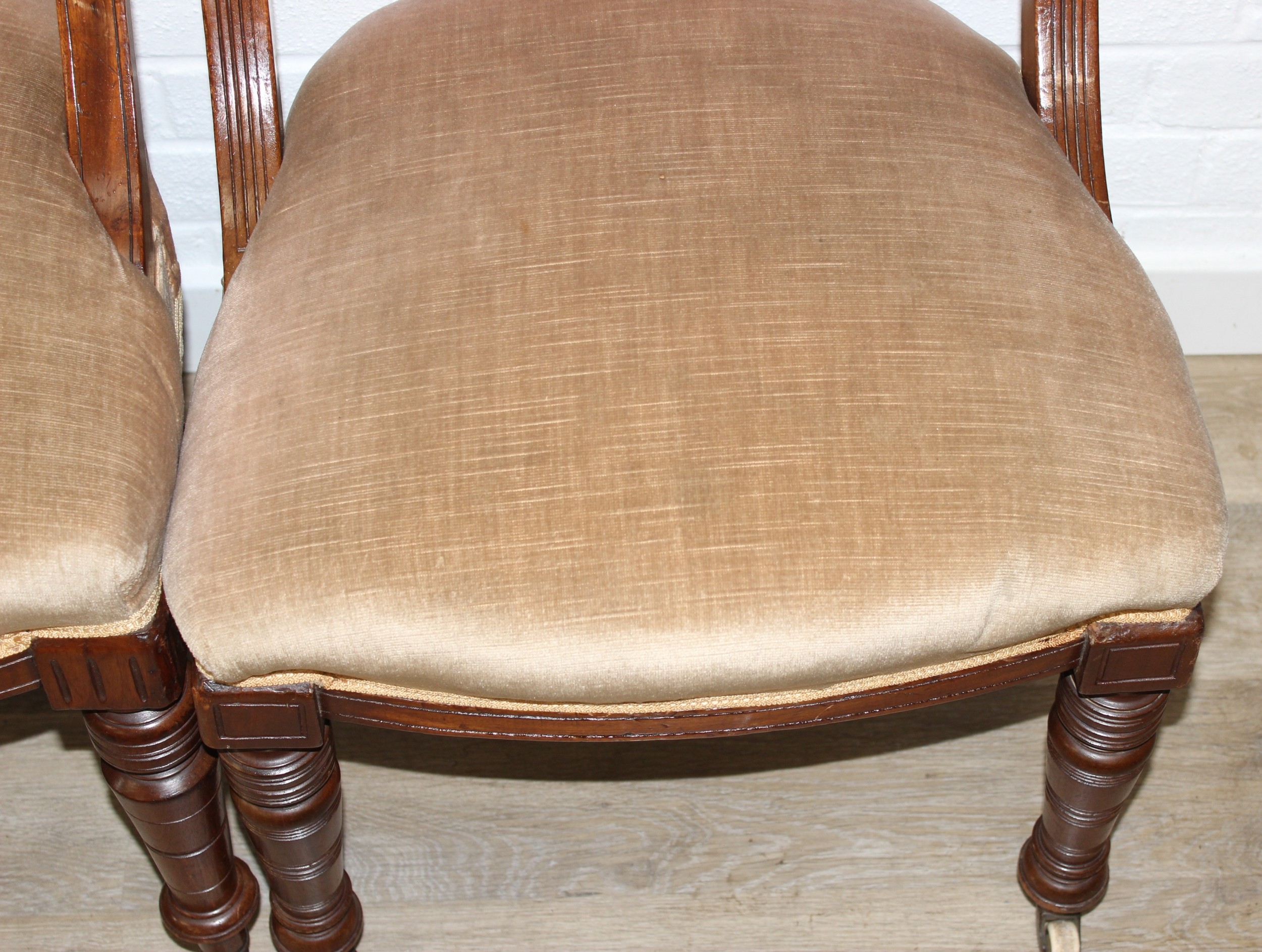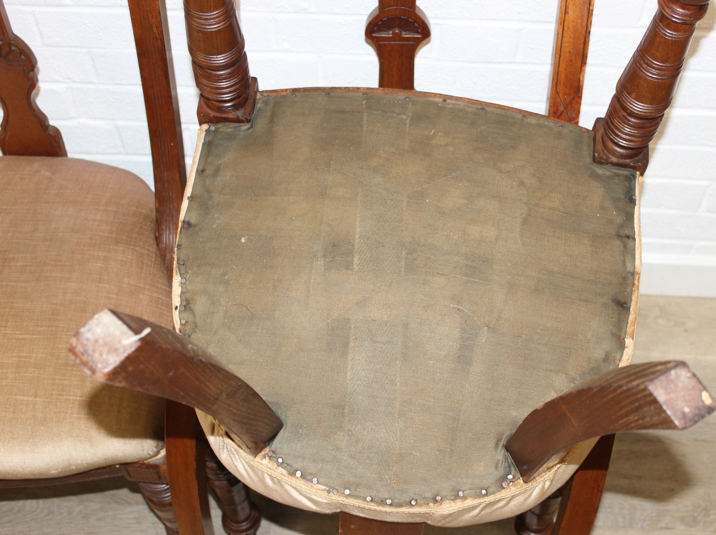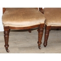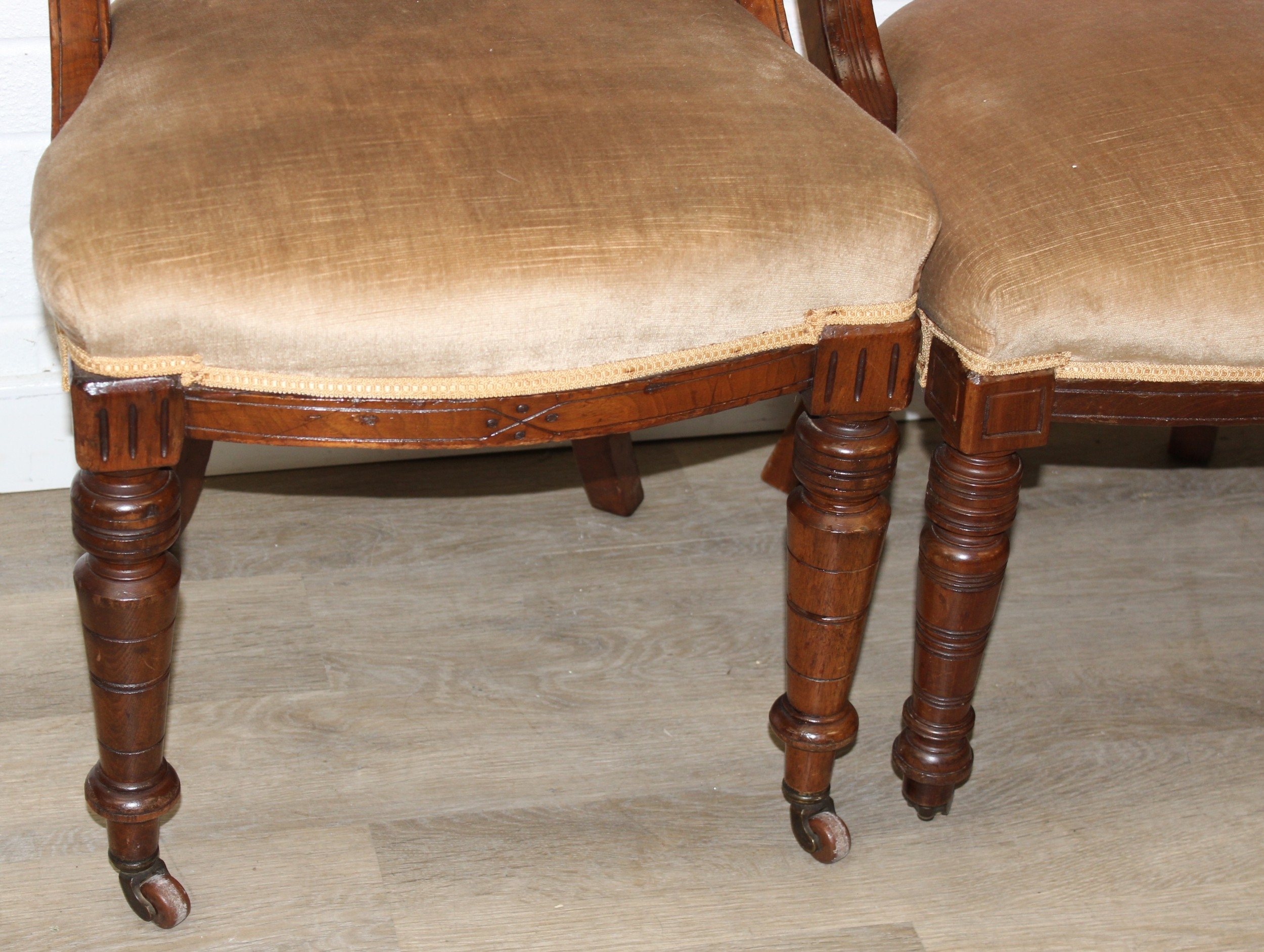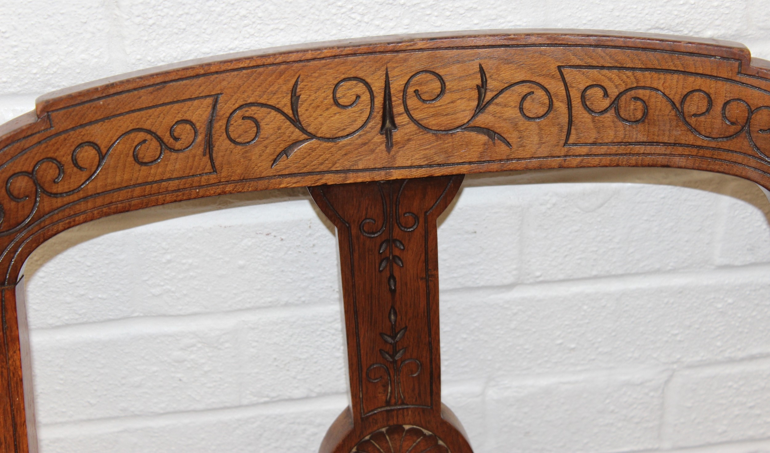 A set of Four matched salon chairs with carved and curved backs and gold coloured upholstery, each 87cm tall [4]