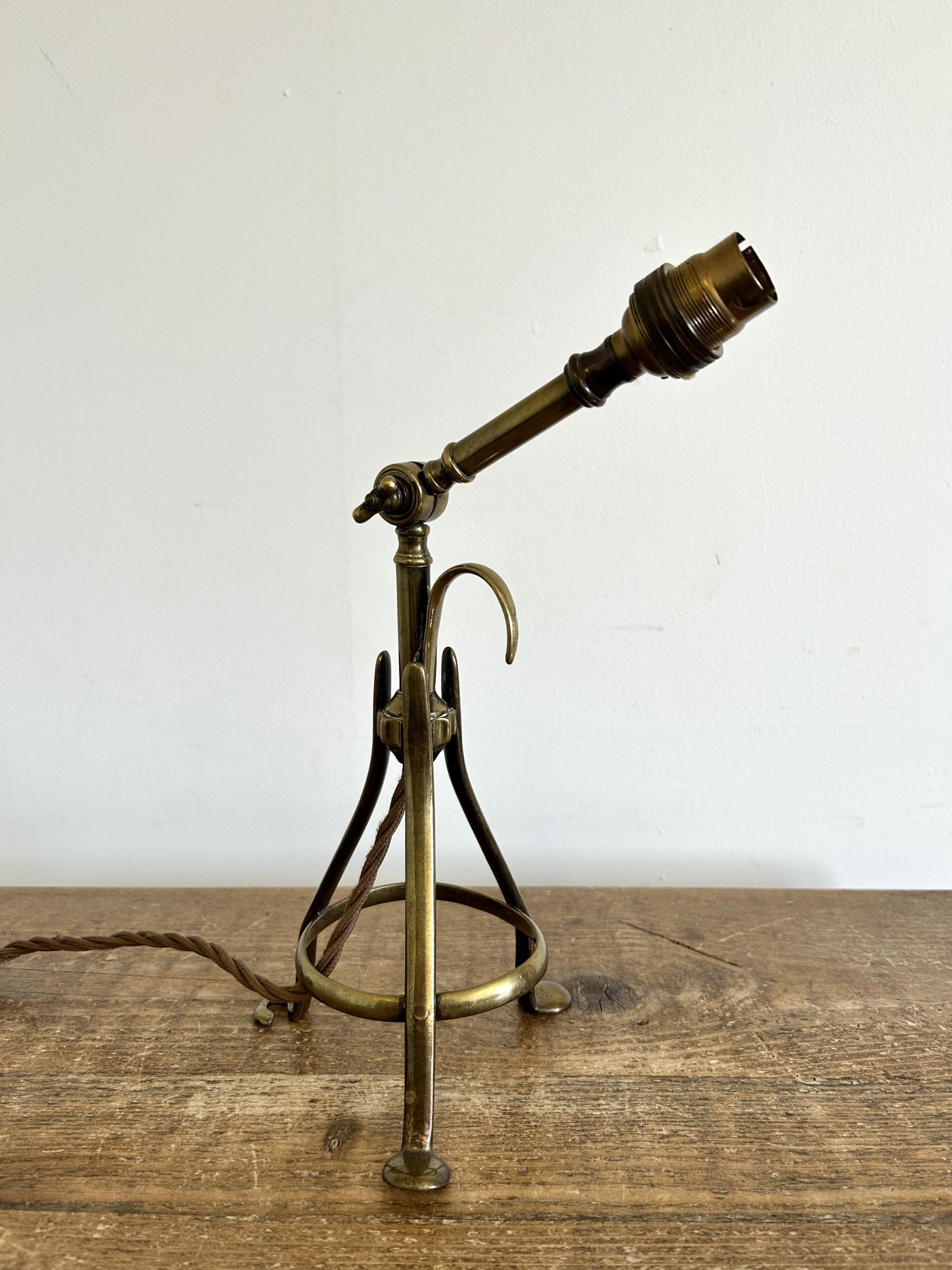 A vintage brass adjustable table lamp, approx. 14" high