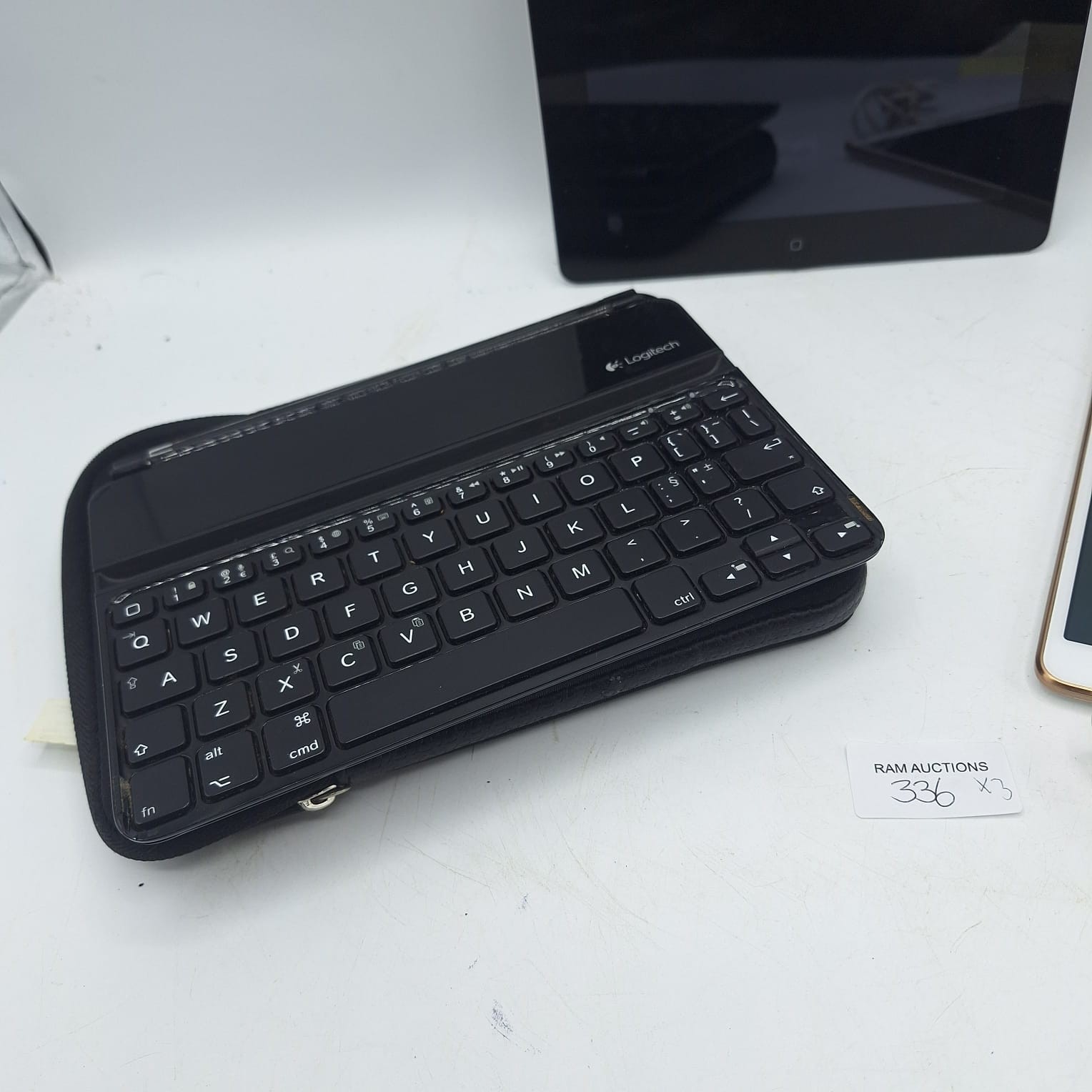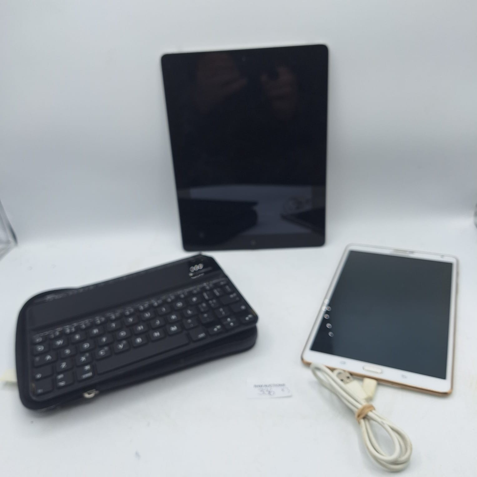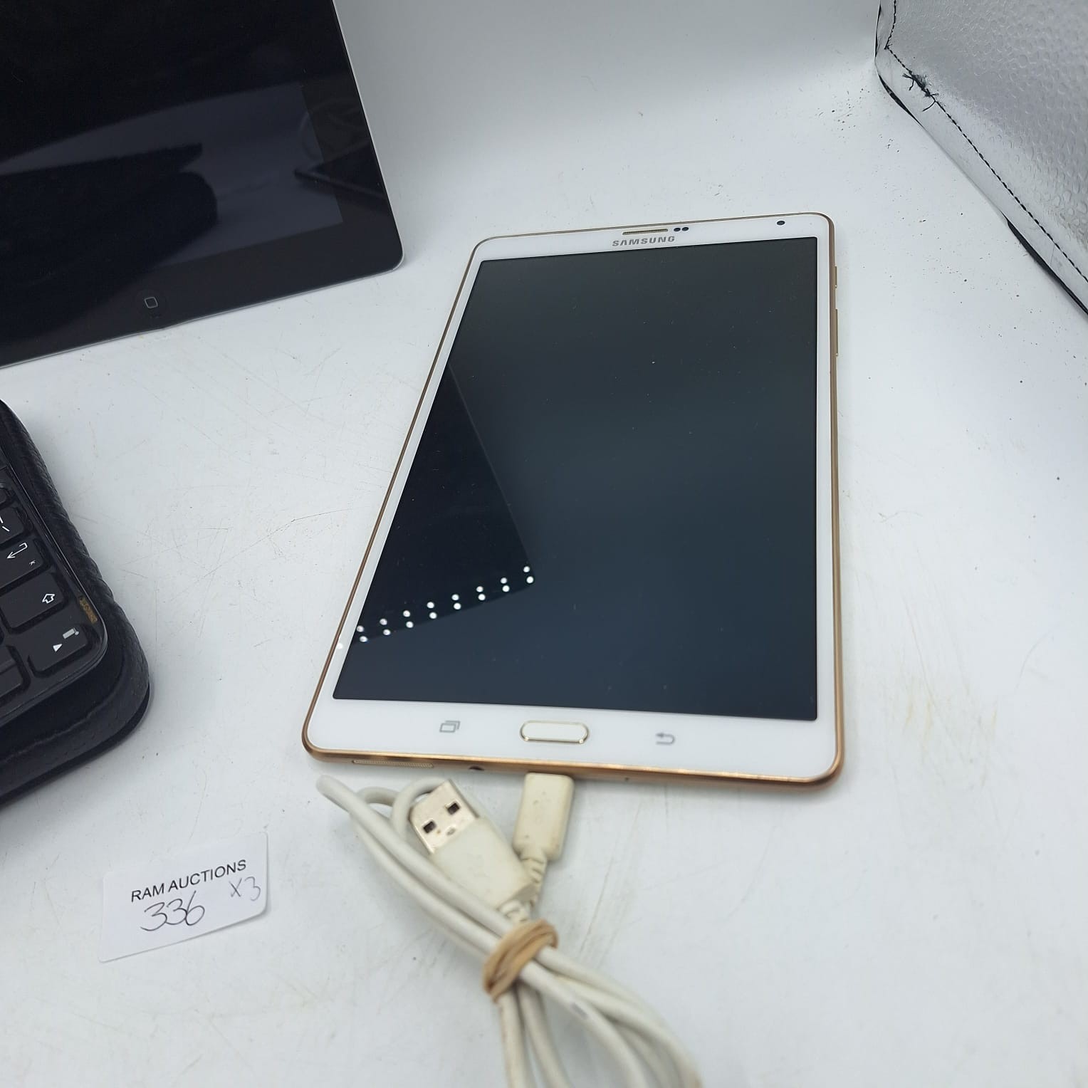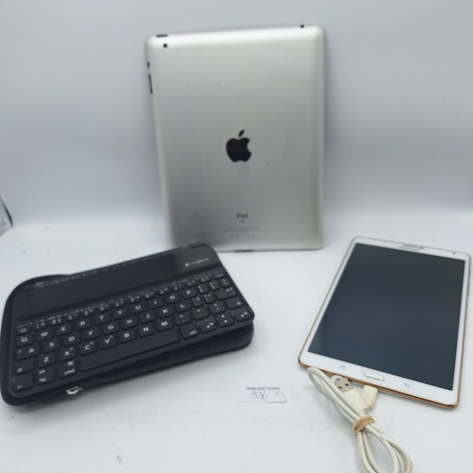 SAMSUNG TABLET, CASED LOGITECH TABLET AND AN APPLE IPAD
