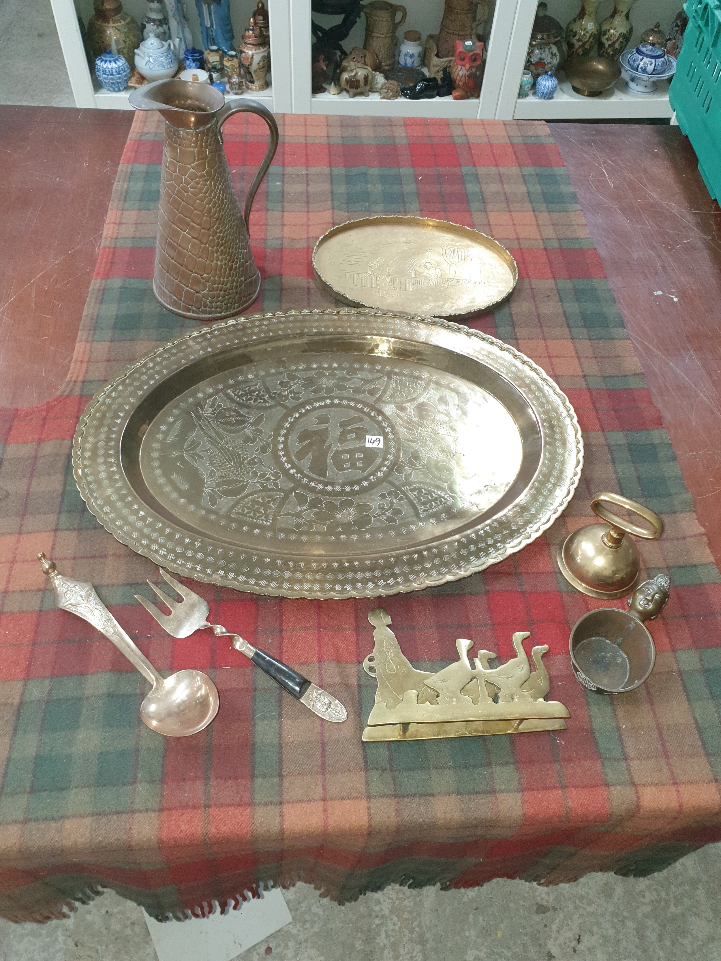 Selection Of Brassware to Include Large Chinese Plaque And Chinese Tray etc