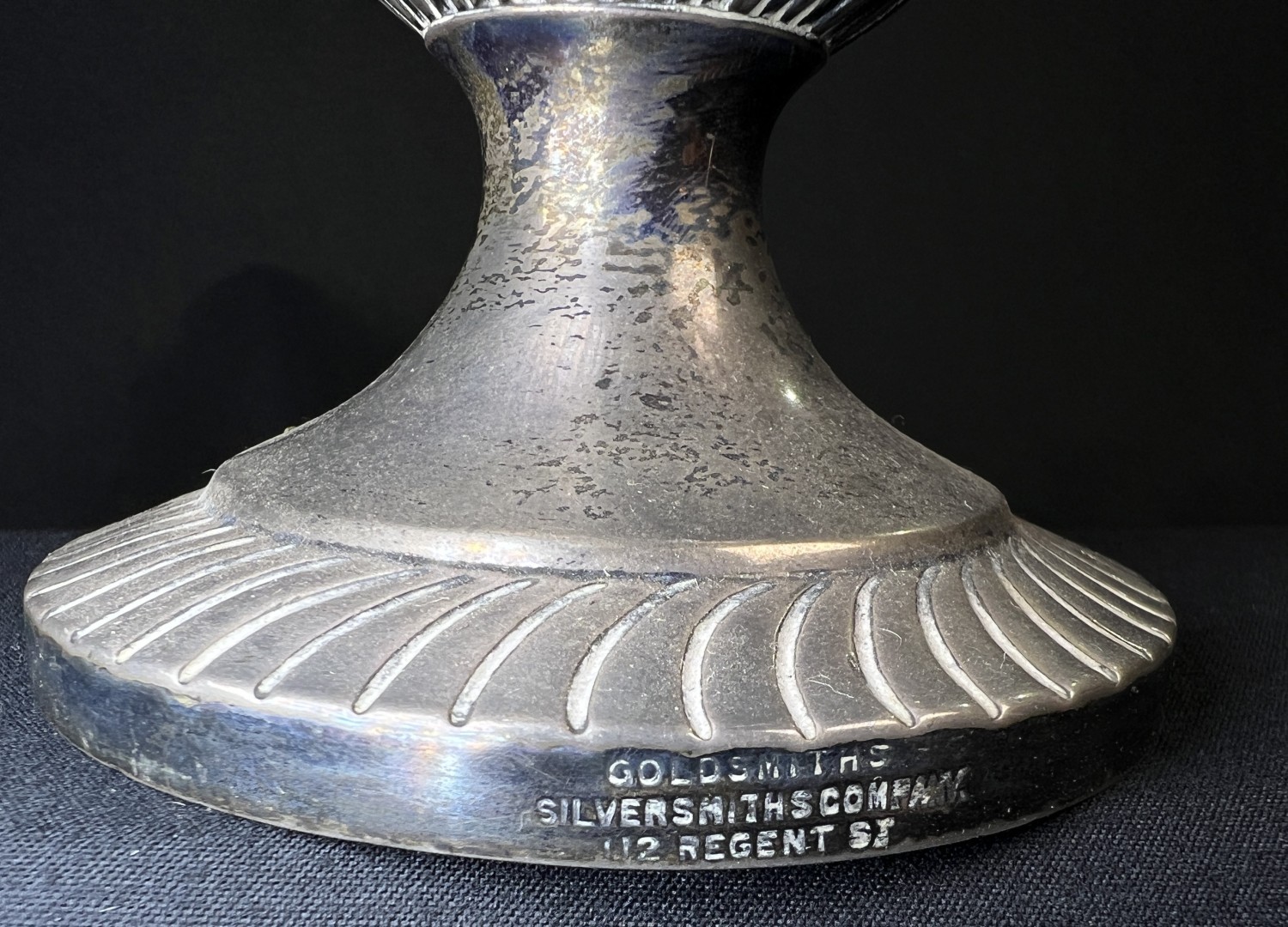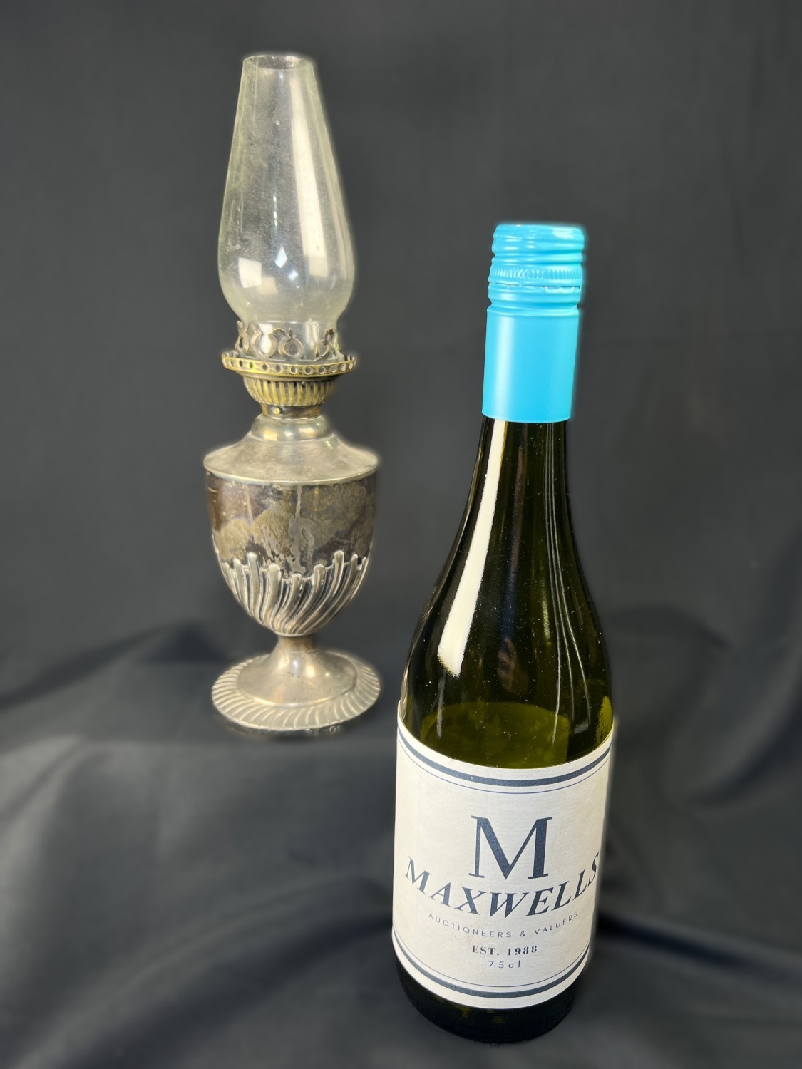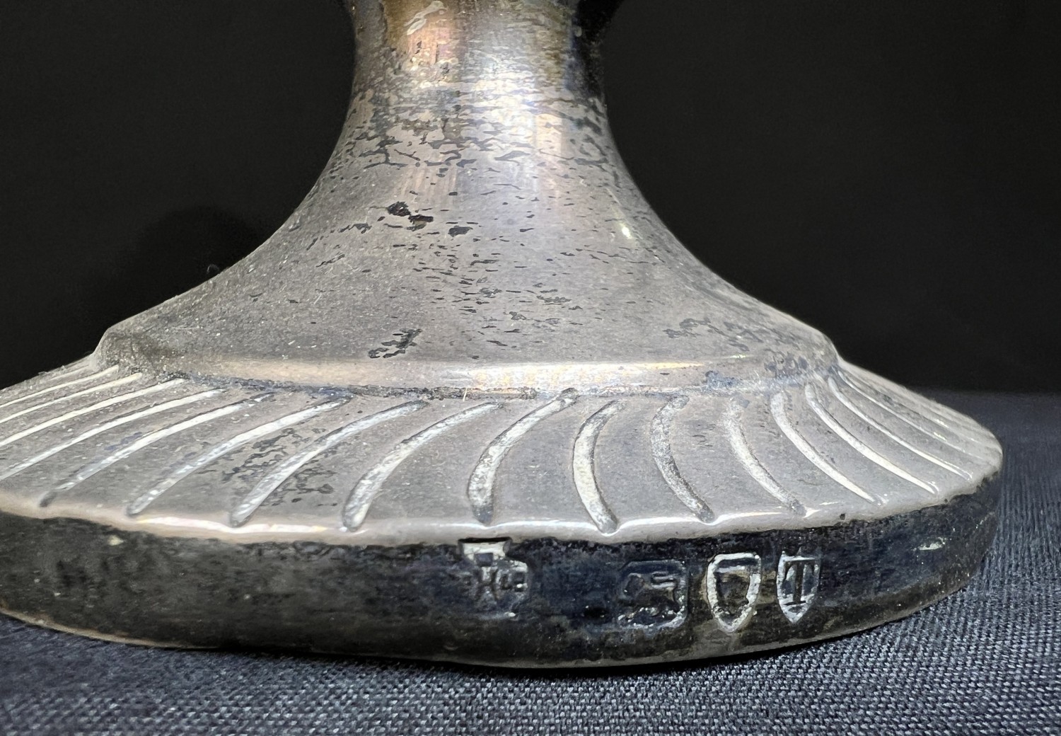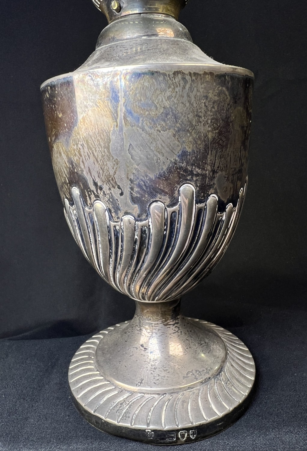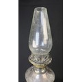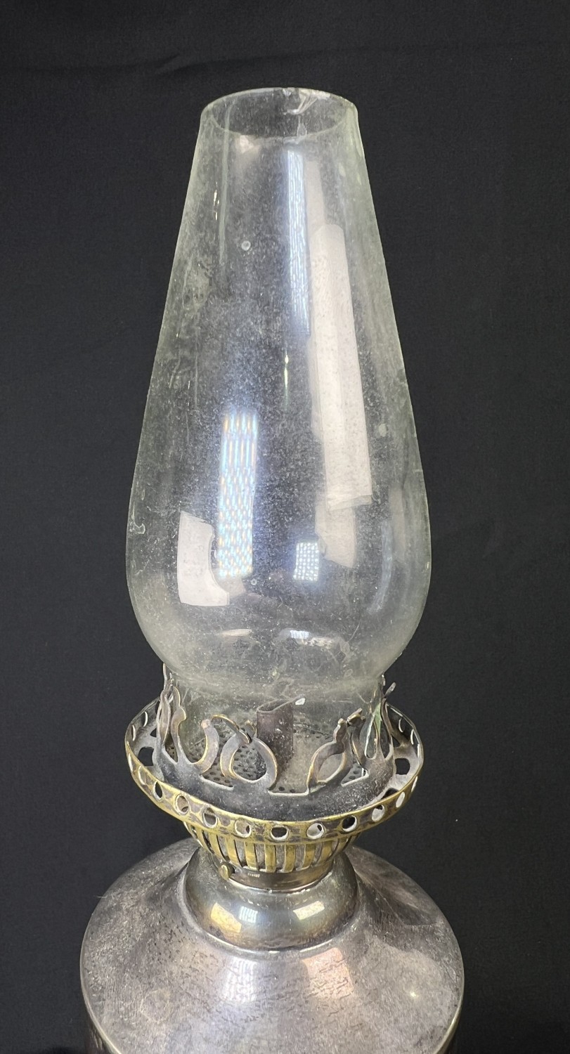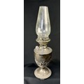 A hallmarked silver oil lamp with gadrooned lower body and pedestal base, London 1894, Weighted base