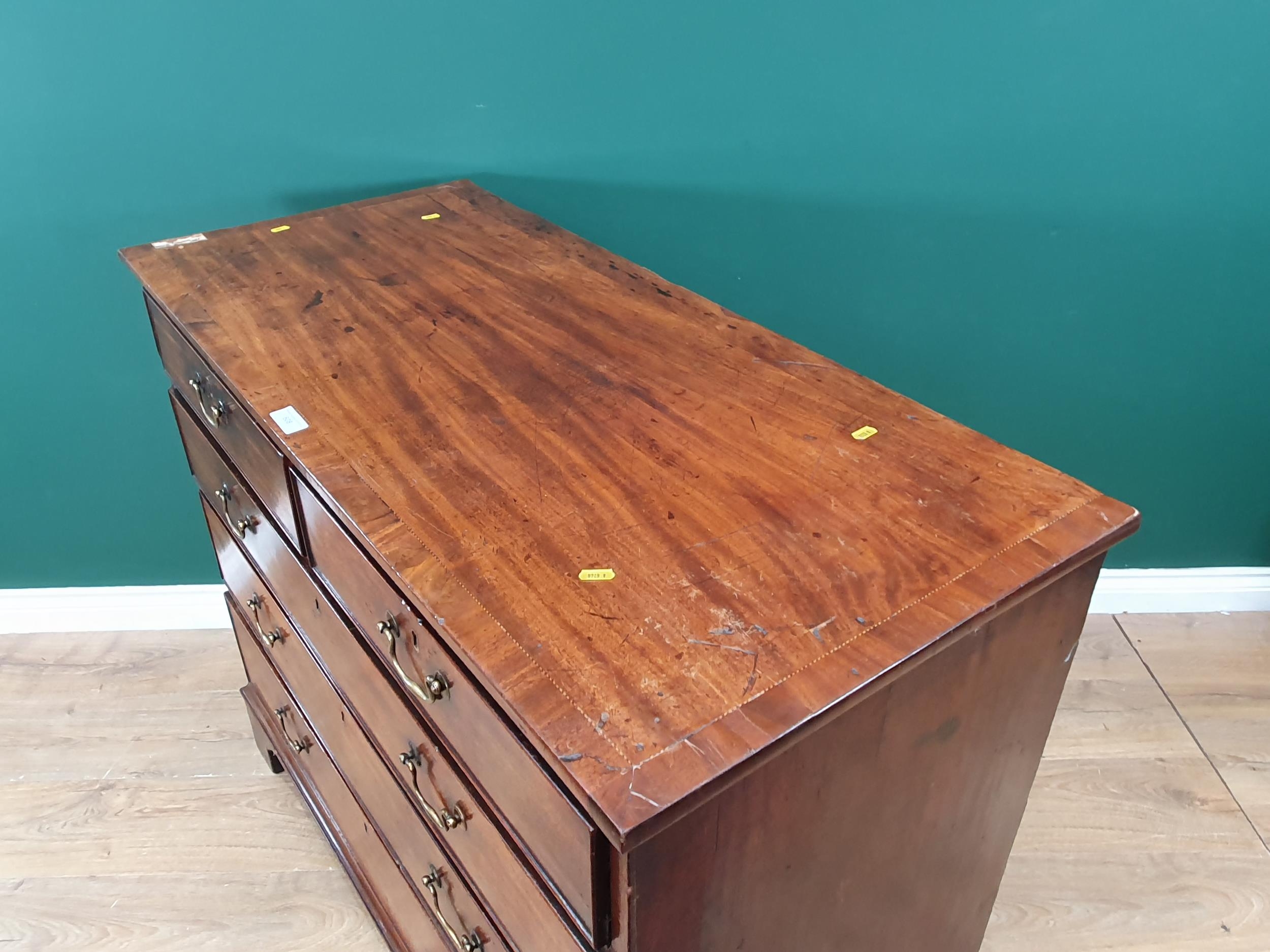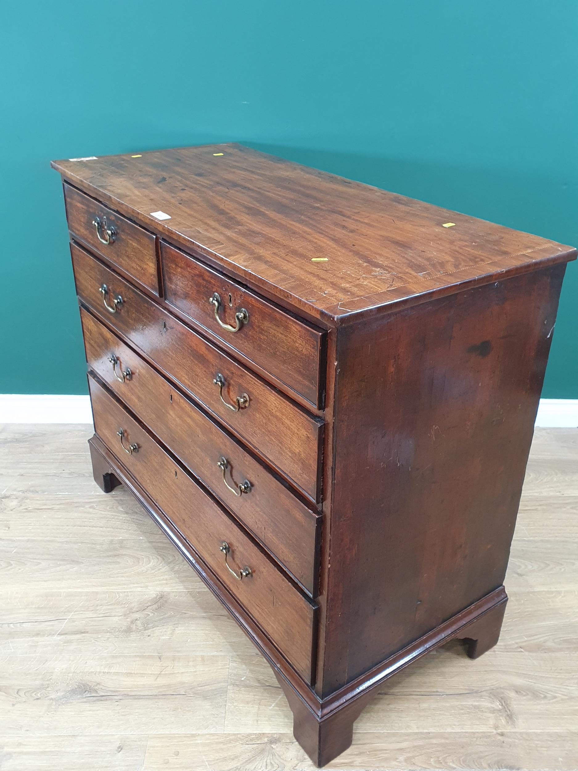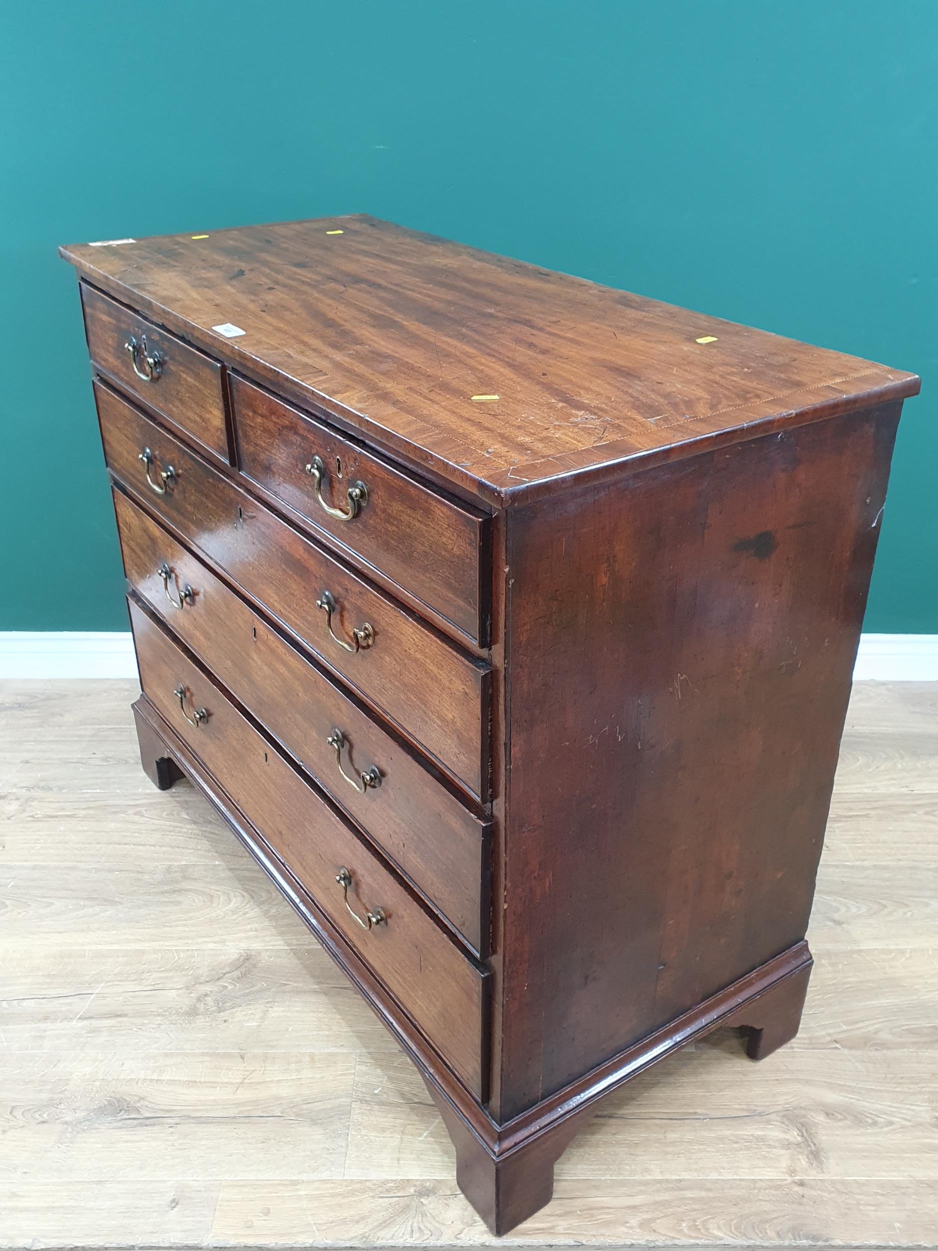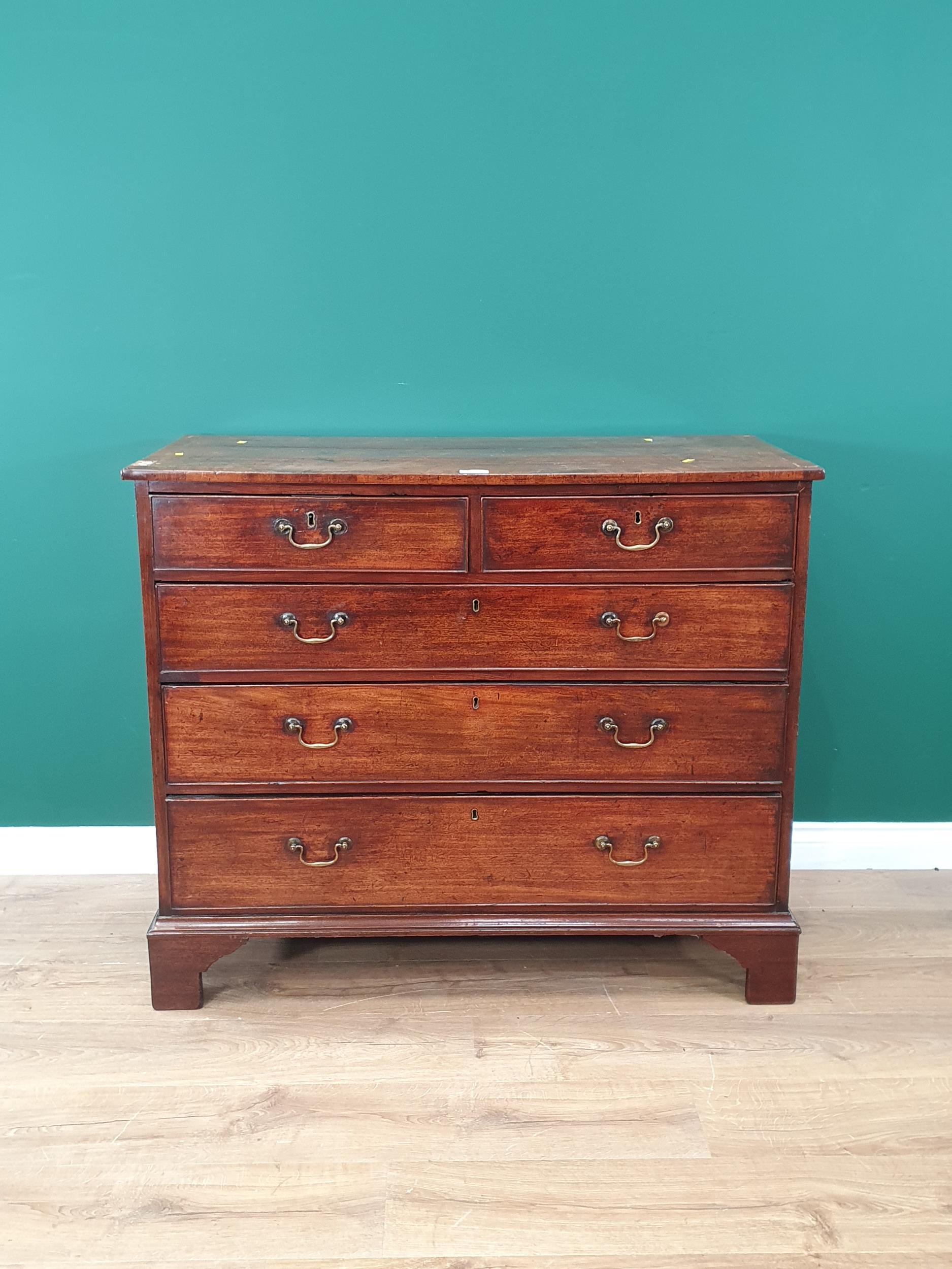 A George III mahogany Chest of two short and three long graduated drawers raised on shaped bracket feet 3ft 7in W x 3ft H