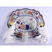 A PAIR OF 19TH CENTURY MINTON MAJOLICA FIGURAL MATCH HOLDER DISHES. 21 cm high.