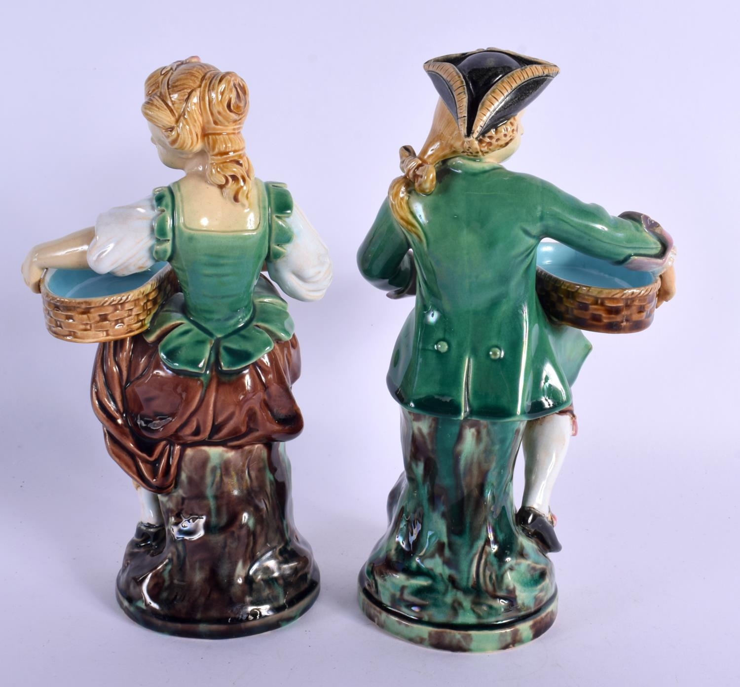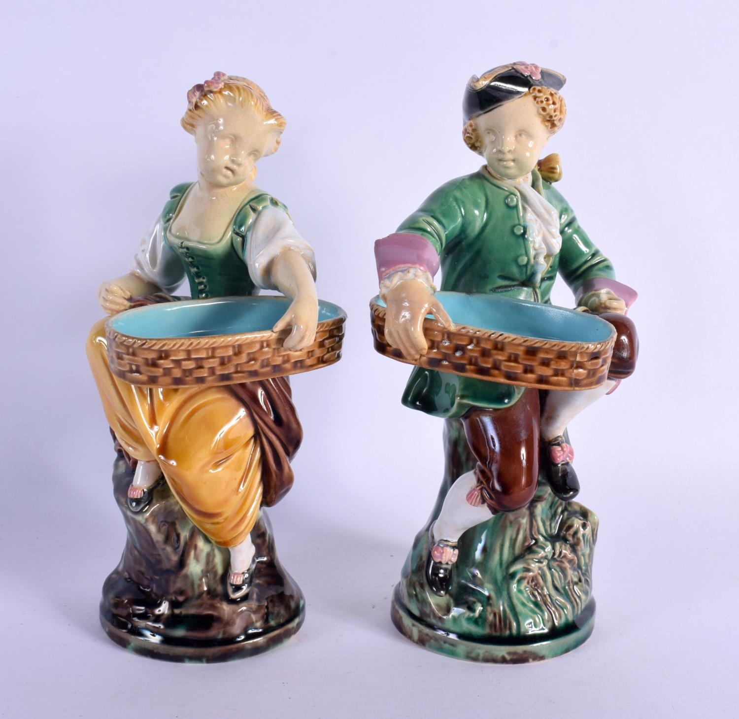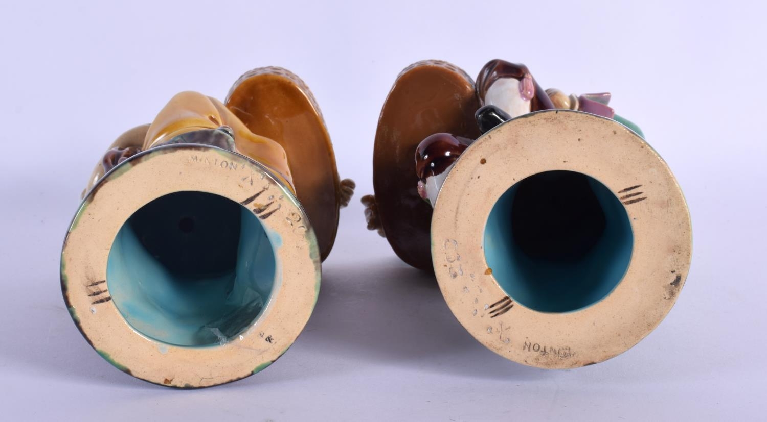 A PAIR OF 19TH CENTURY MINTON MAJOLICA FIGURAL MATCH HOLDER ...
