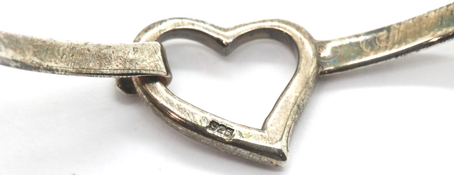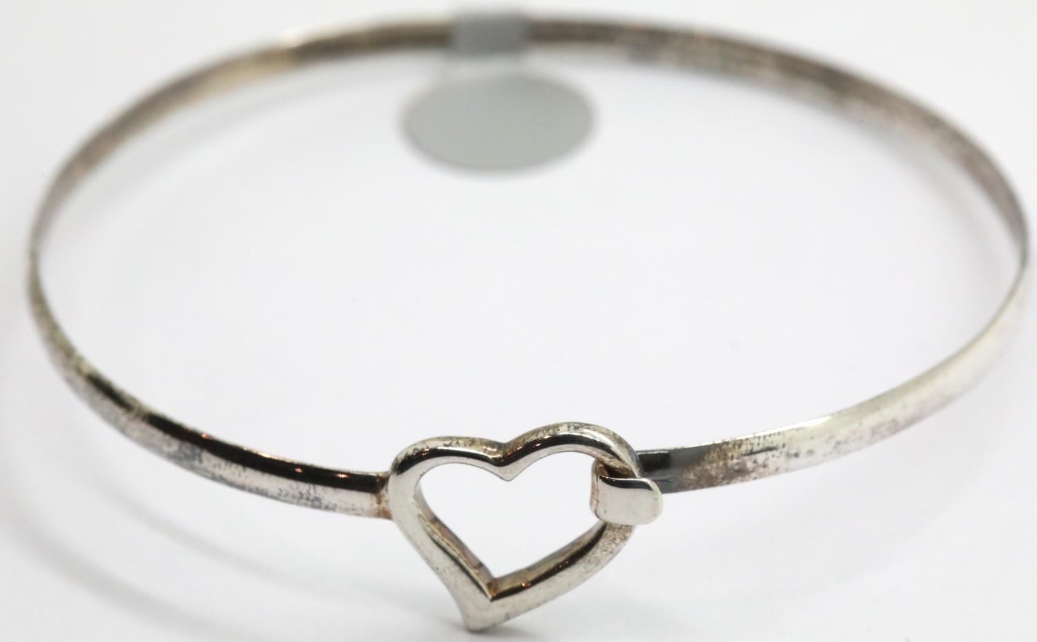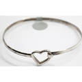 Modern silver heart bangle. P&P Group 1 (£14+VAT for the first lot and £1+VAT for subsequent lots)