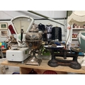 Late Victorian/ Edwardian silver tone tea urn/ samovar with ebony handles by SB & M (43cm tall 2.25kg), Avery shop scales (no bowl) & 2 sets of cast scales with various cast & brass weights