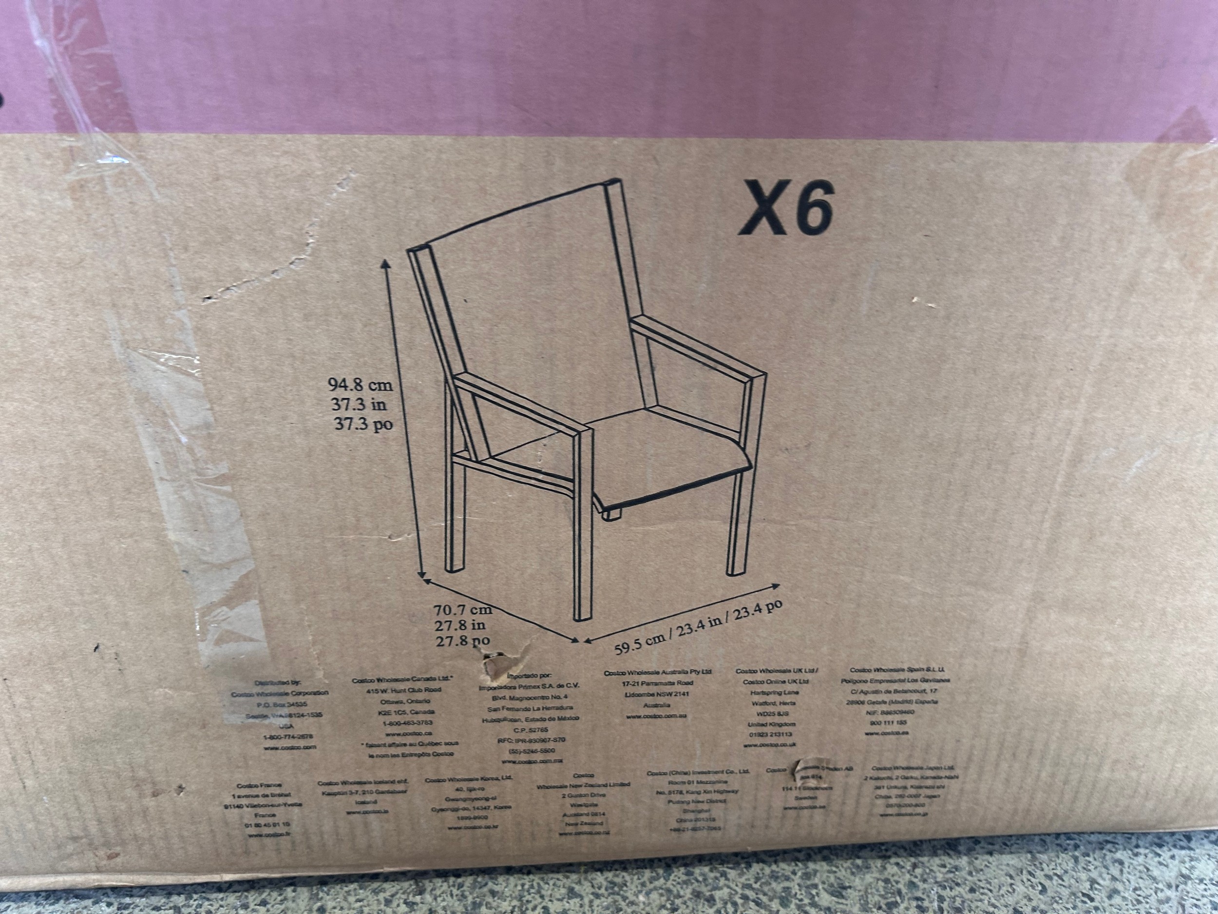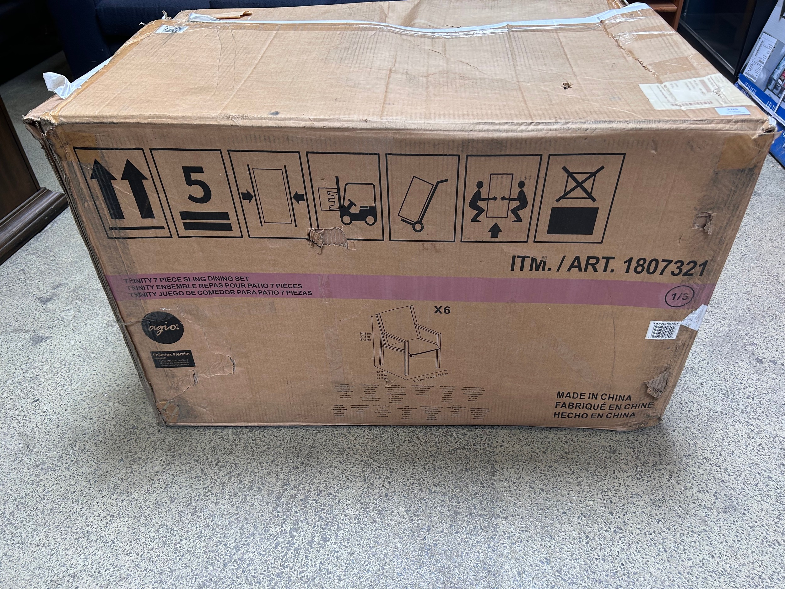 A set of six Agio Trinity sling dining chairs, boxed and unchecked (4239-2) *This lot is subject to VAT
