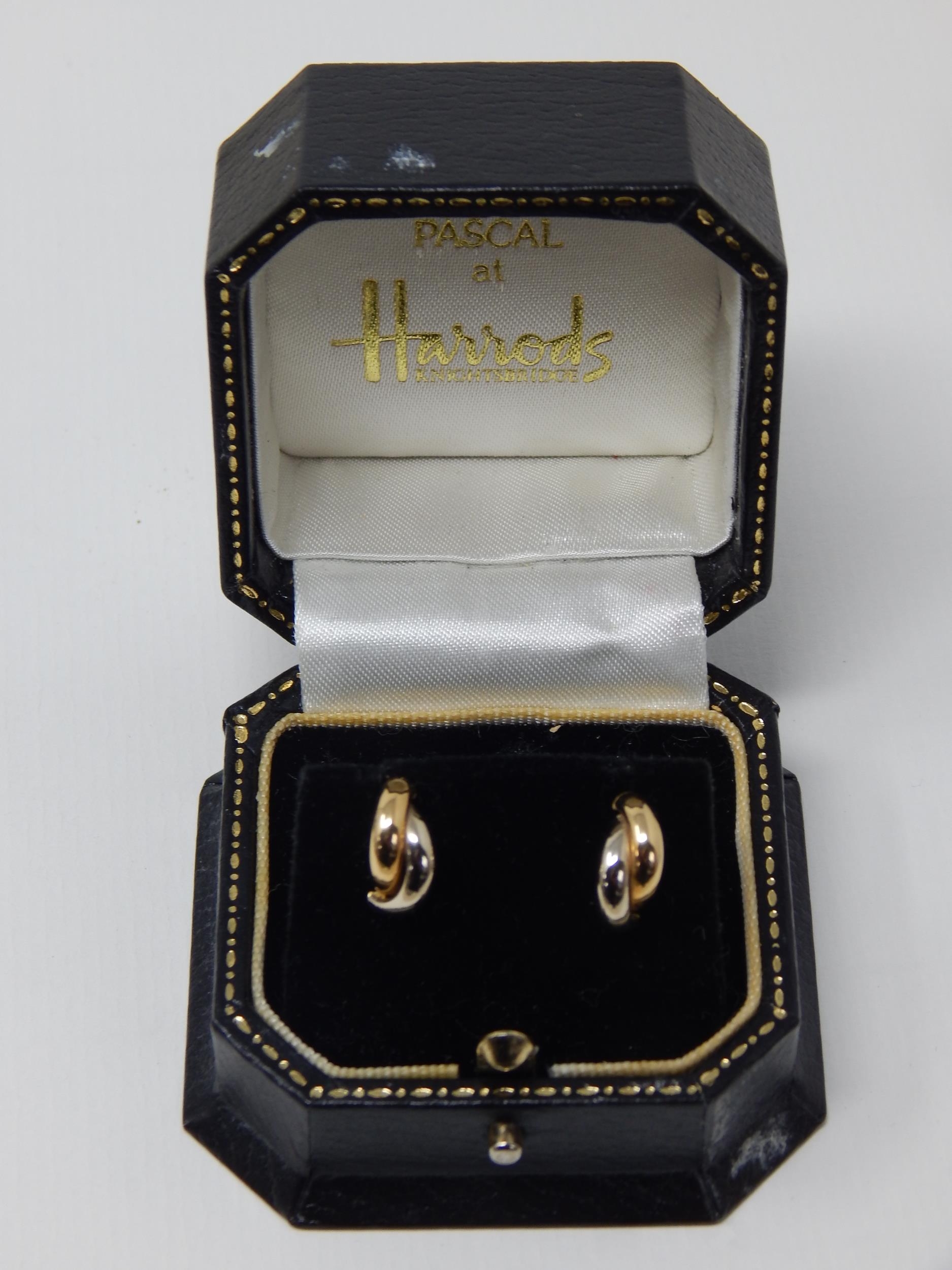 A Pair of 18ct Yellow Gold Earrings with Butterfly Fastenings in Fitted Harrods Case.