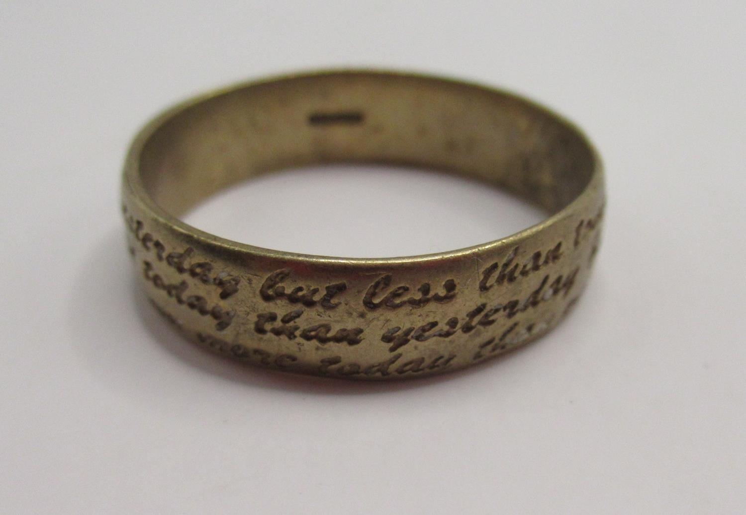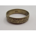 9ct yellow gold wedding band with engraved vows decoration, stamped 375, 4.44g
