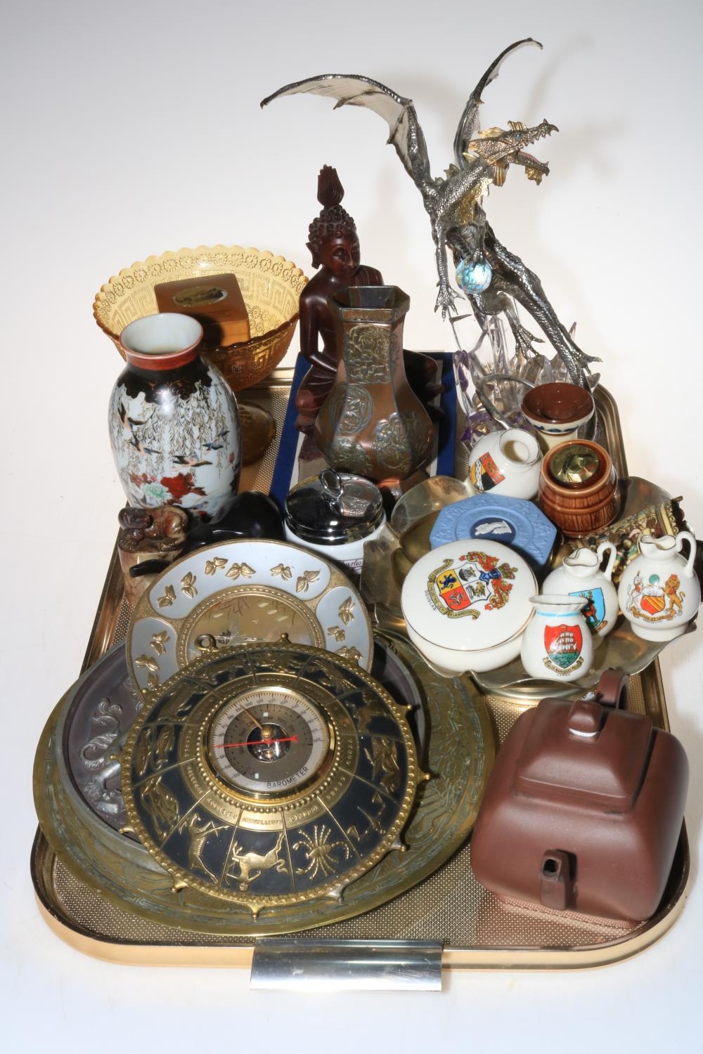 Franklin Mint dragon, crested china, metalwares, etc.