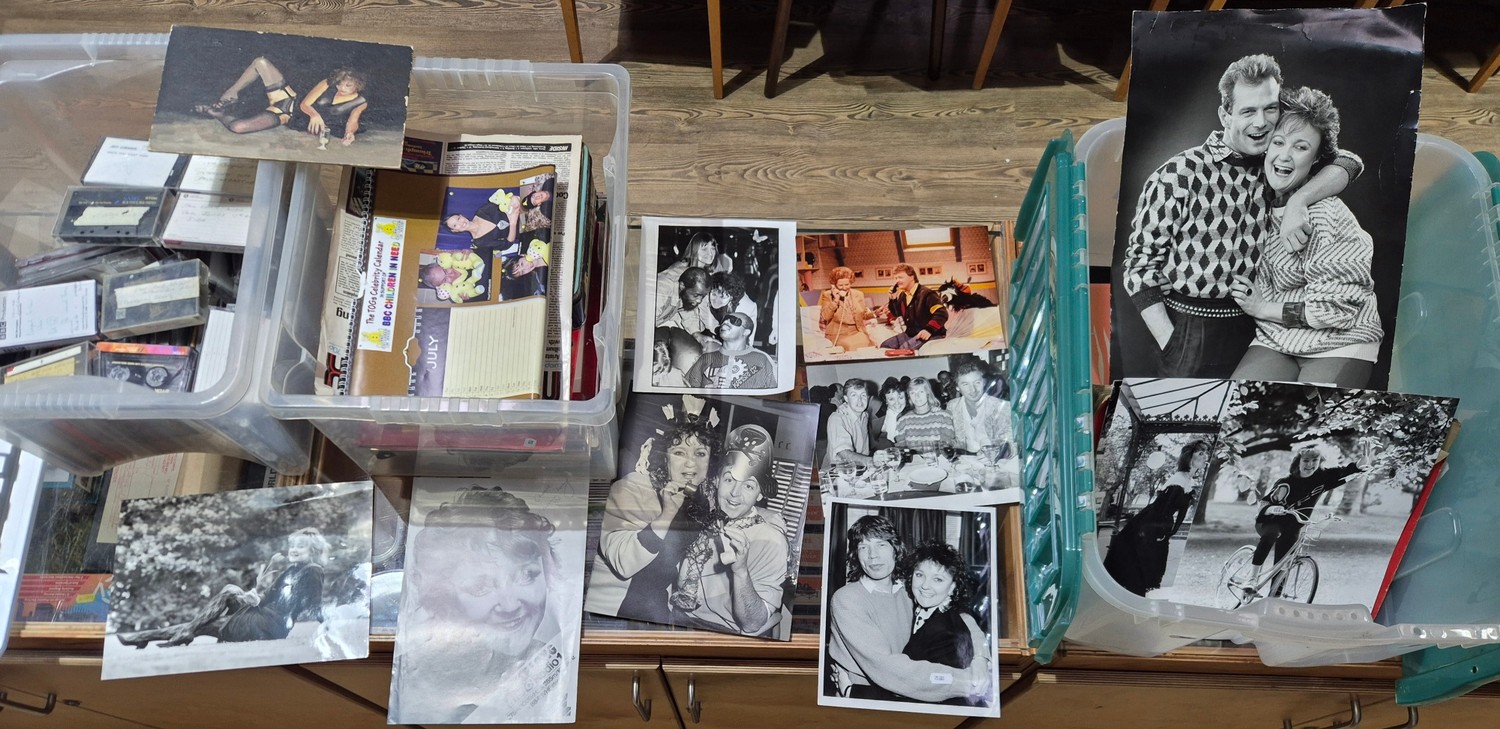 Three boxes of photographs, ephemera, cassettes, mainly relating to Janice Long including photographs of Janice with various celebrities and recordings of interviews.
