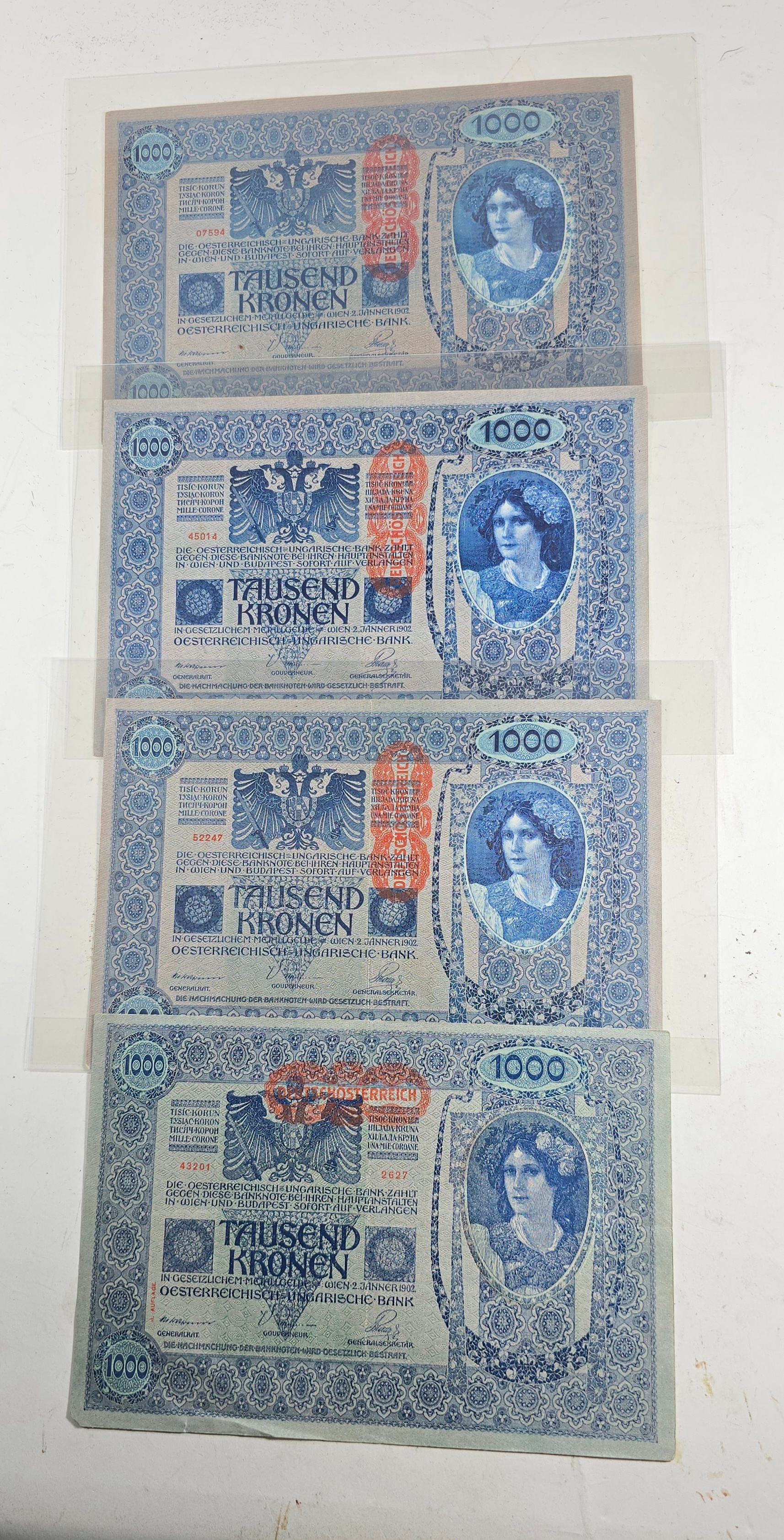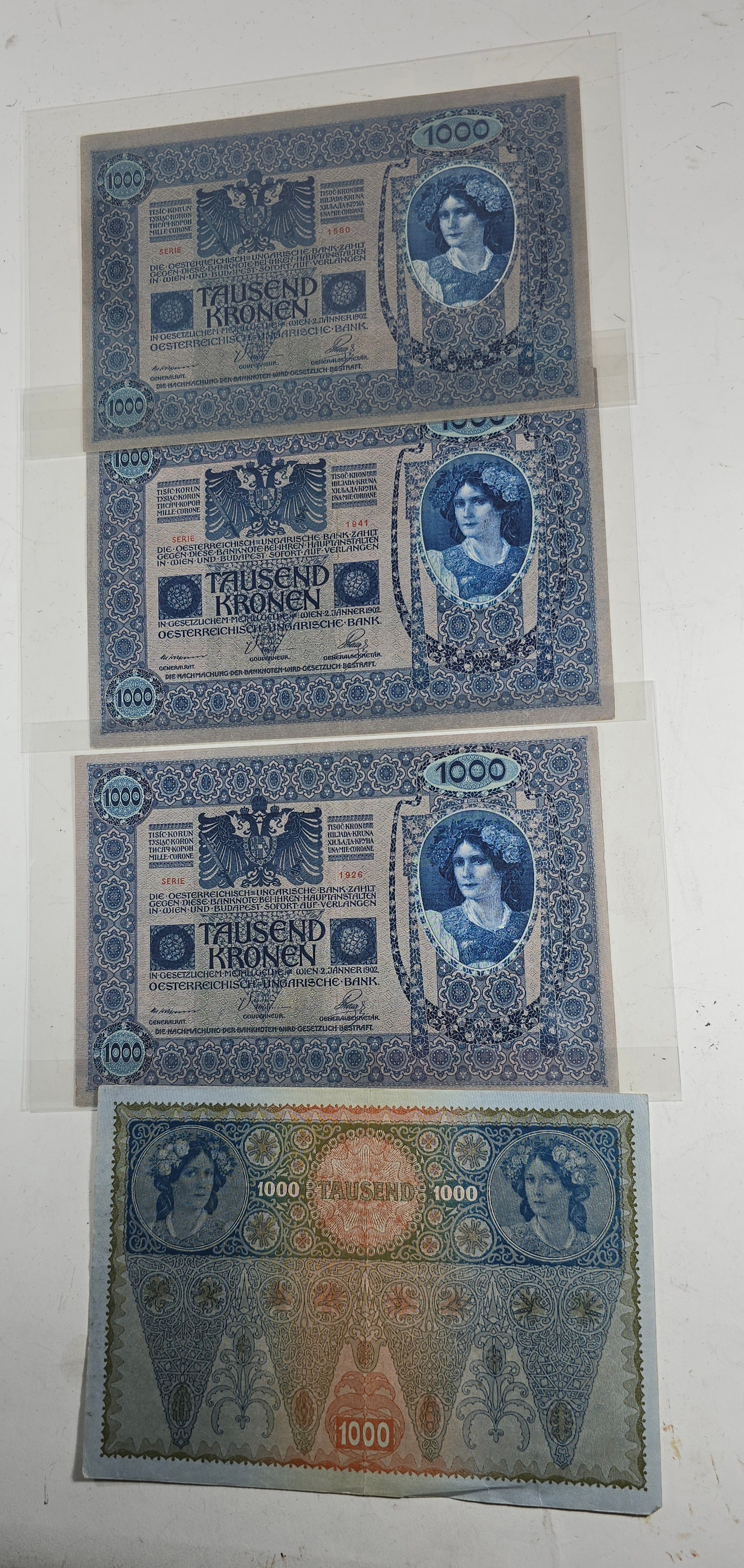 4x Austrian 1000 Tausend Kronen notes. VGC.