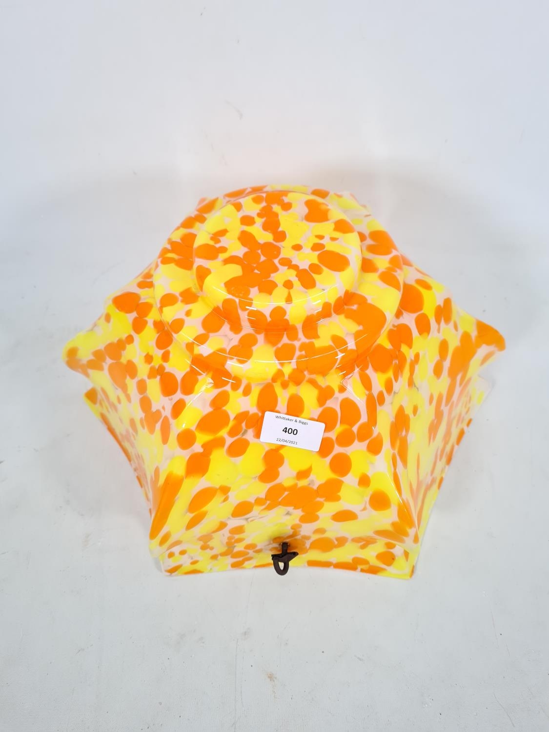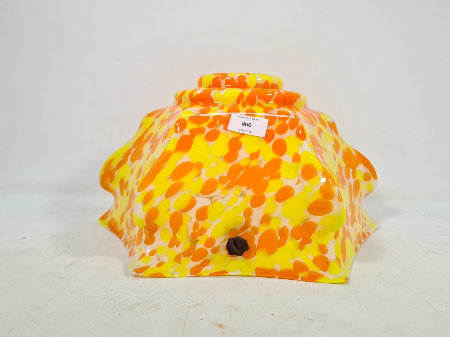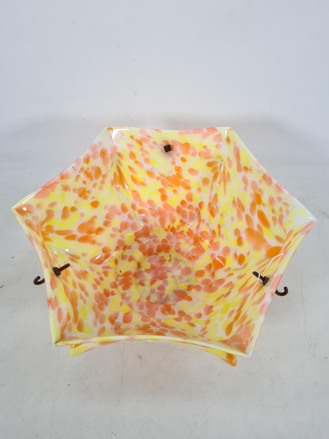 An Art Deco orange, yellow and white mottled glass ceiling light shade