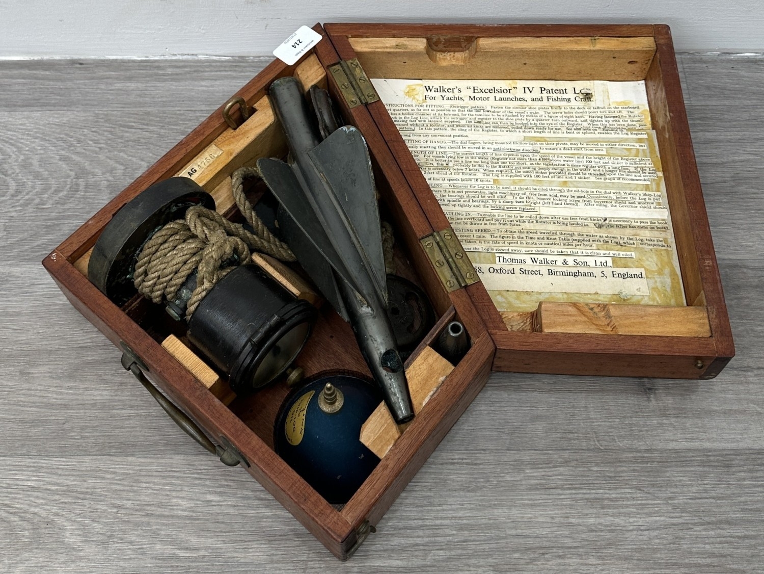A wooden cased Thomas Walker & Son Excelsior IV Patent ship's log - case approx. 12cm high x 28cm wide x 28cm deep