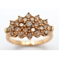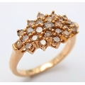 A STUNNING 9K YELLOW GOLD CHAMPAGNE DIAMOND SET CLUSTER RING...