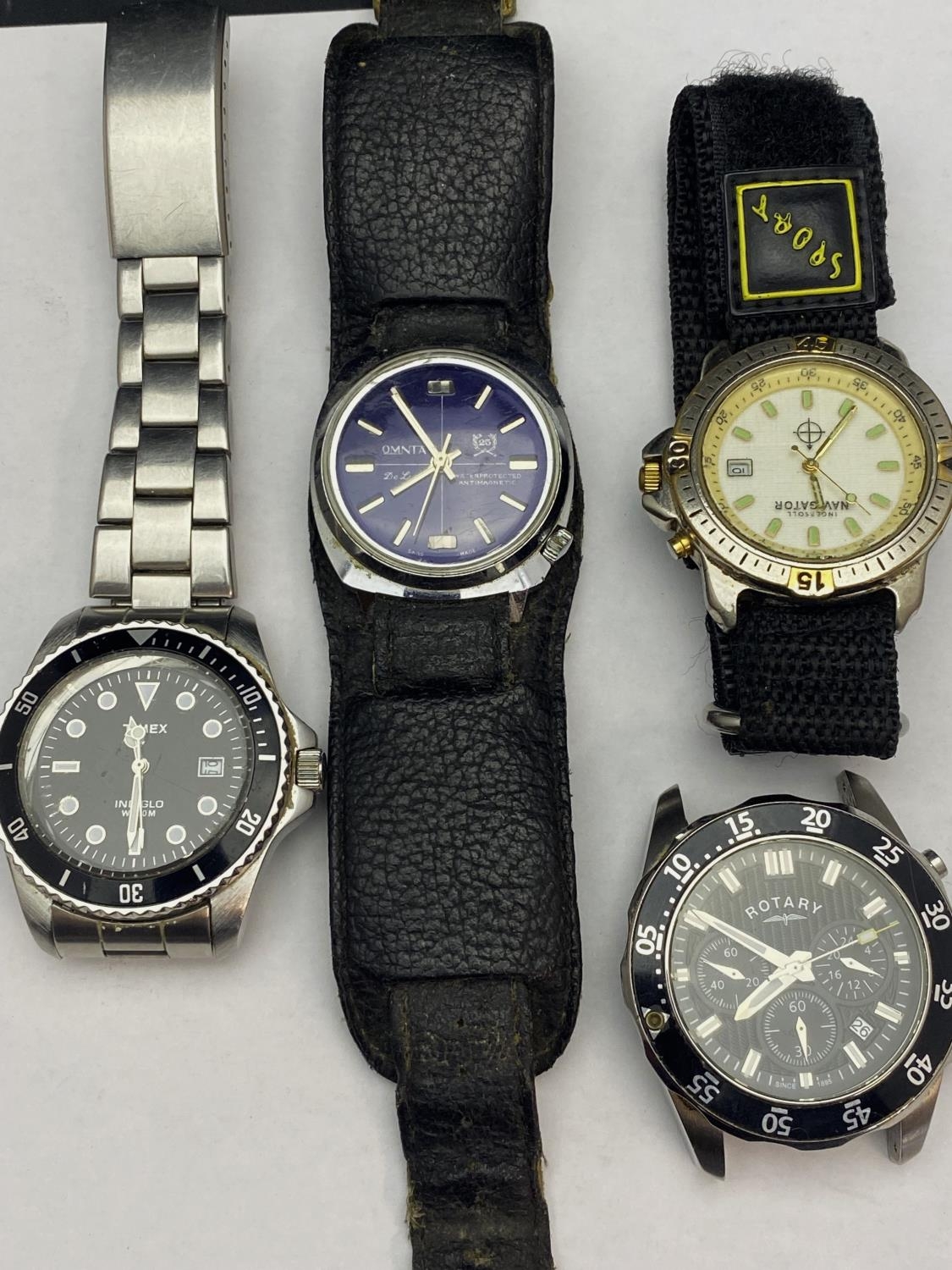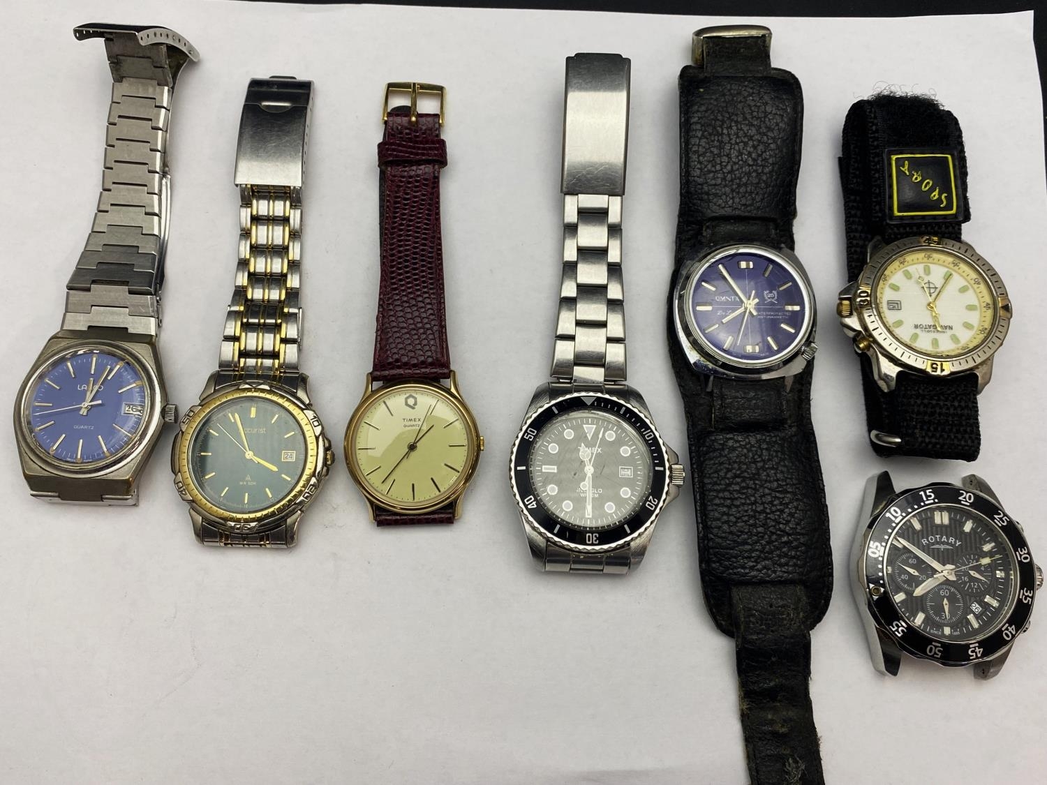 Seven assorted gents watches, includes Timex Rotary all ticking at time of cataloguing