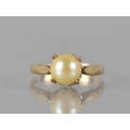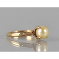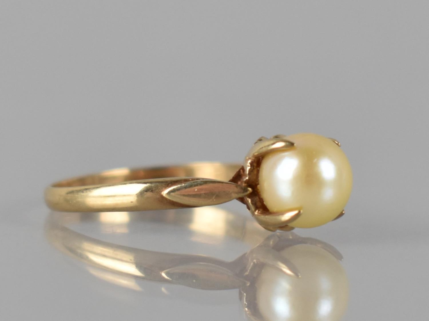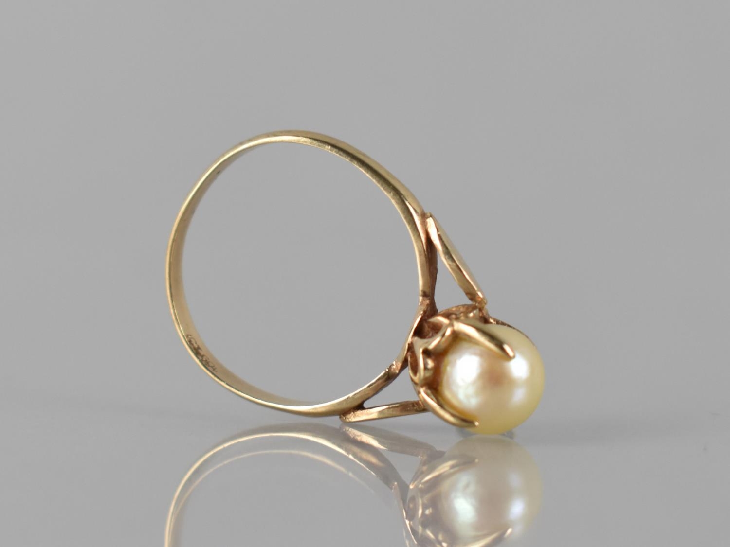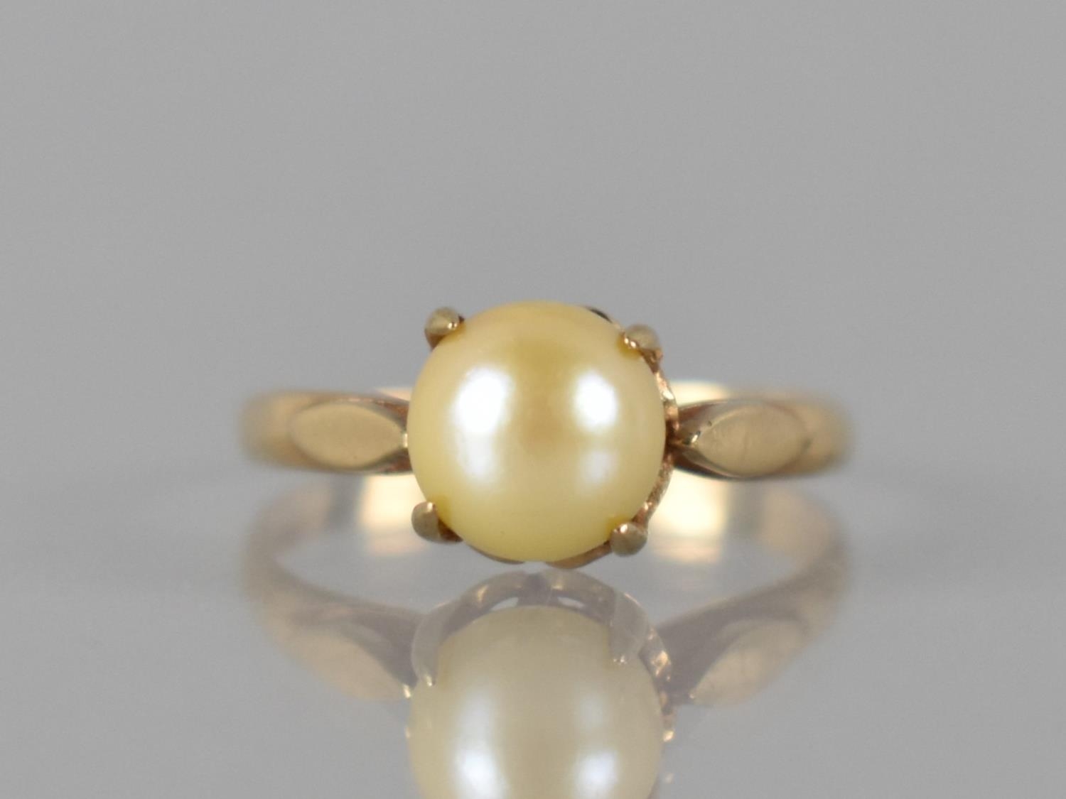 A Nice Quality 9ct Gold and Pearl Ladies Dress Ring, Central Pearl Measuring 7mm Diameter and Raised in Four Claw Setting, Shoulders with Applied Lozenge Embellishments on a D Shaped Band, Stamped Internally 9ct, 2.4gms