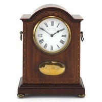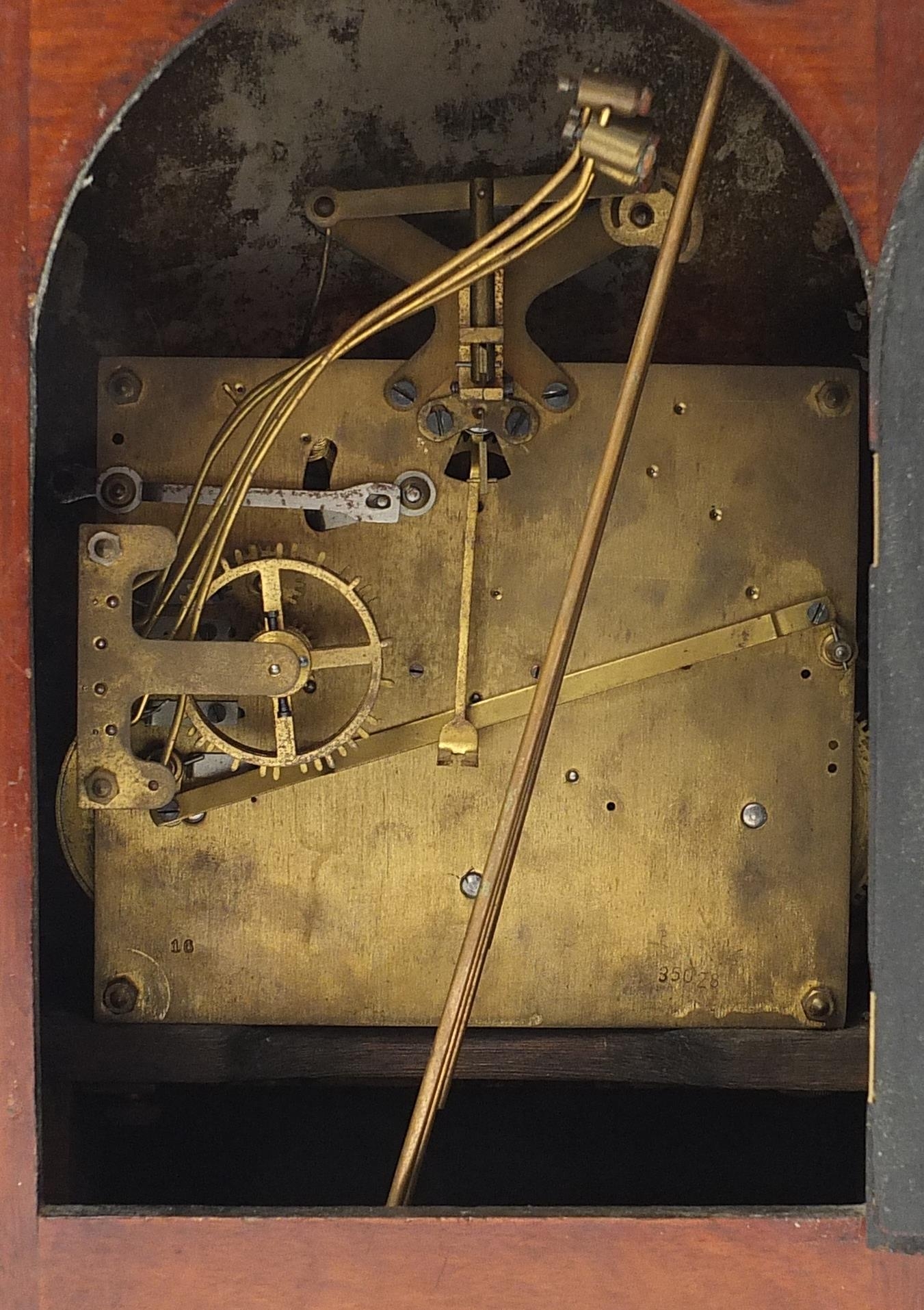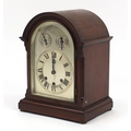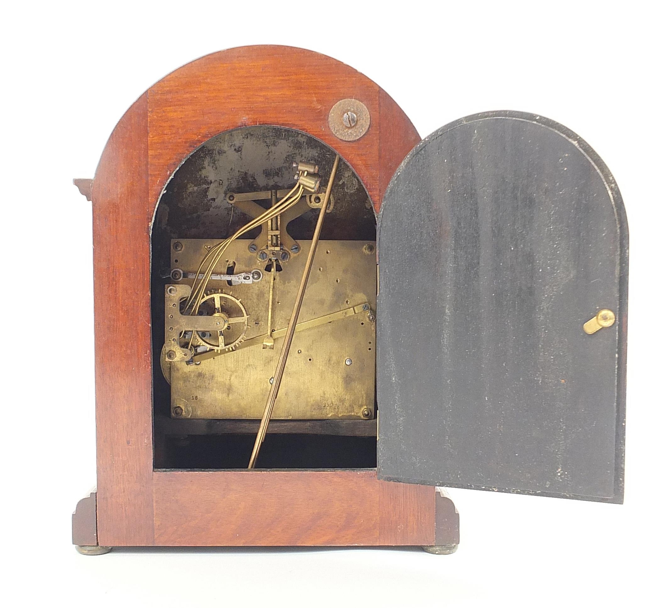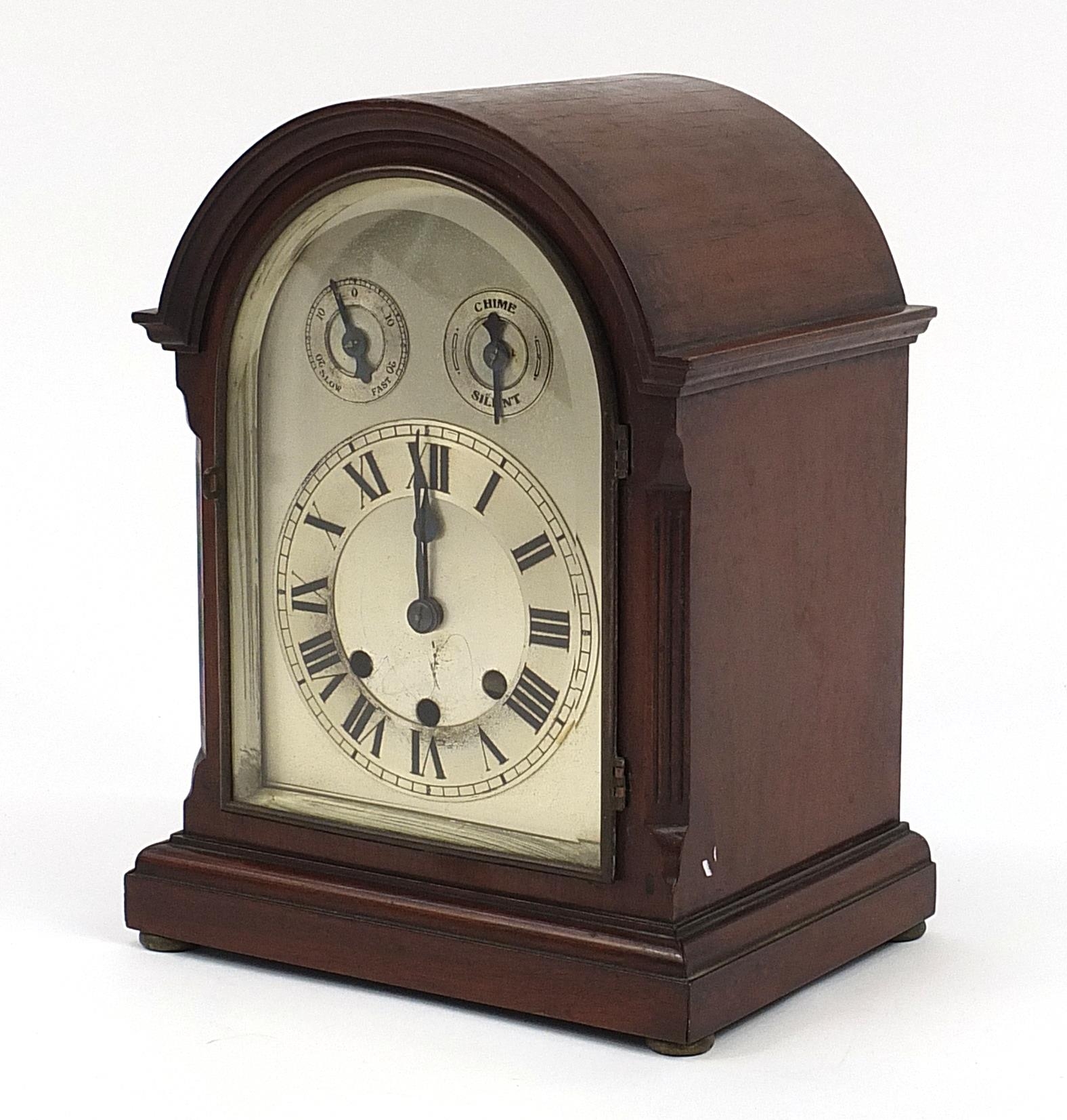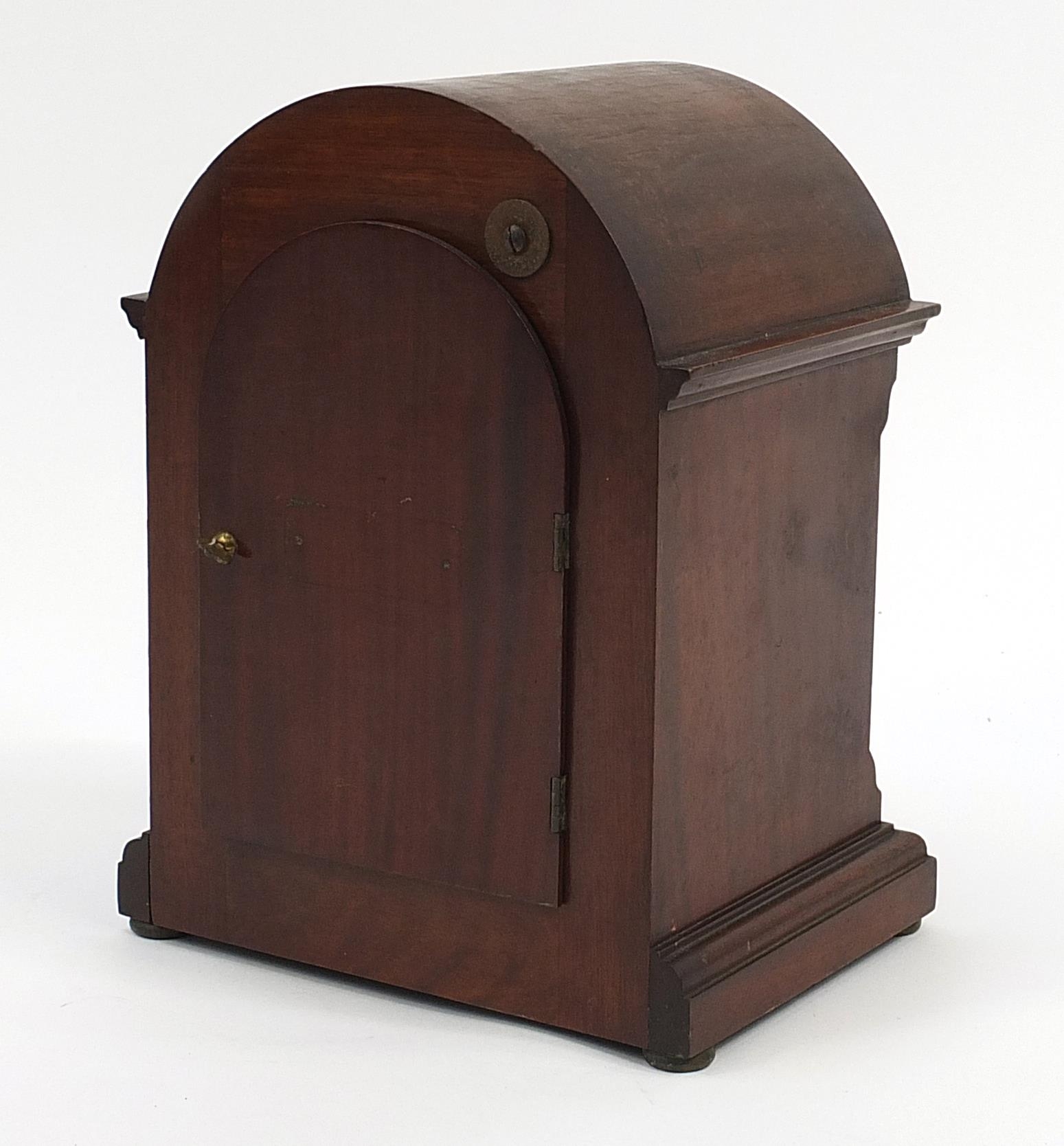19th century mahogany dome top bracket clock with Westminster chime, the silvered chapter ring having Roman numerals, 33cm high