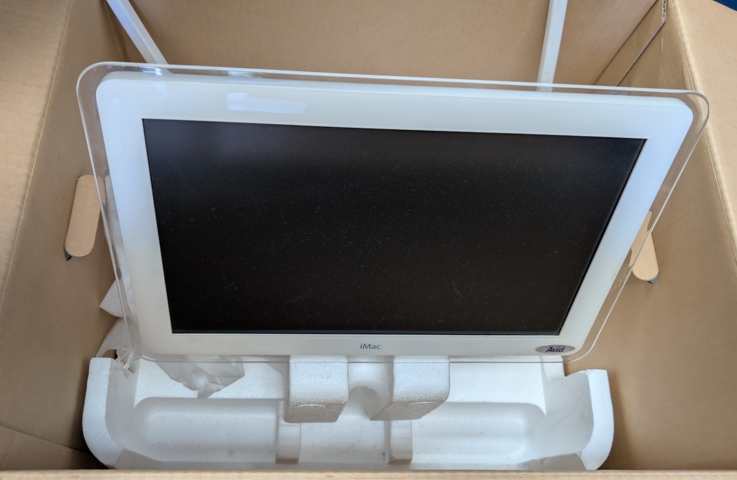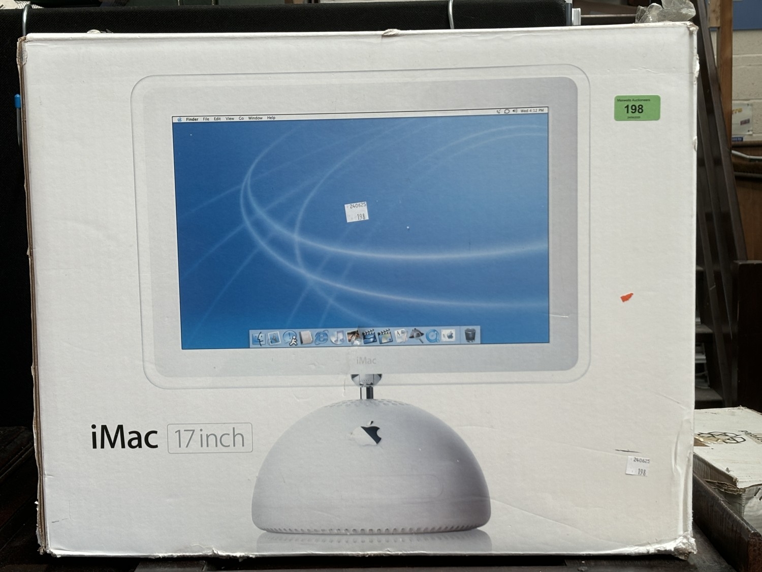 A vintage Imac 17" desk top computer (no mouse or keyboard) with original box.