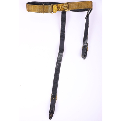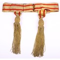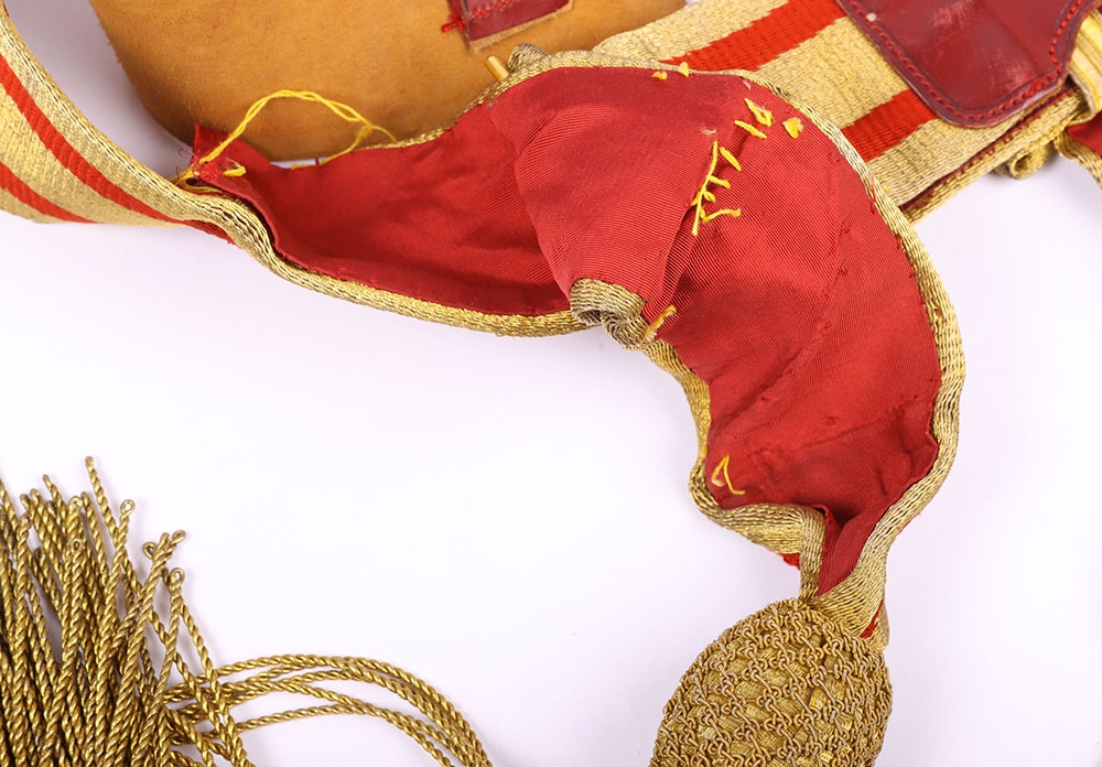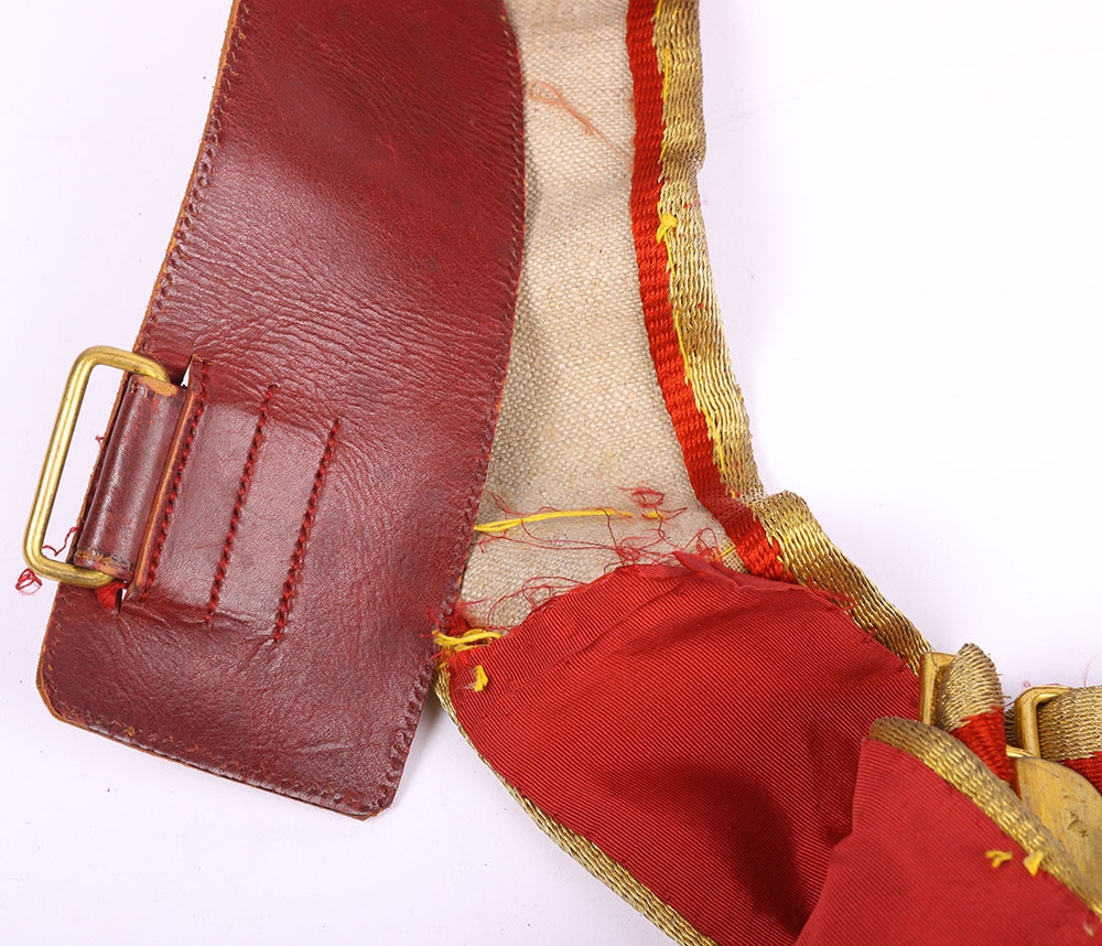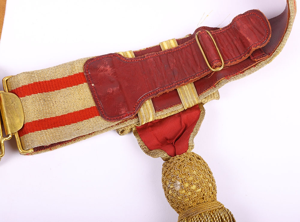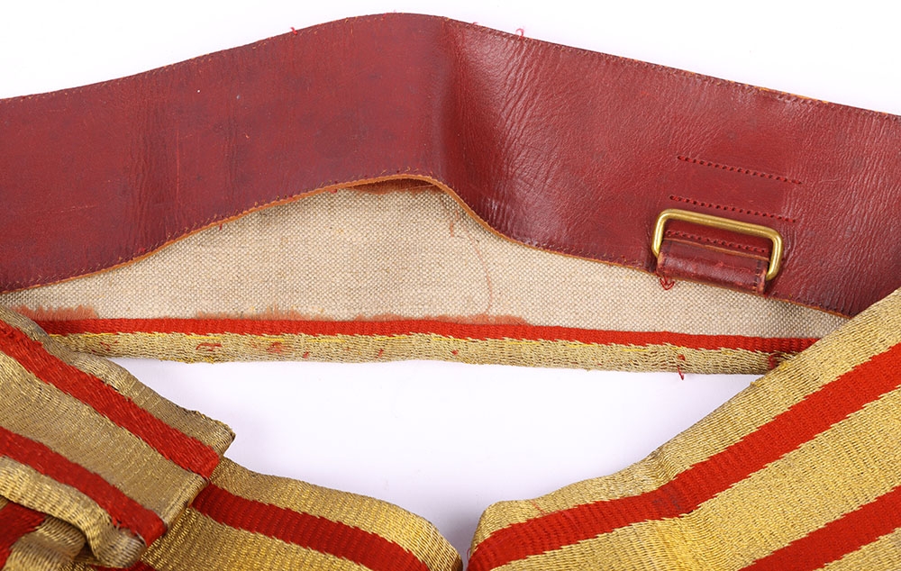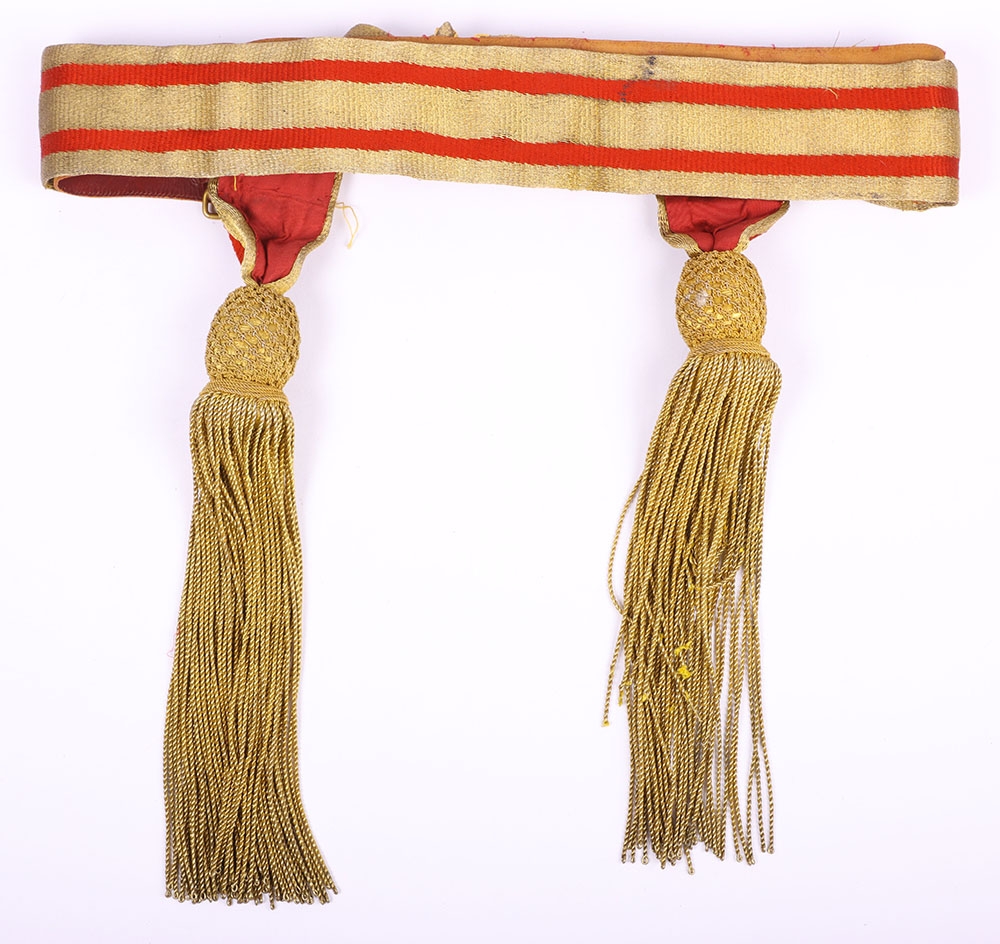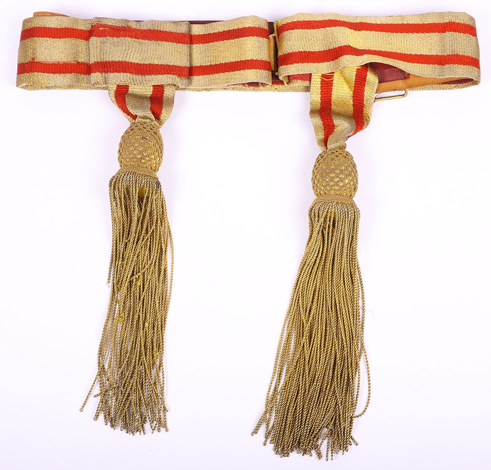 Victorian / Edwardian Officers Full Dress Waist Sash, fine example of leather backed waist belt with gilt lace top and two hanging bullion tassels. Some stitching faults to the leather backing but otherwise good condition.