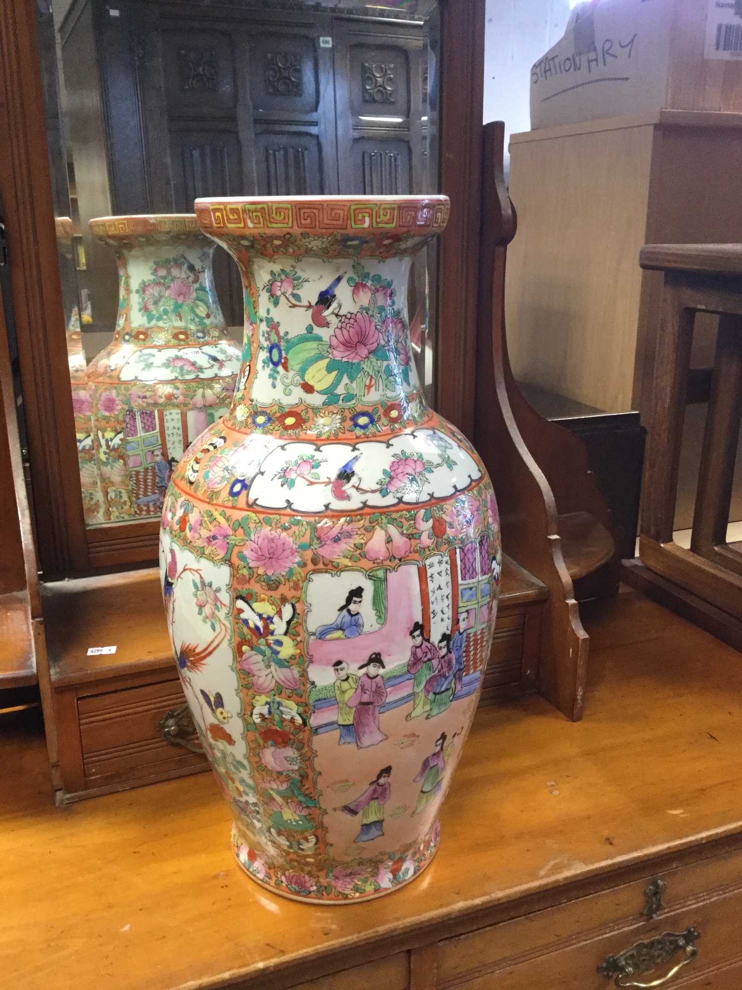 enamelled with panels of figures and panels of birds, the pink ground profusely decorated with butterflies and flowers -