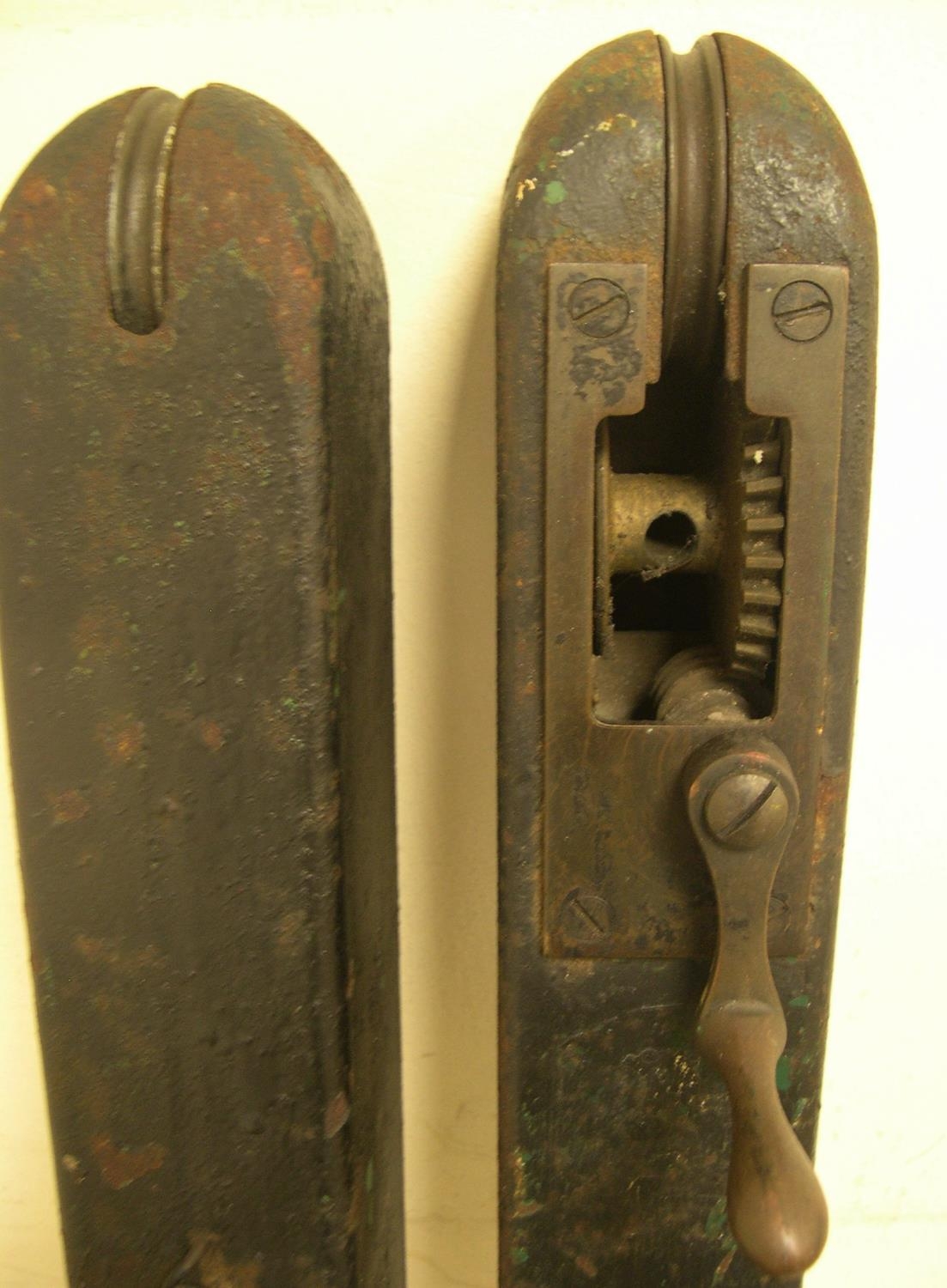 Vintage pair of cast metal tennis net posts,