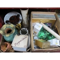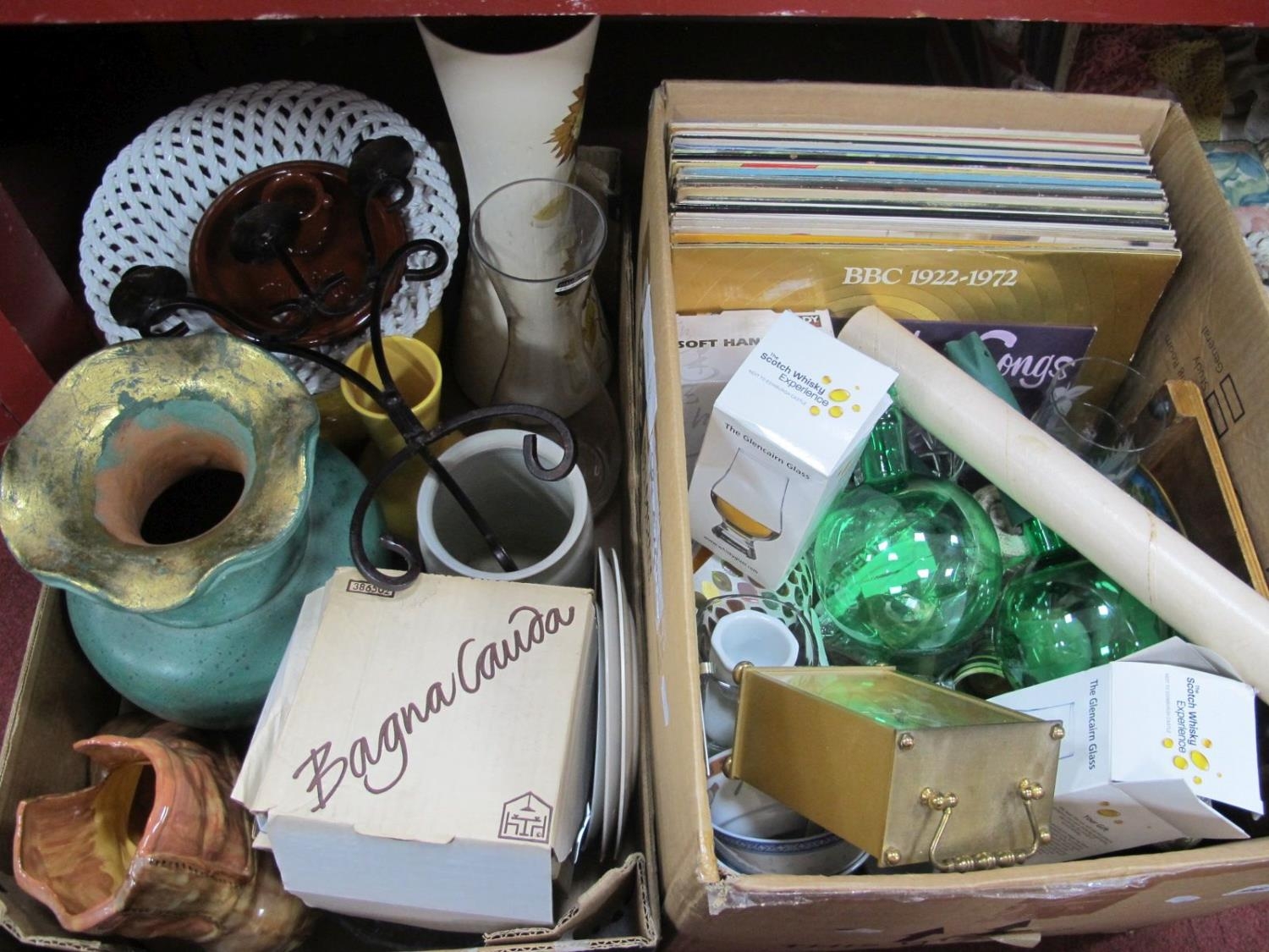 Records, vases, clock, Schweppes posters, ceramics, glassware, guillotine, etc:- Two Boxes