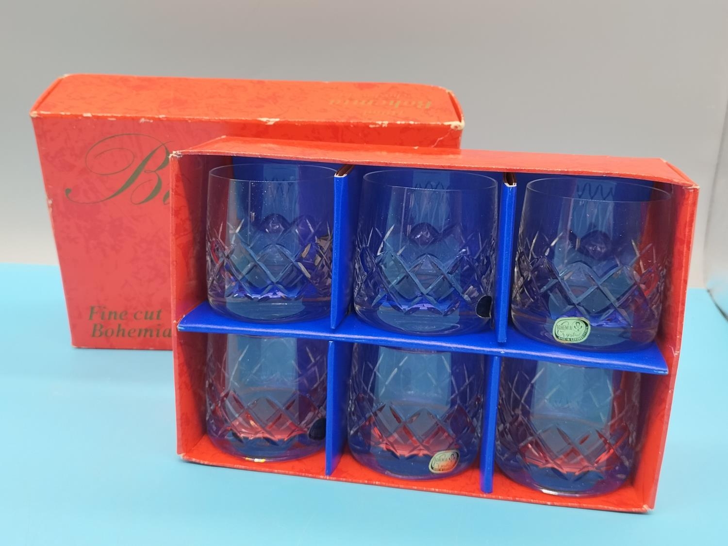 Boxed Set of 6 Bohemia Crystal Tumblers in the 'Bristol' Pattern.