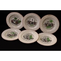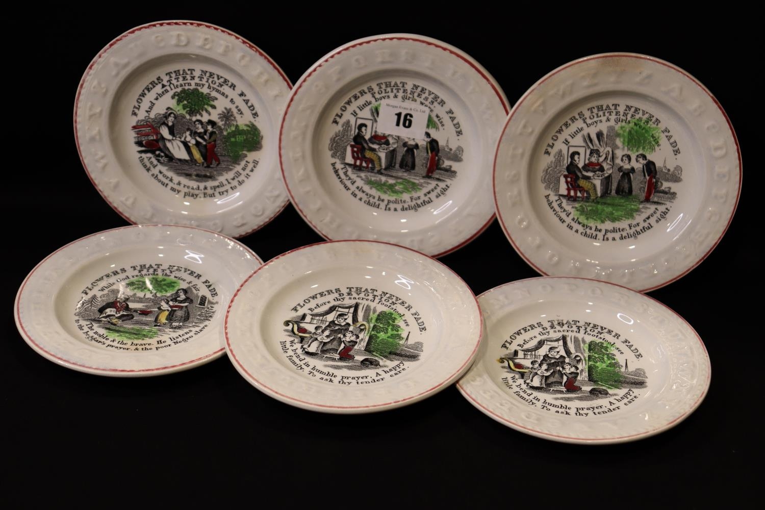Six 19thc Staffordshire Transfer Decorated Circular Nursery Plates, 6" Dia