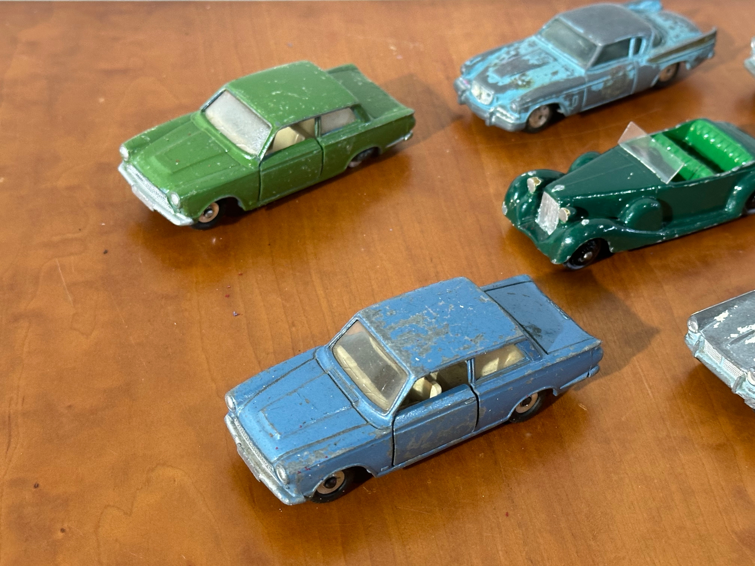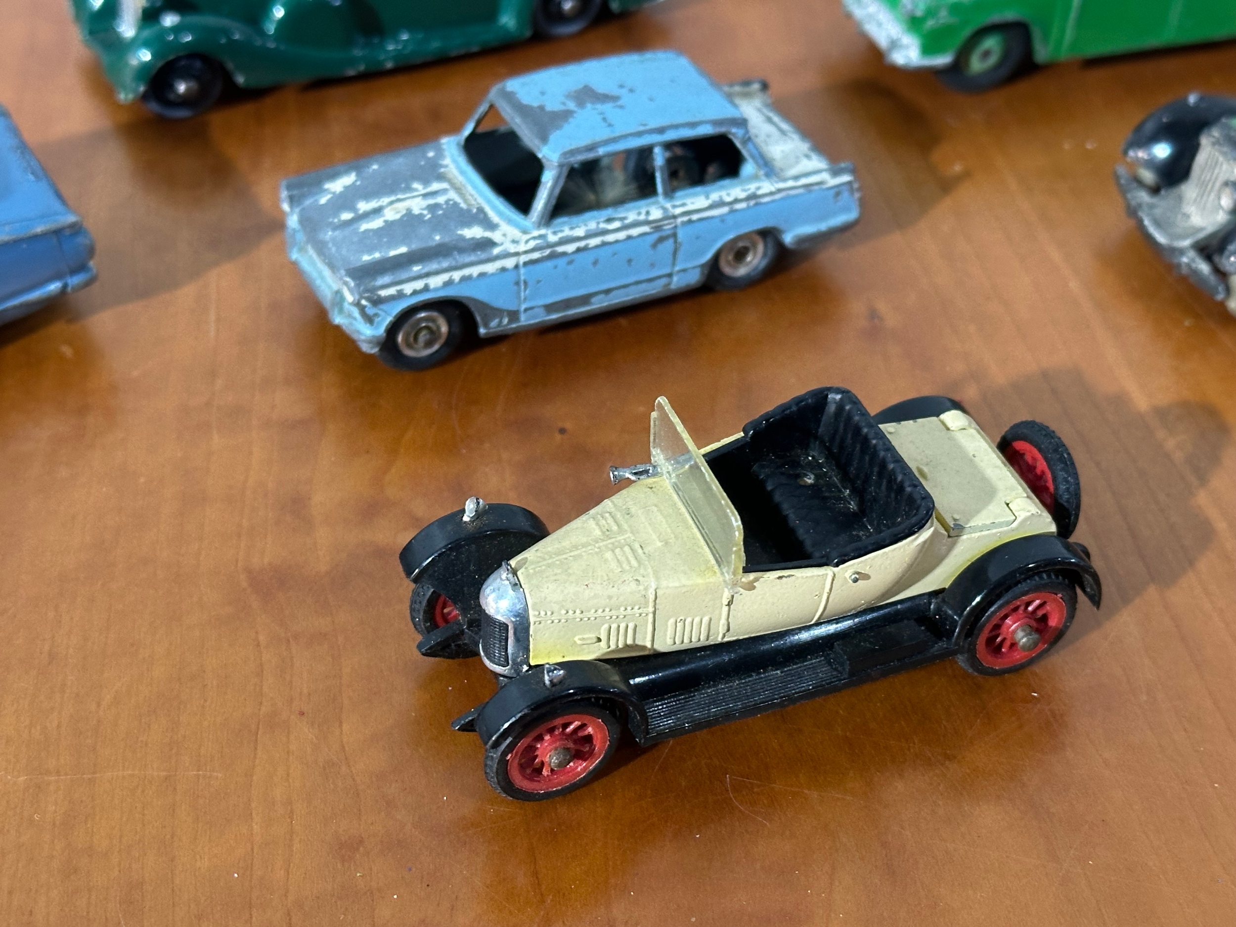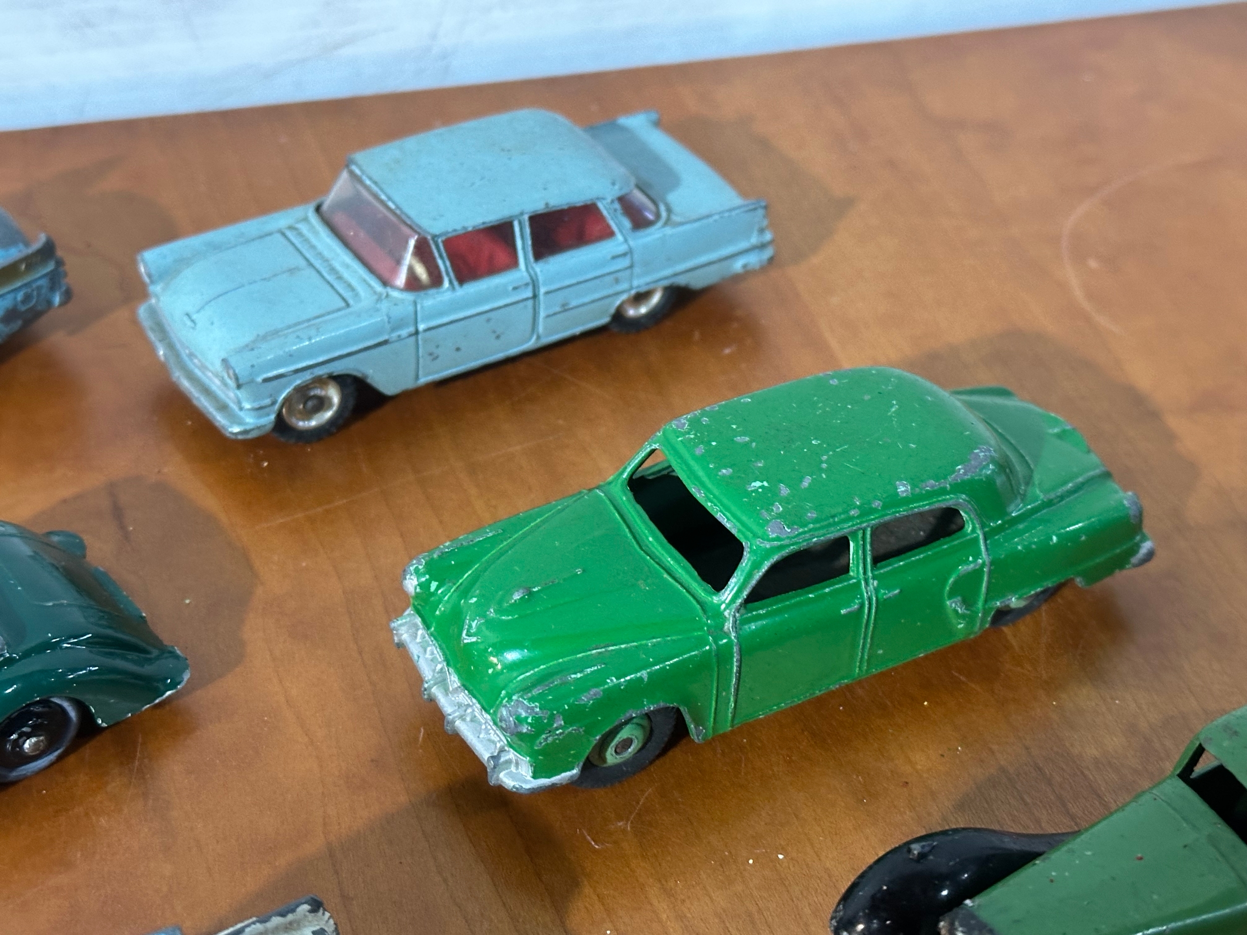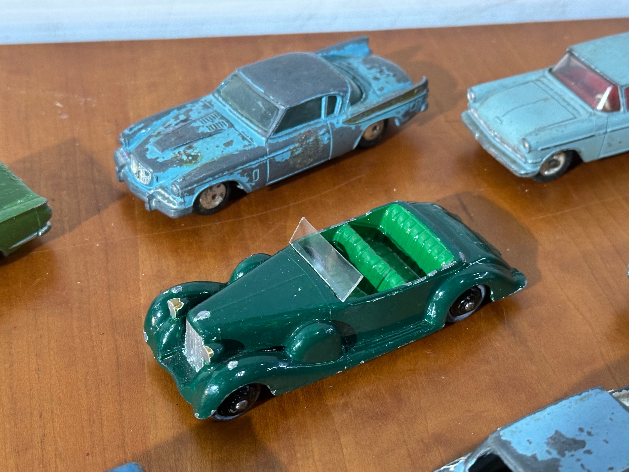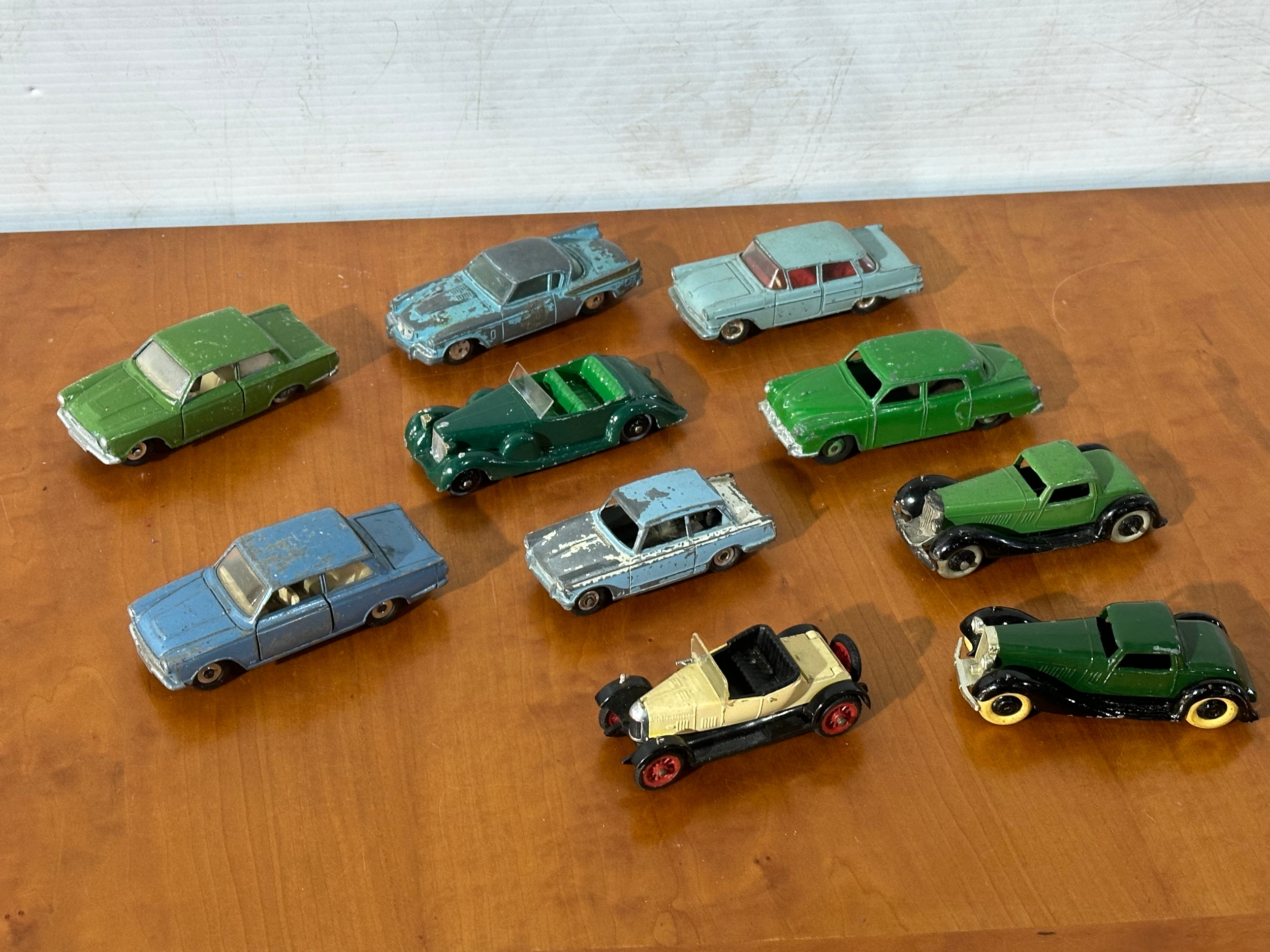 10 vintage model cars, 8 Dinky models, with Corgi and Tri-ang.
