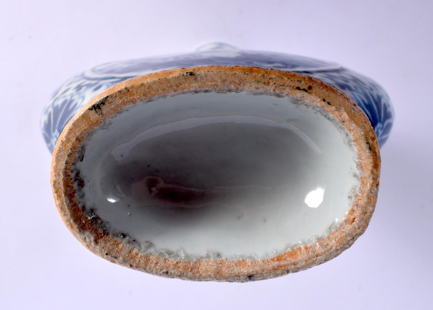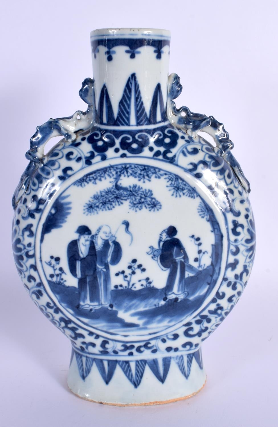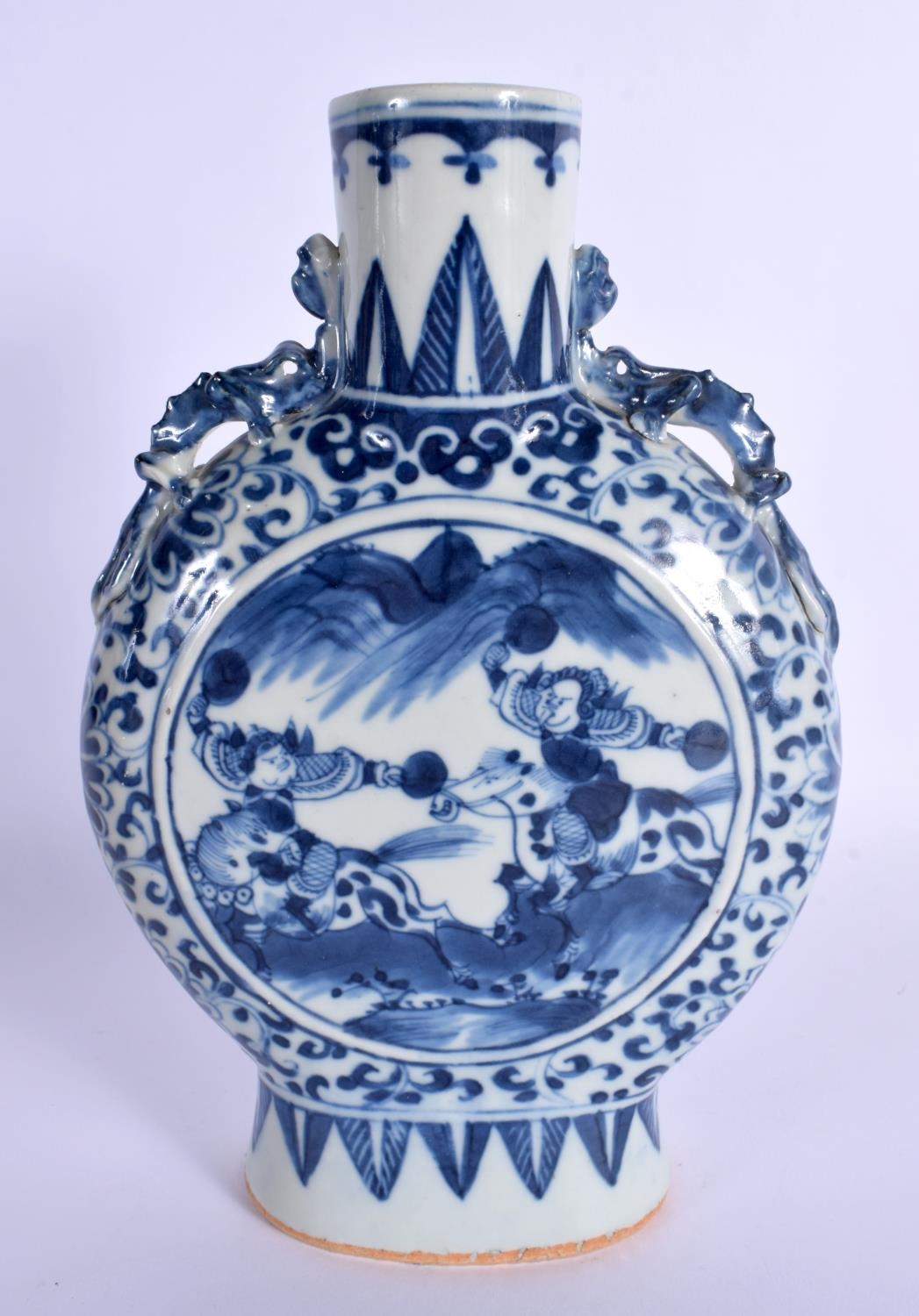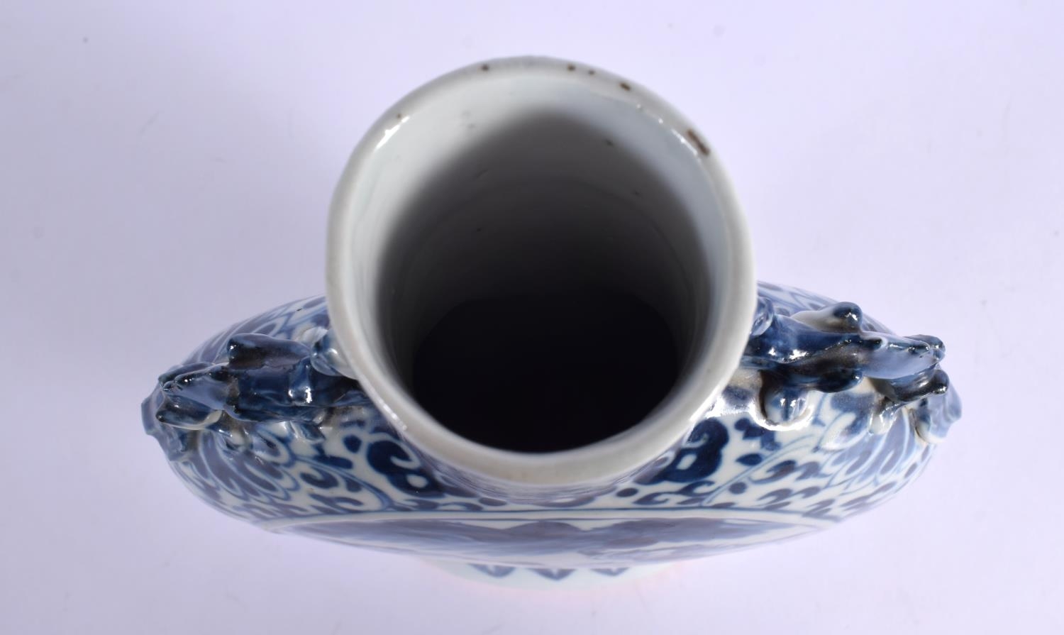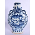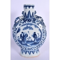 A MID 19TH CENTURY CHINESE BLUE AND WHITE PORCELAIN PILGRIM FLASK Qing. 22 cm x 12 cm.