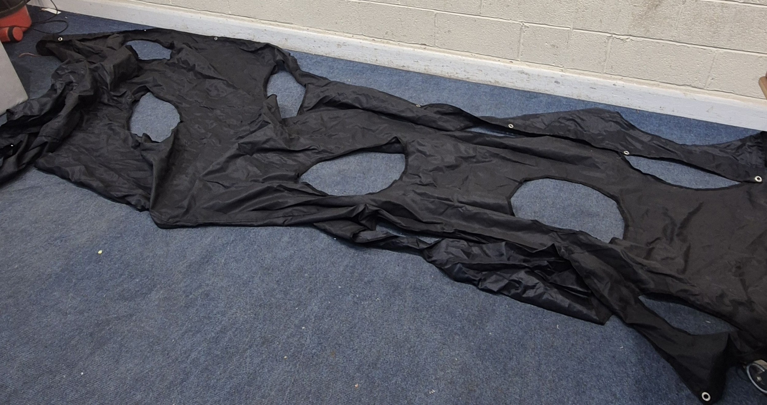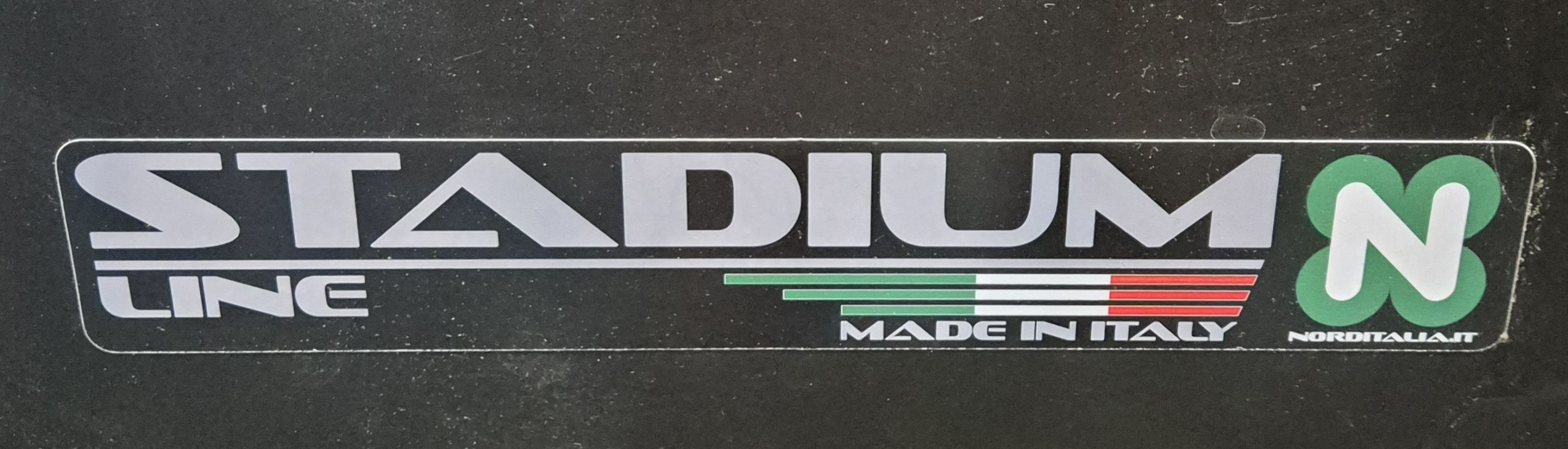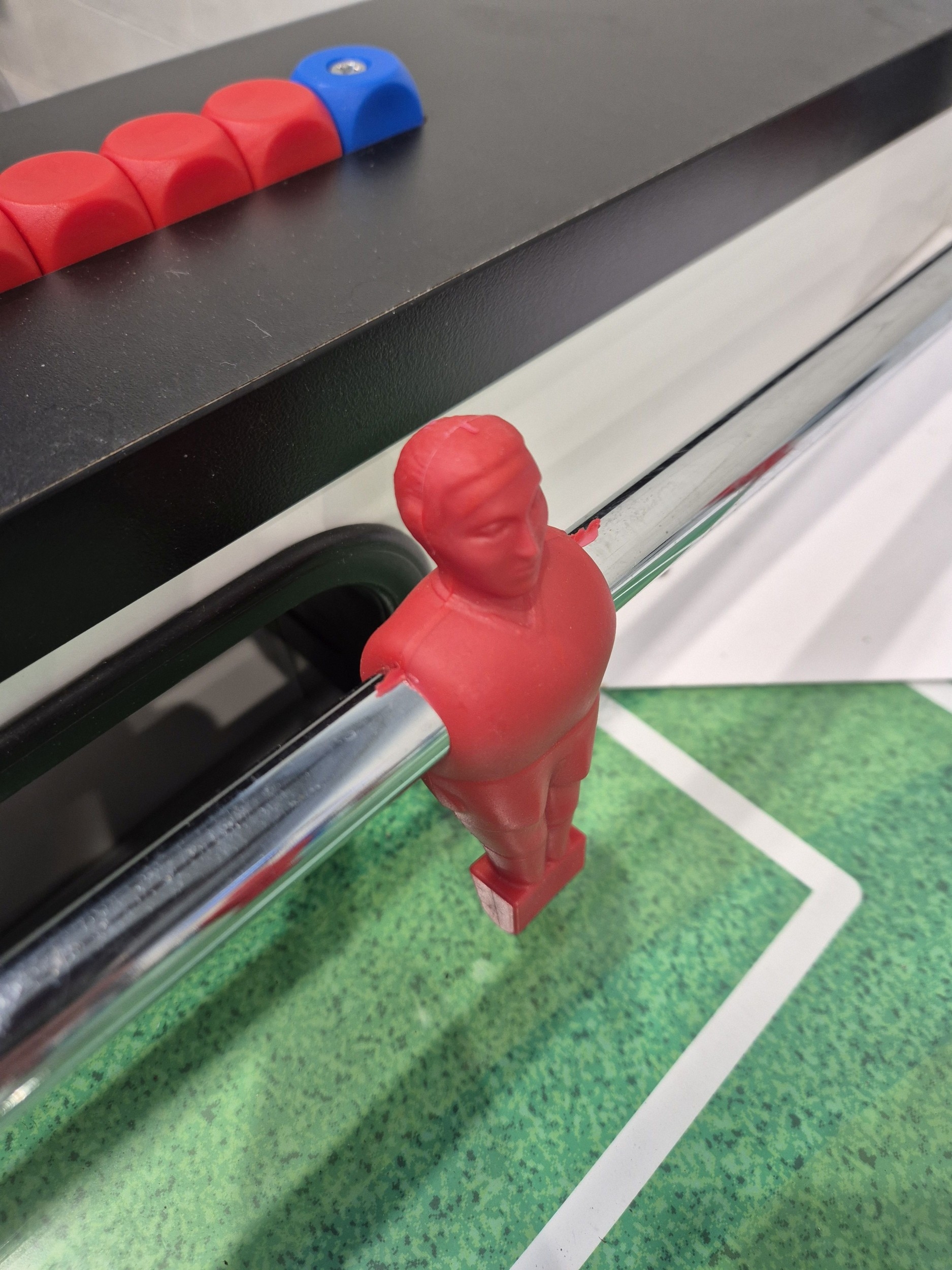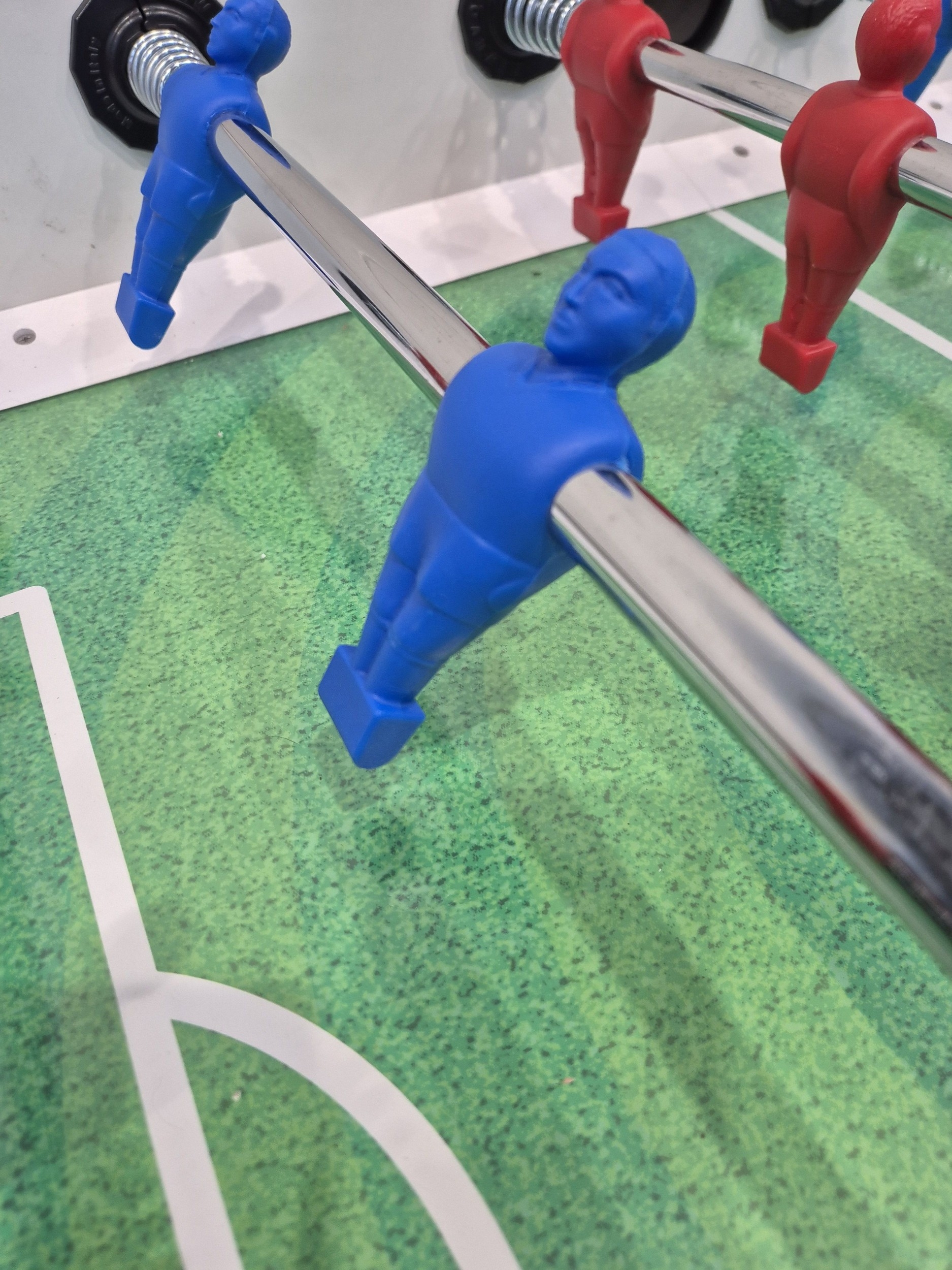 A NORDITALIA STADIUM LINE FOOSBALL TABLE, with red and blue player figures, sliding score system, and two ball slots, length 142cm x maximum depth 177cm, height 87cm, condition report: no balls, large cover present, general signs of usage