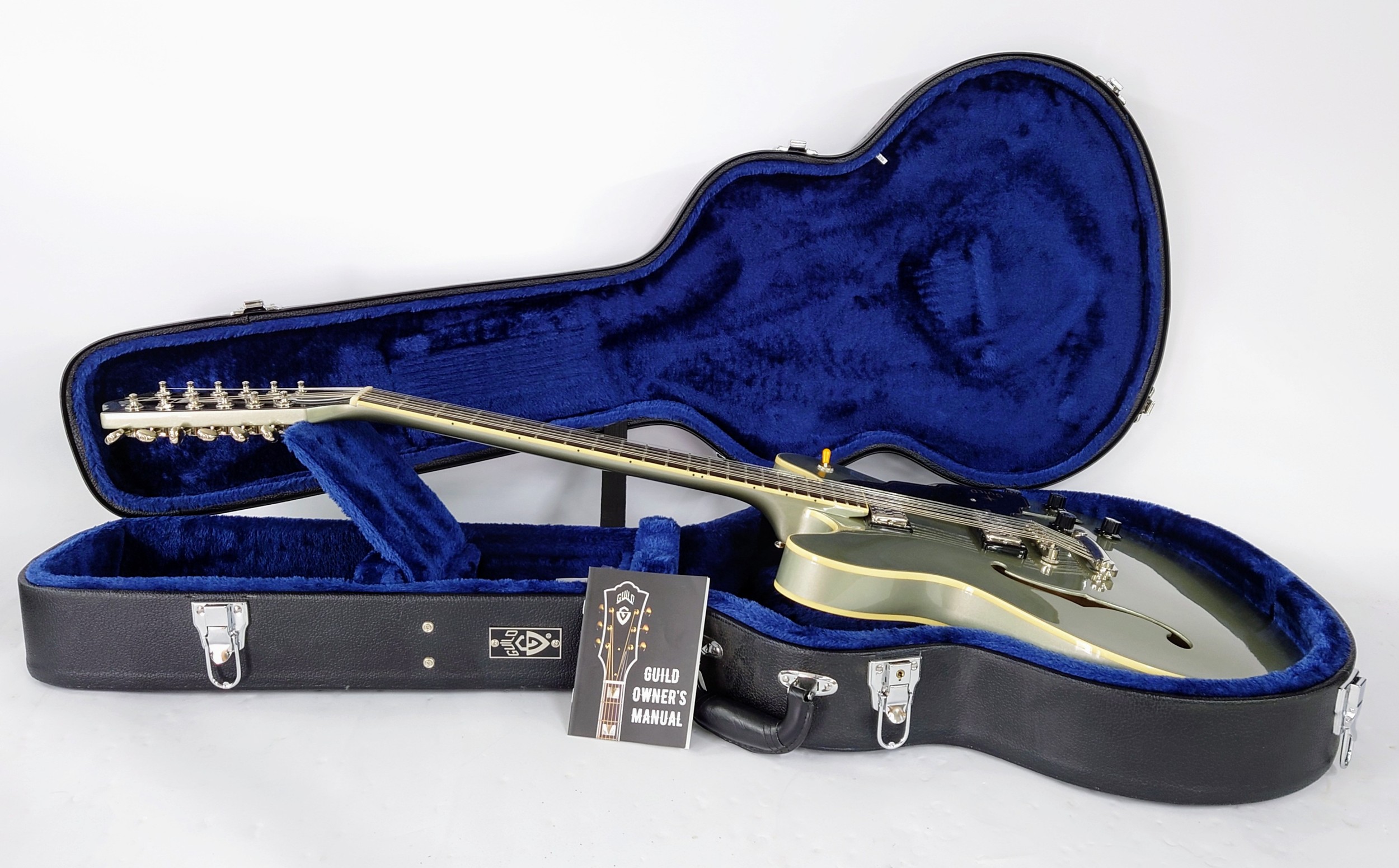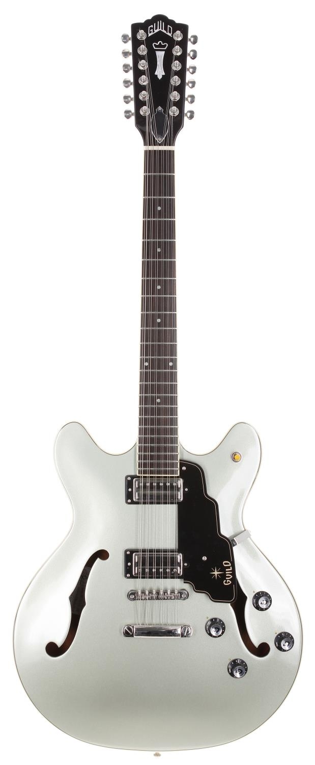 2018 Guild Newark St. Collection Starfire IV/ST-12 twelve string semi-hollow electric guitar, made in Korea; Body: Shoreline Mist metallic finish; Neck: good; Fretboard: rosewood; Frets: good; Electrics: working; Hardware: good; Case: original hard case; Weight: 3.38kg; Overall condition: excellent