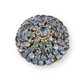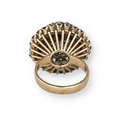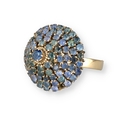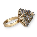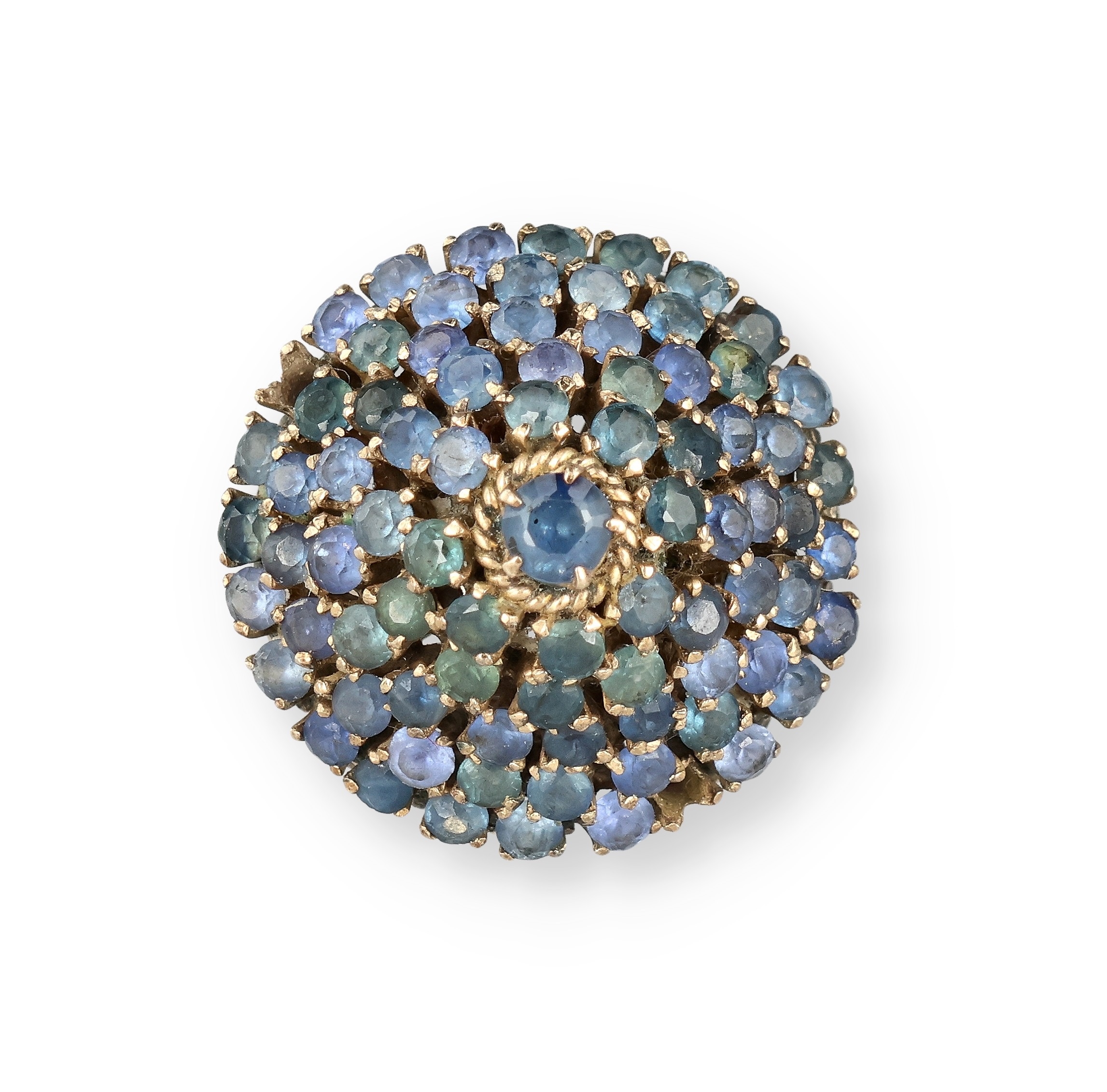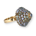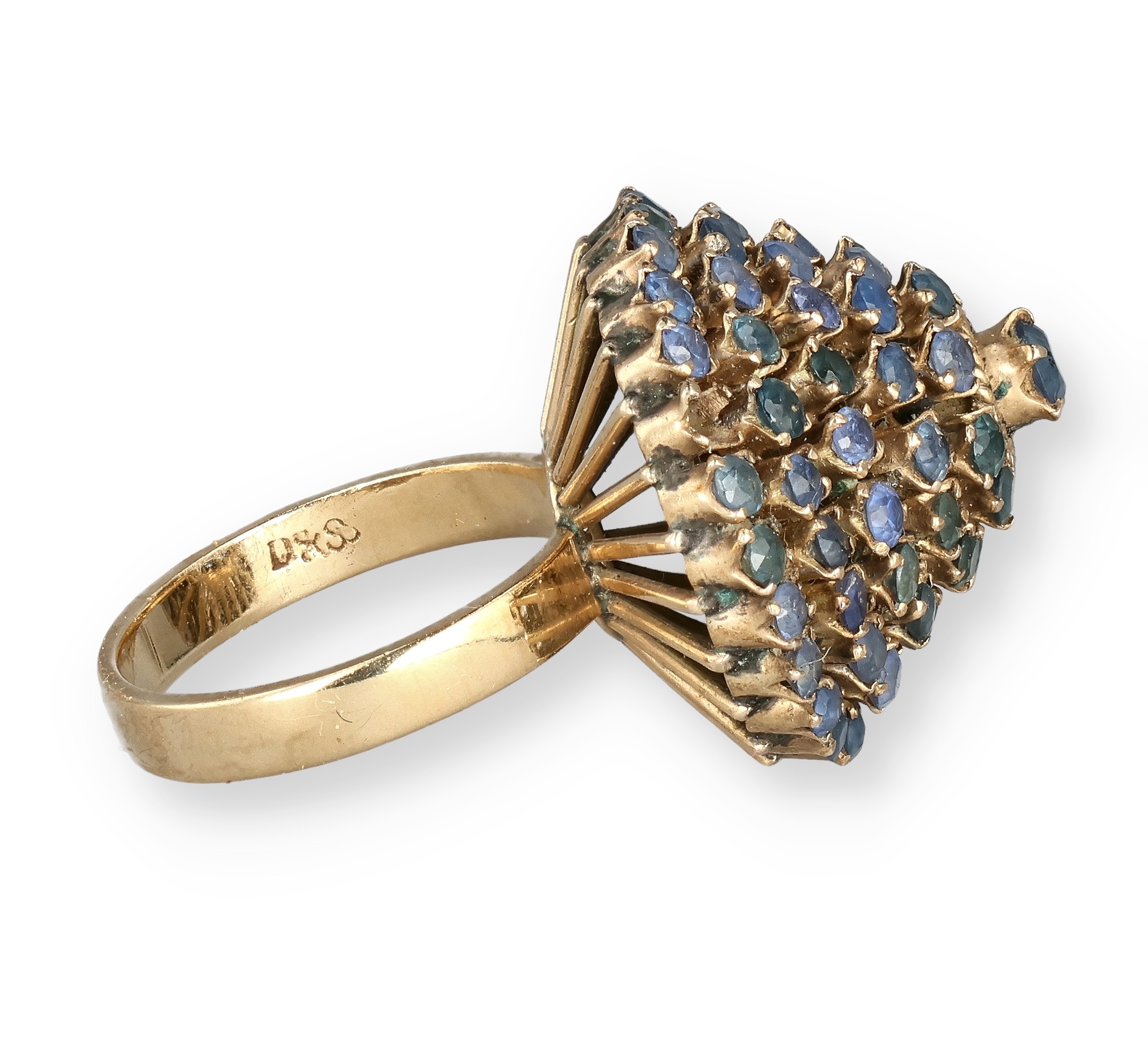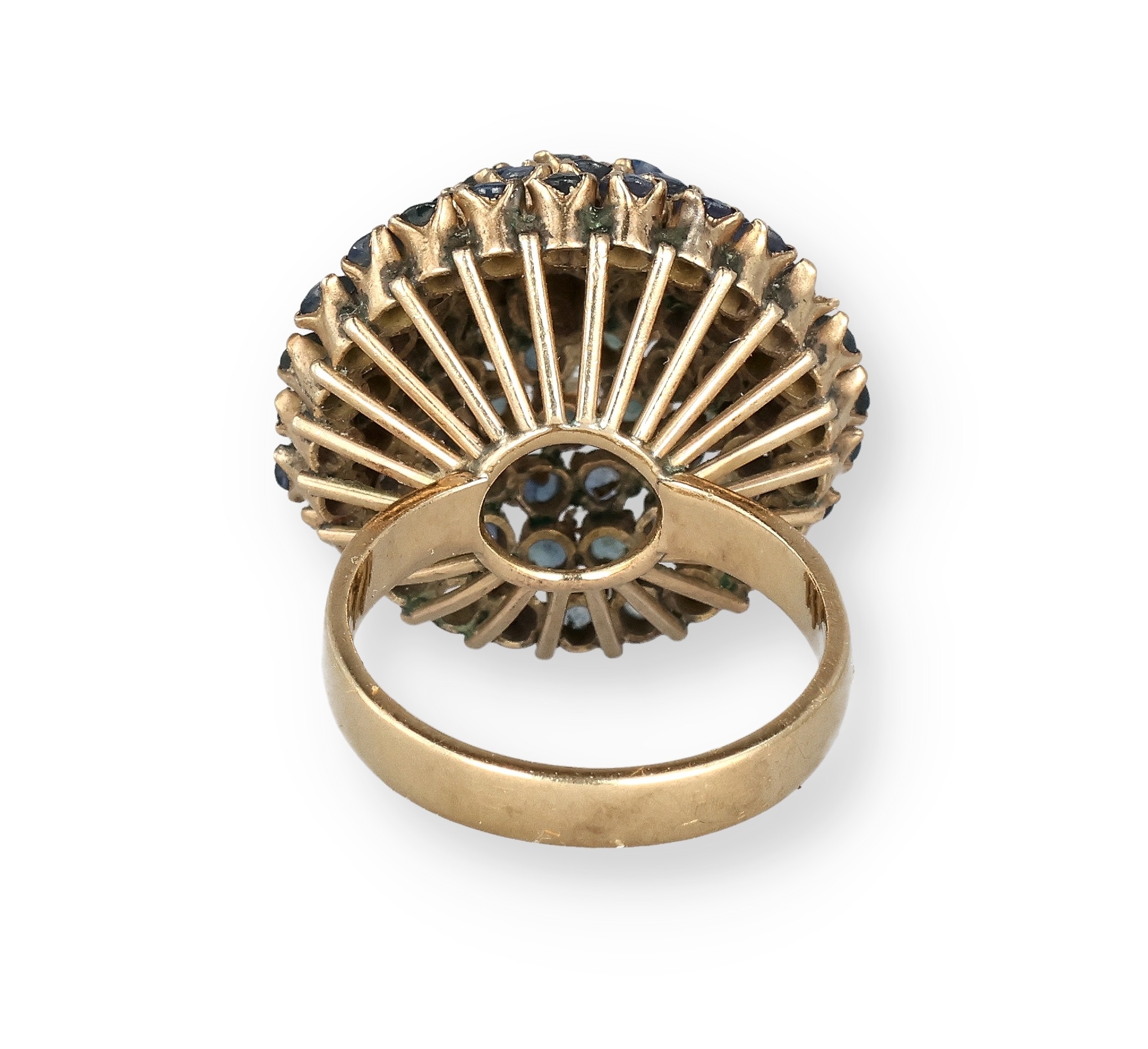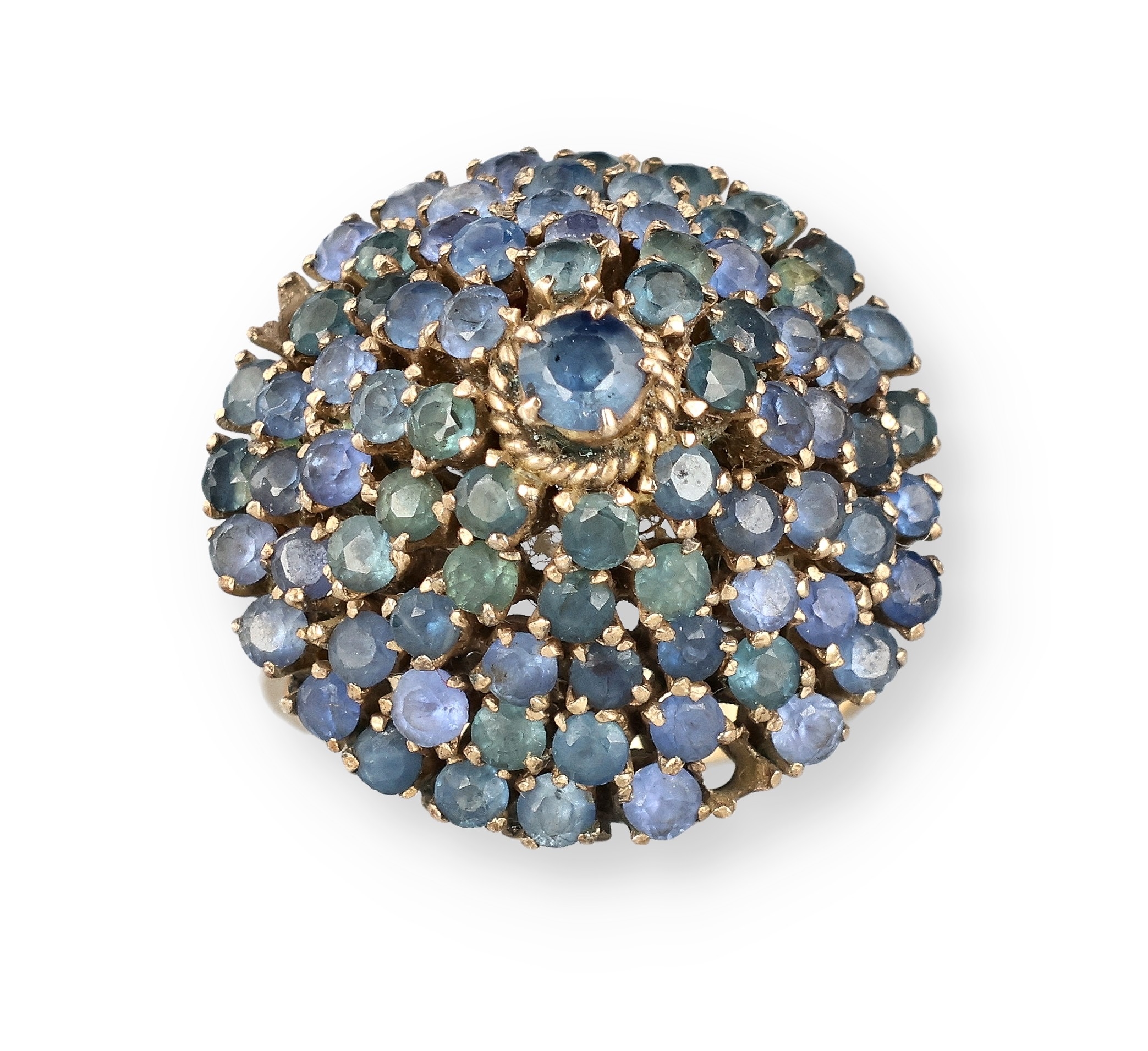 AN 18 CARAT GOLD BOMBÉ RING, CLAW SET WITH FIVE ROWS OF SAPPHIRES