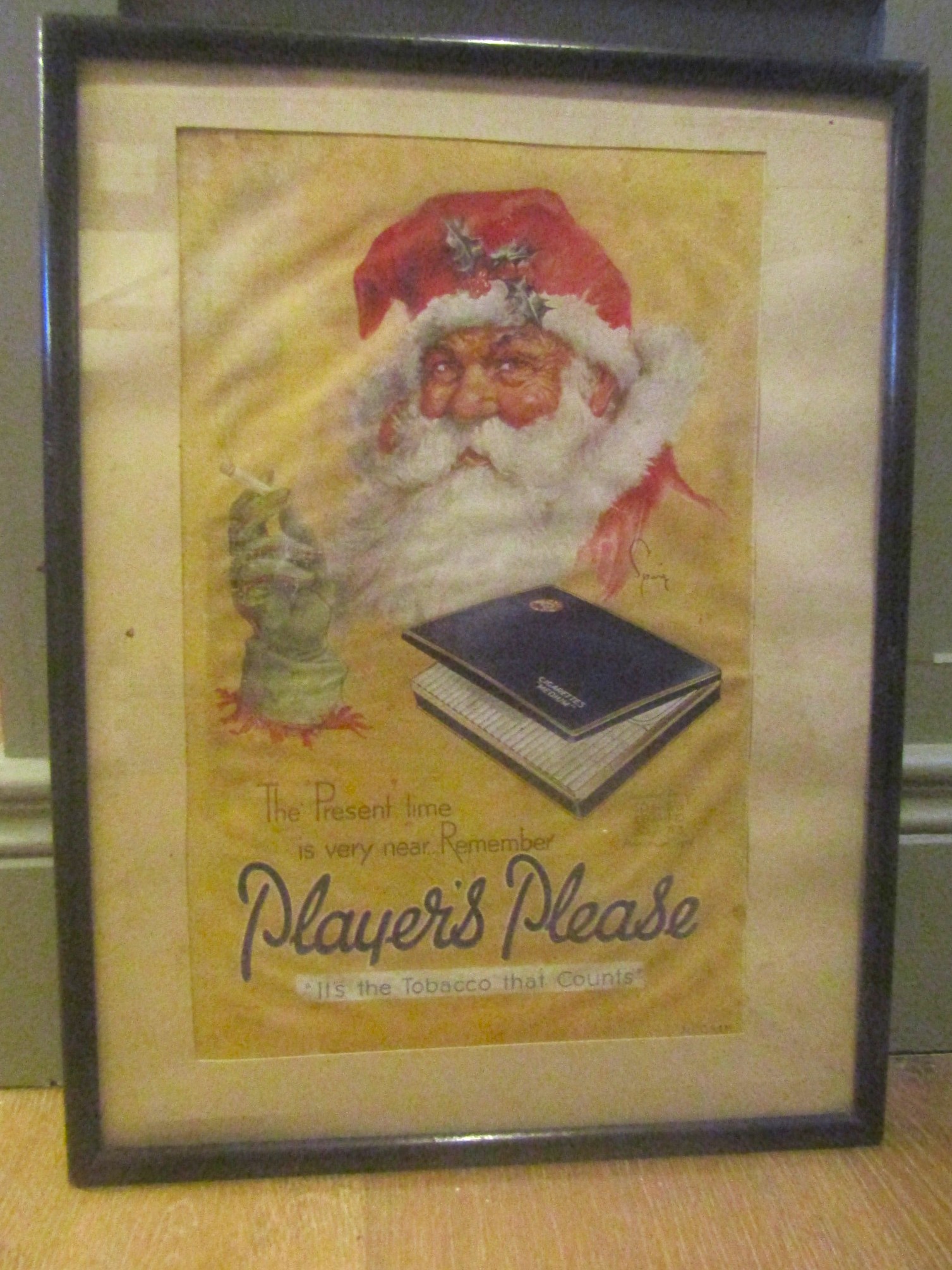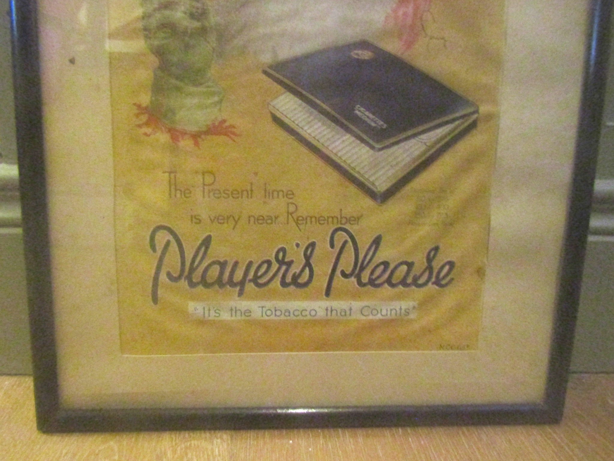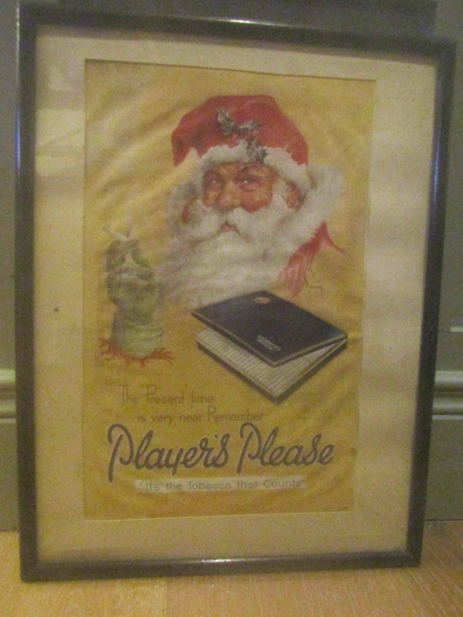 Old Player's Please Christmas Cigarette Advertisement Original Frame Approximately 16 Inches High