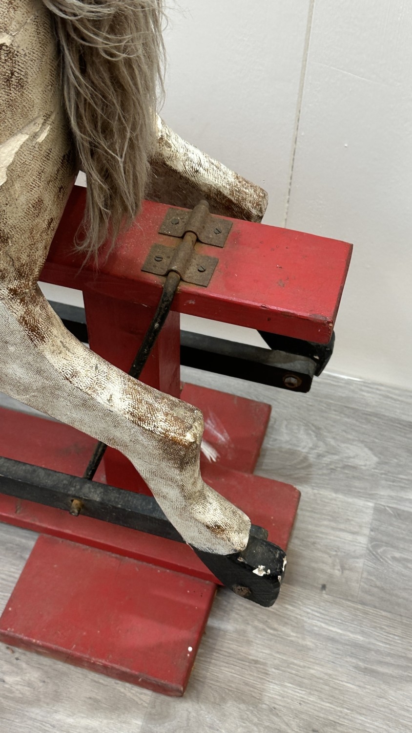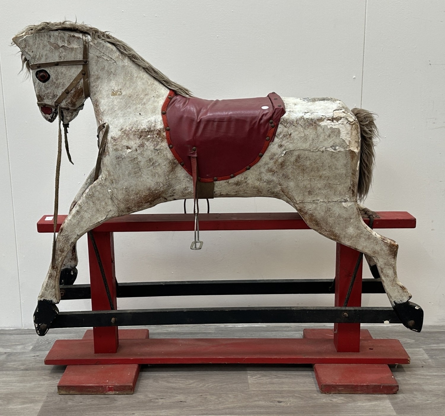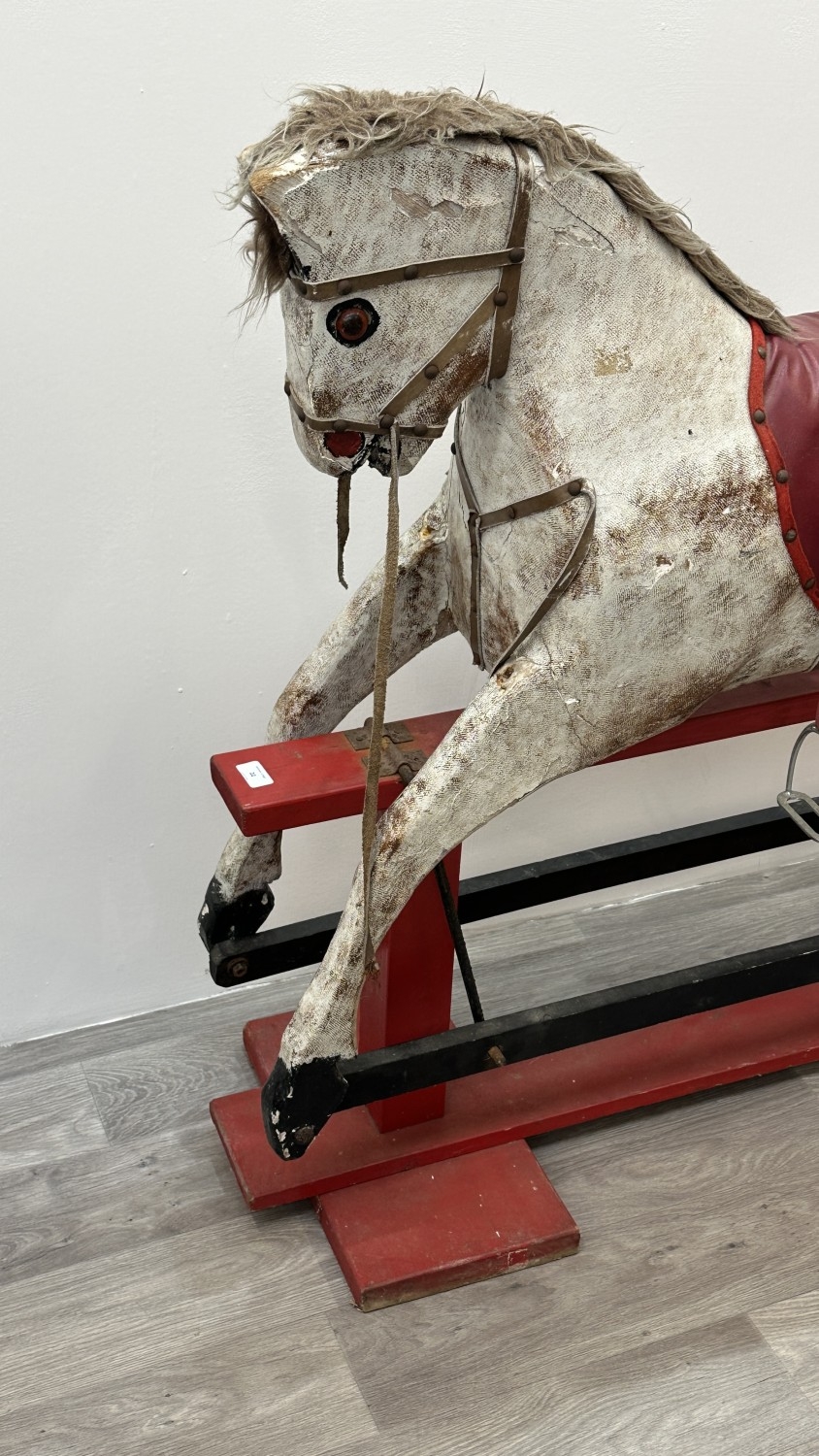 An early 20th century painted plaster and carved wooden rocking horse - approx. 106cm high x 41cm wide x 115cm deep