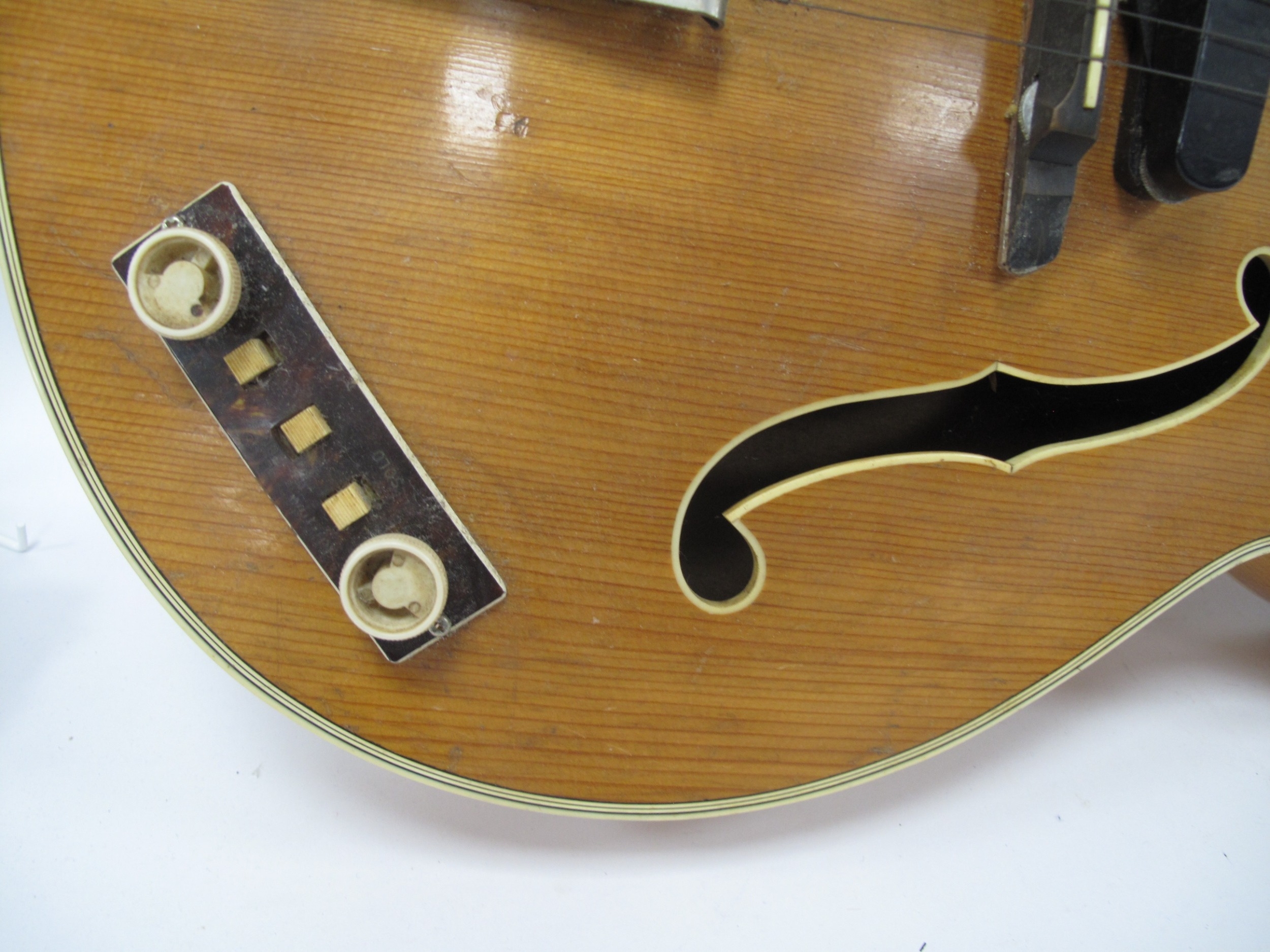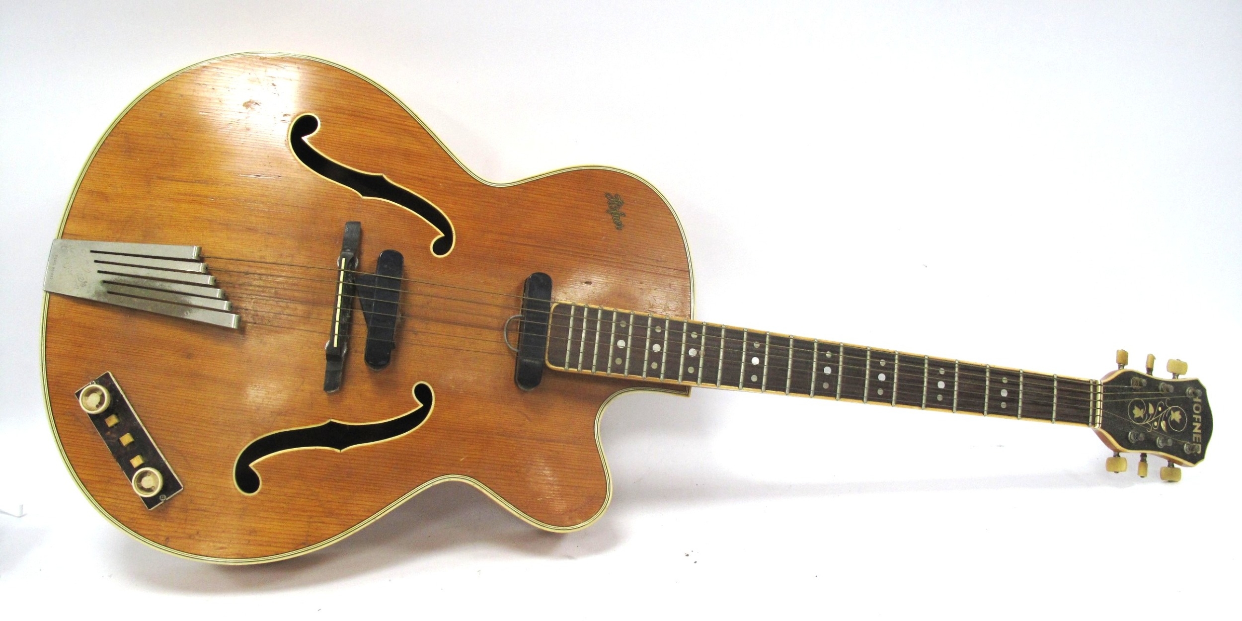 A Hofner 'President' Archtop Semi-Acoustic Guitar, serial number 6402, with pearline mounts, total length 104cm.