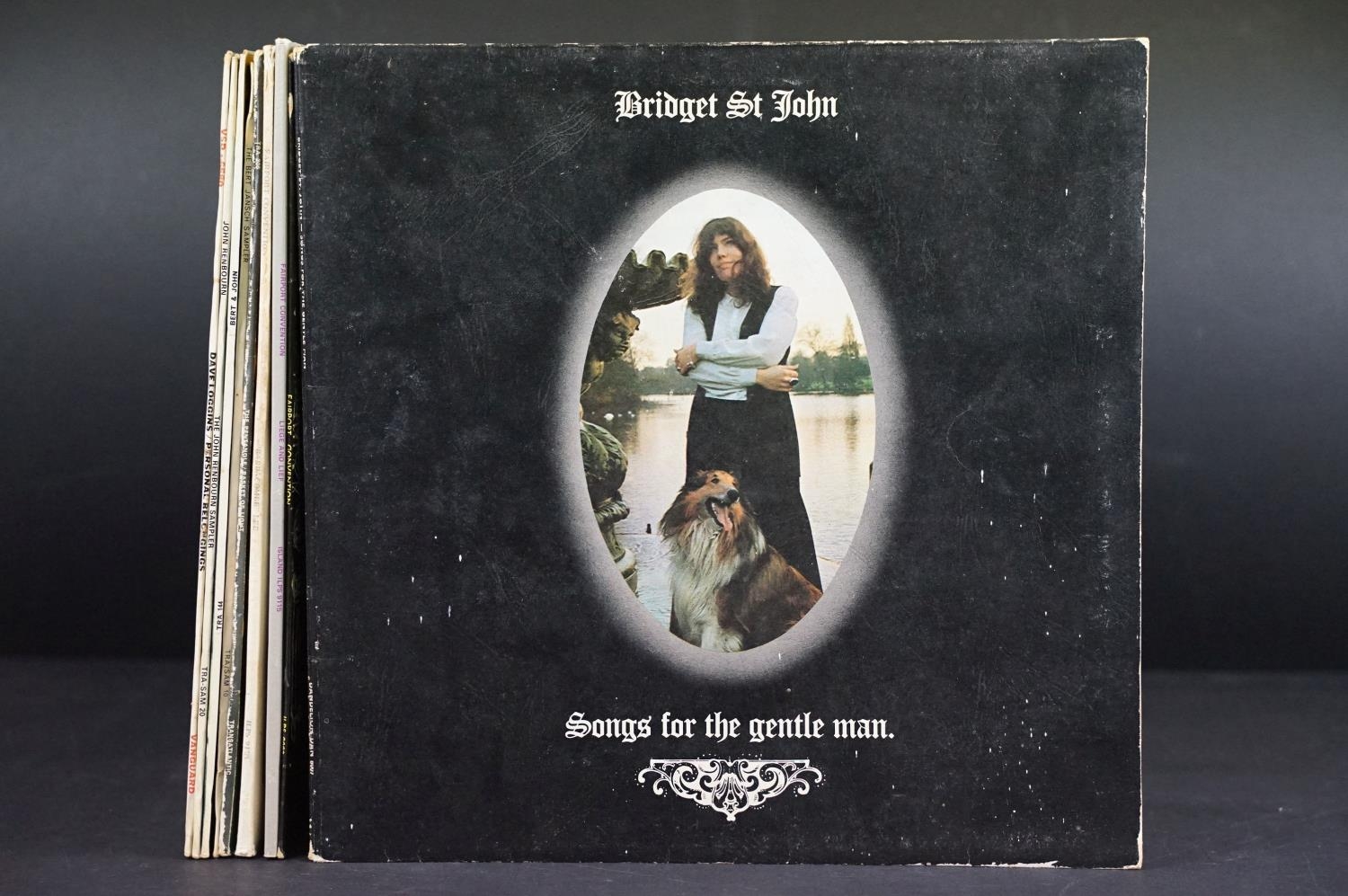 Vinyl - 9 Folk LPs to include Bridget St John Songs For The Gentle Man on Dandelion (DAN 8007), Fairport Convention x 3 (including What We Did On Our Holidays (Island Records ILPS 9092 with pink 'i' label), The Pentangle, Bert Jansch, Bert And John, John Renbourn, Dave Loggins. Vg overall